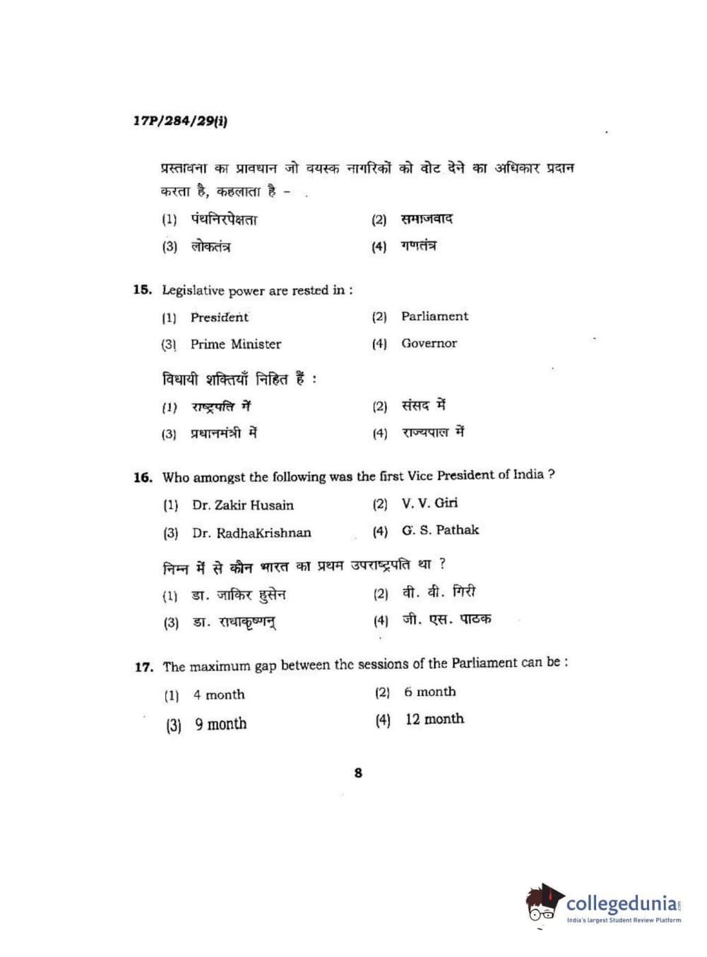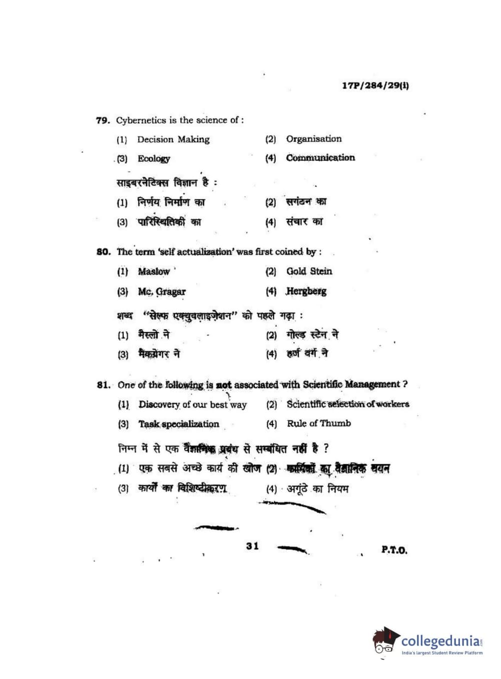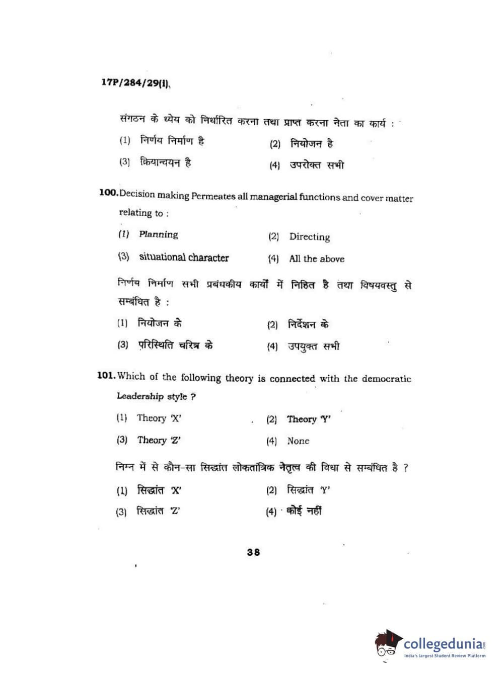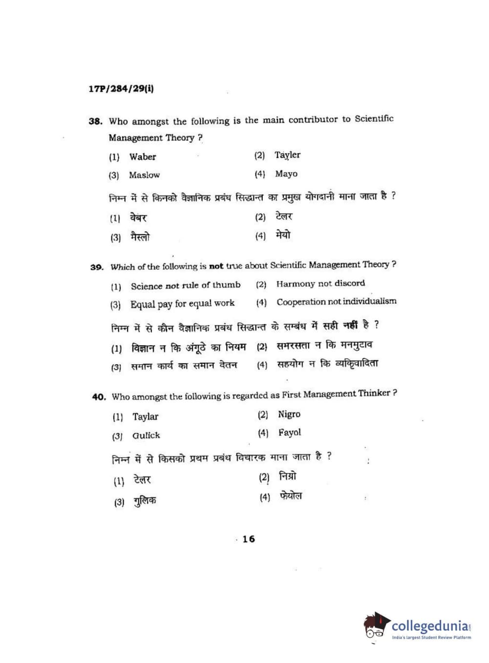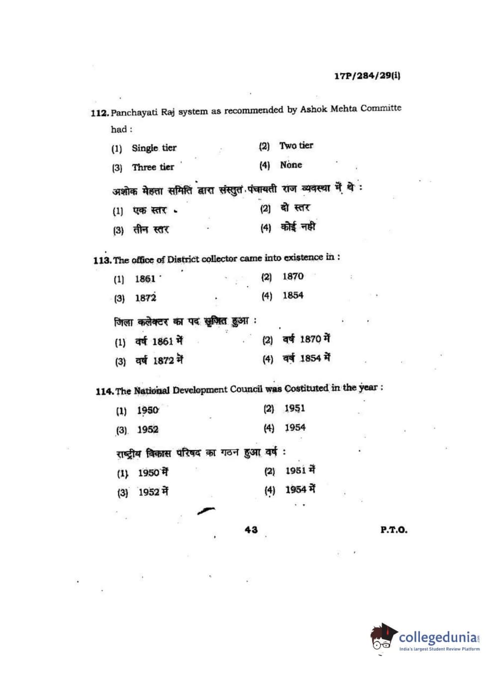 BHU PET 2017 M.A Public Administration Question Paper with Answer Key PDFs