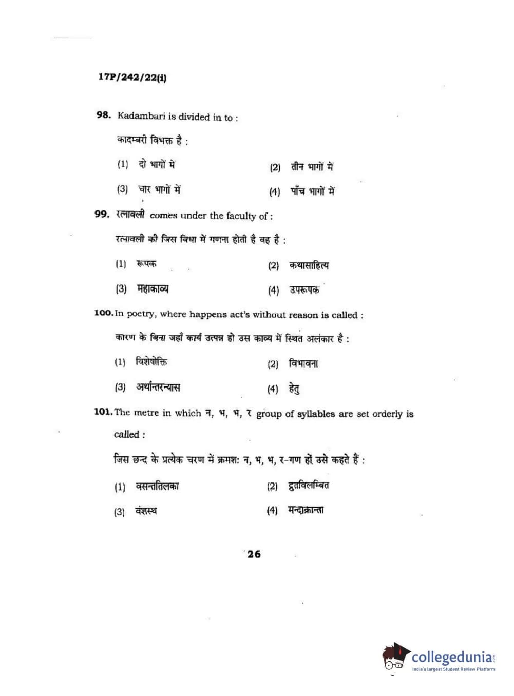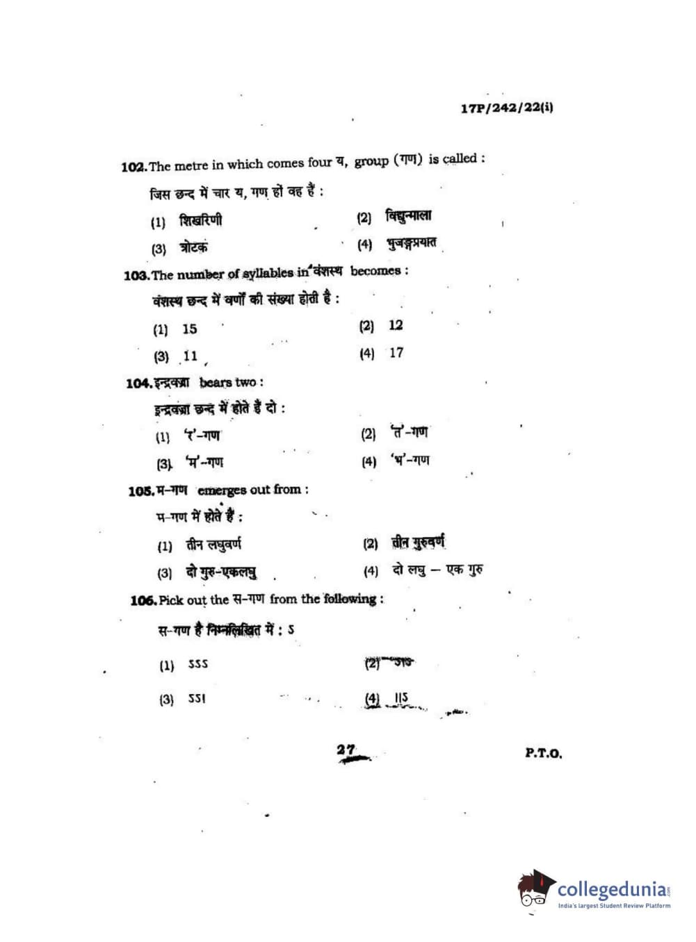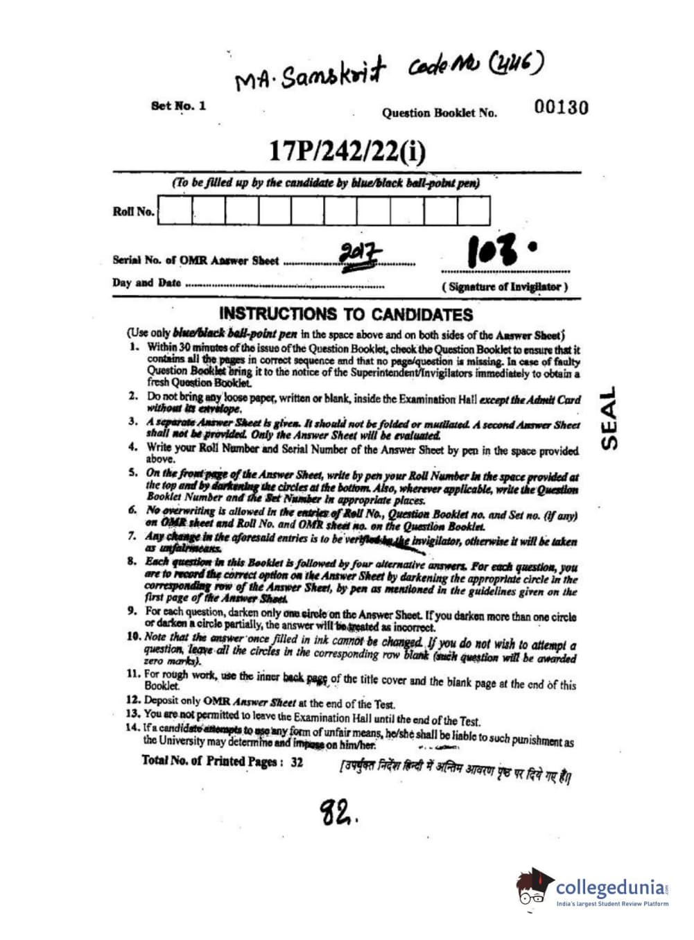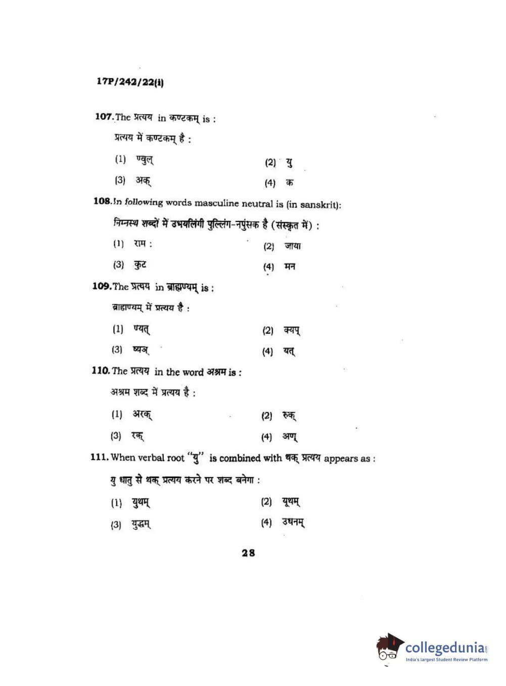 BHU PET 2017 M.A Sanskrit Question paper with answer key pdf is available for download. The exam was successfully organized by Banaras Hindu University (BHU). The question paper comprised a total of 120 questions.