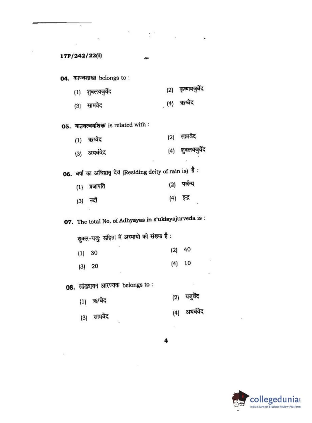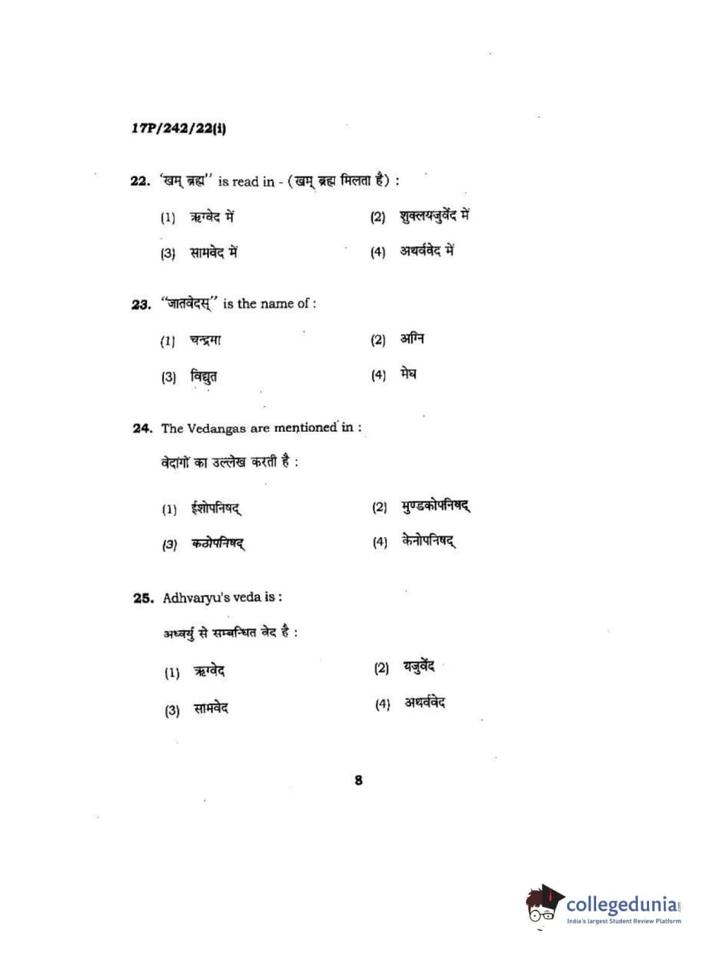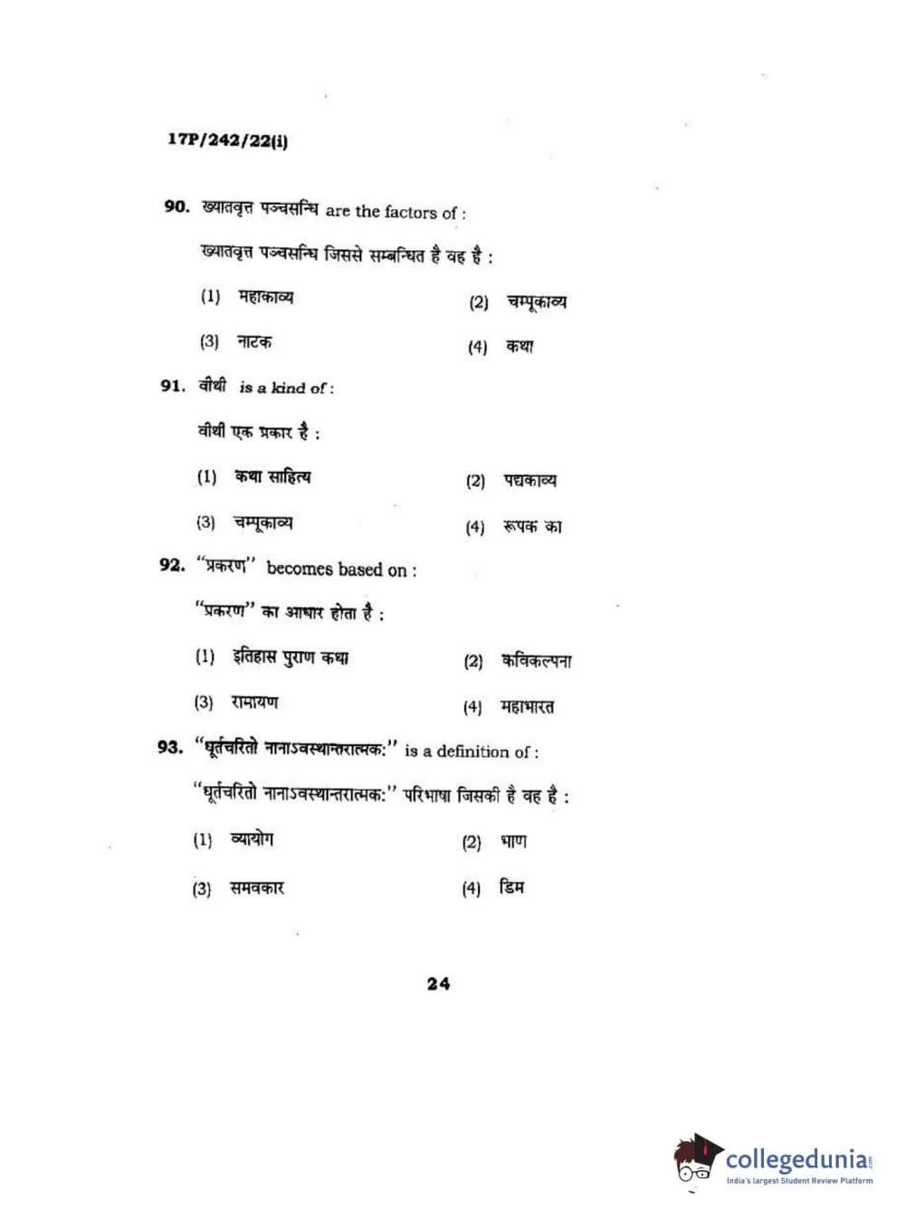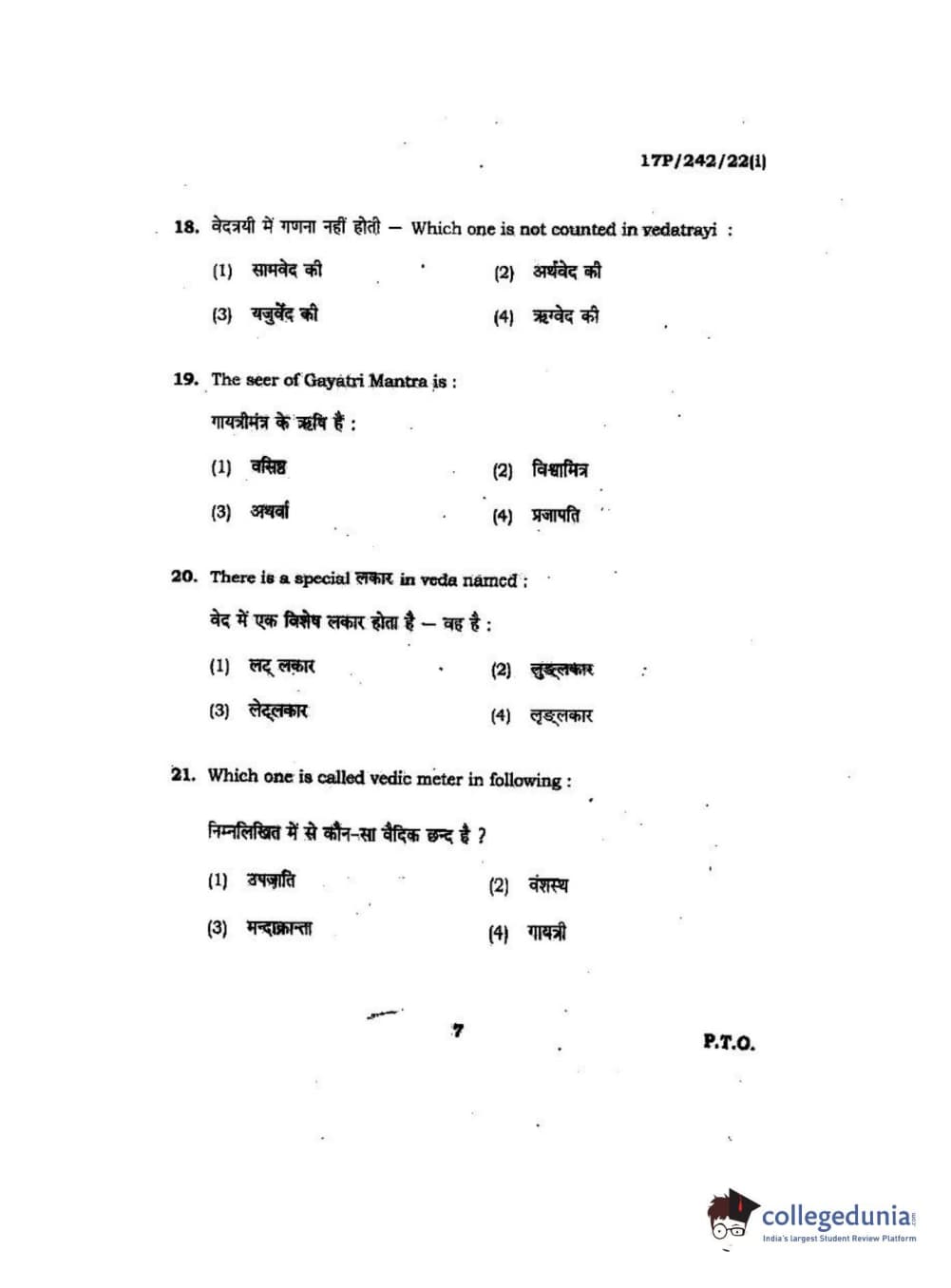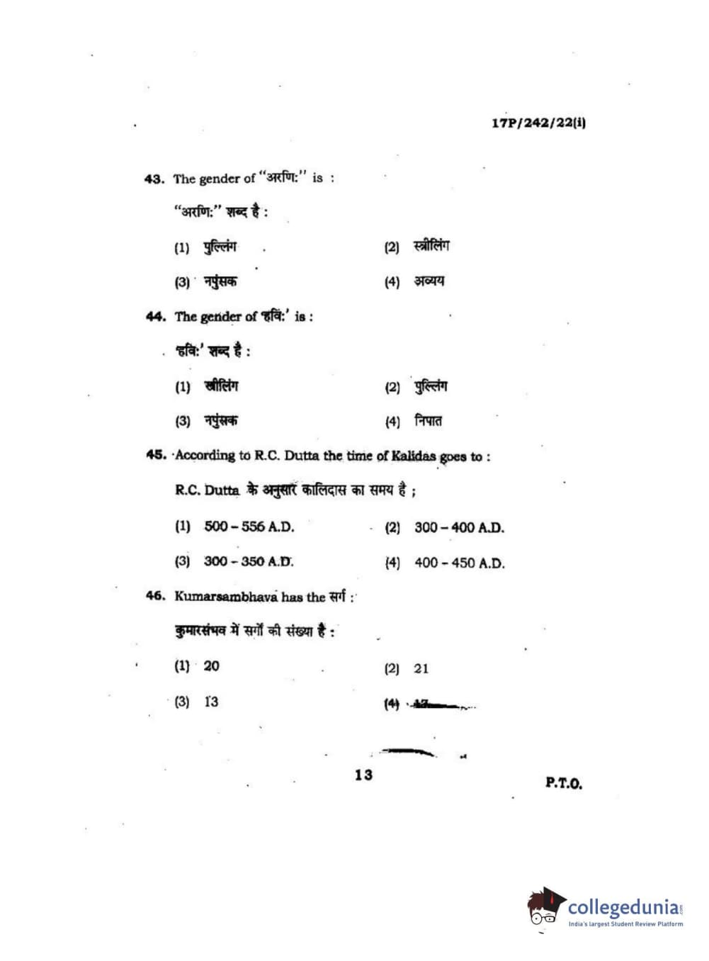 BHU PET 2017 M.A Sanskrit Question Paper with Answer Key PDFs