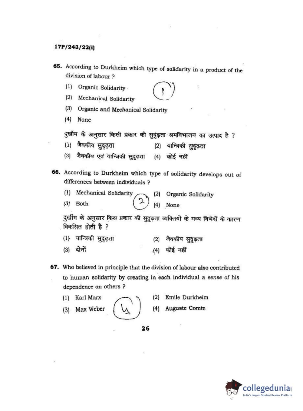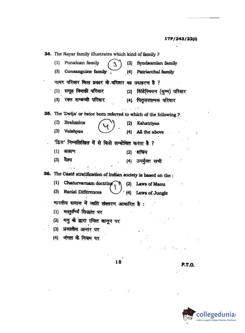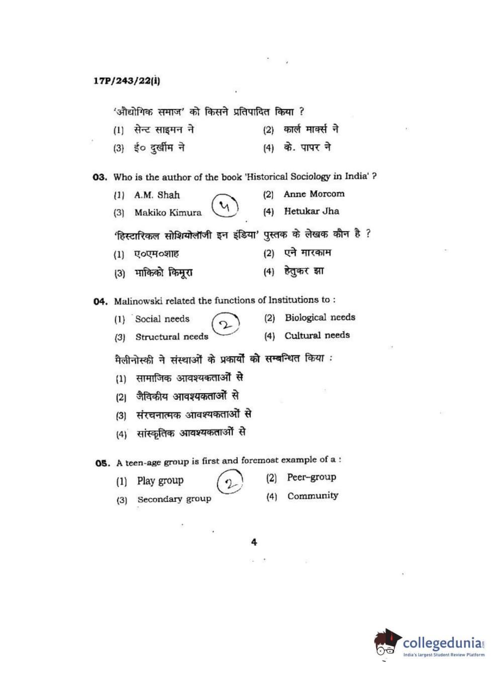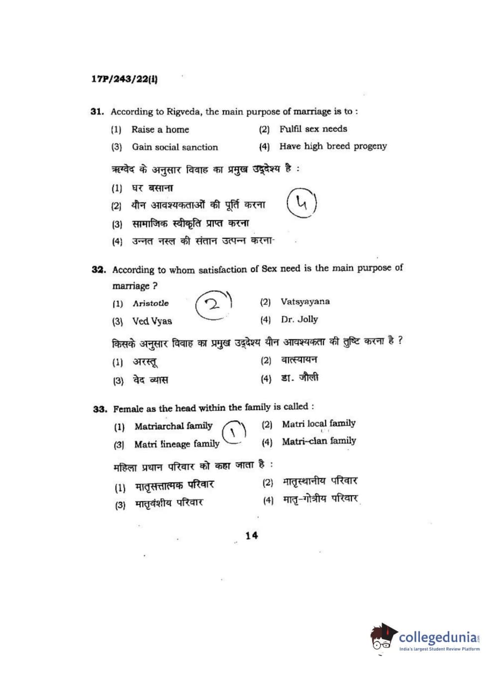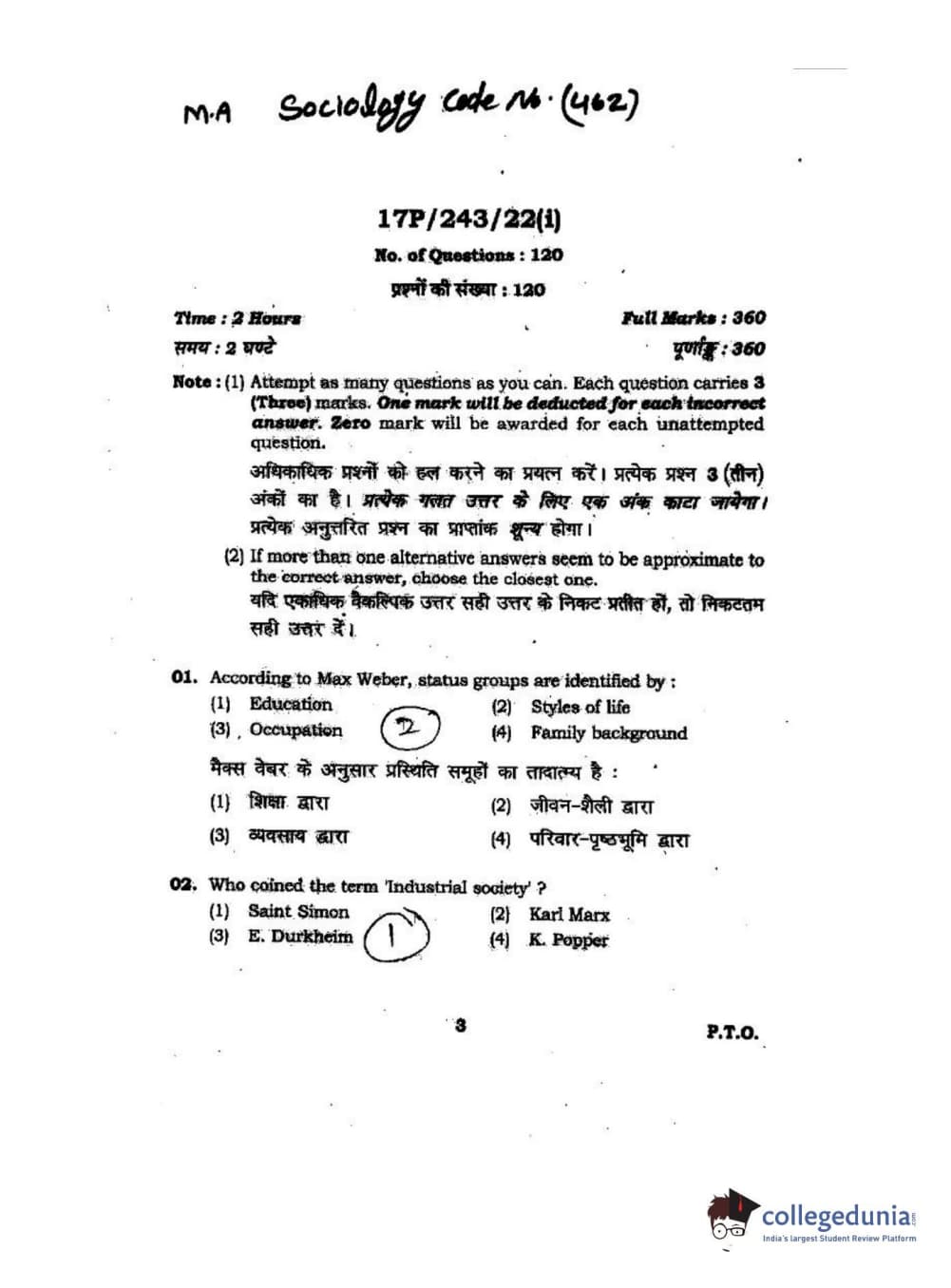 BHU PET 2017 M.A Sociology Question Paper with Answer Key PDFs