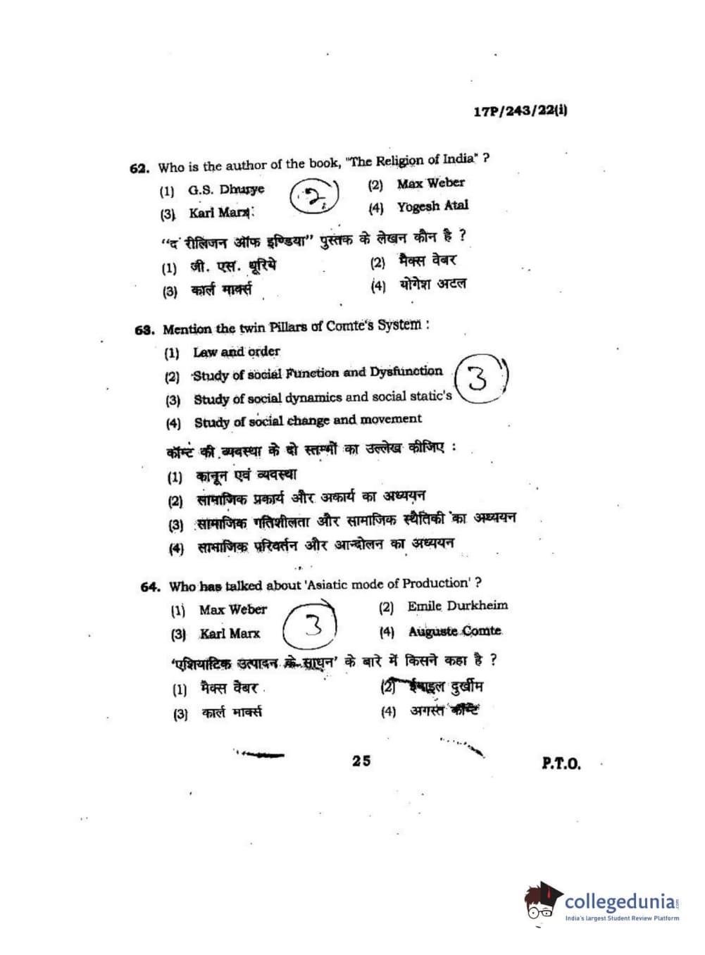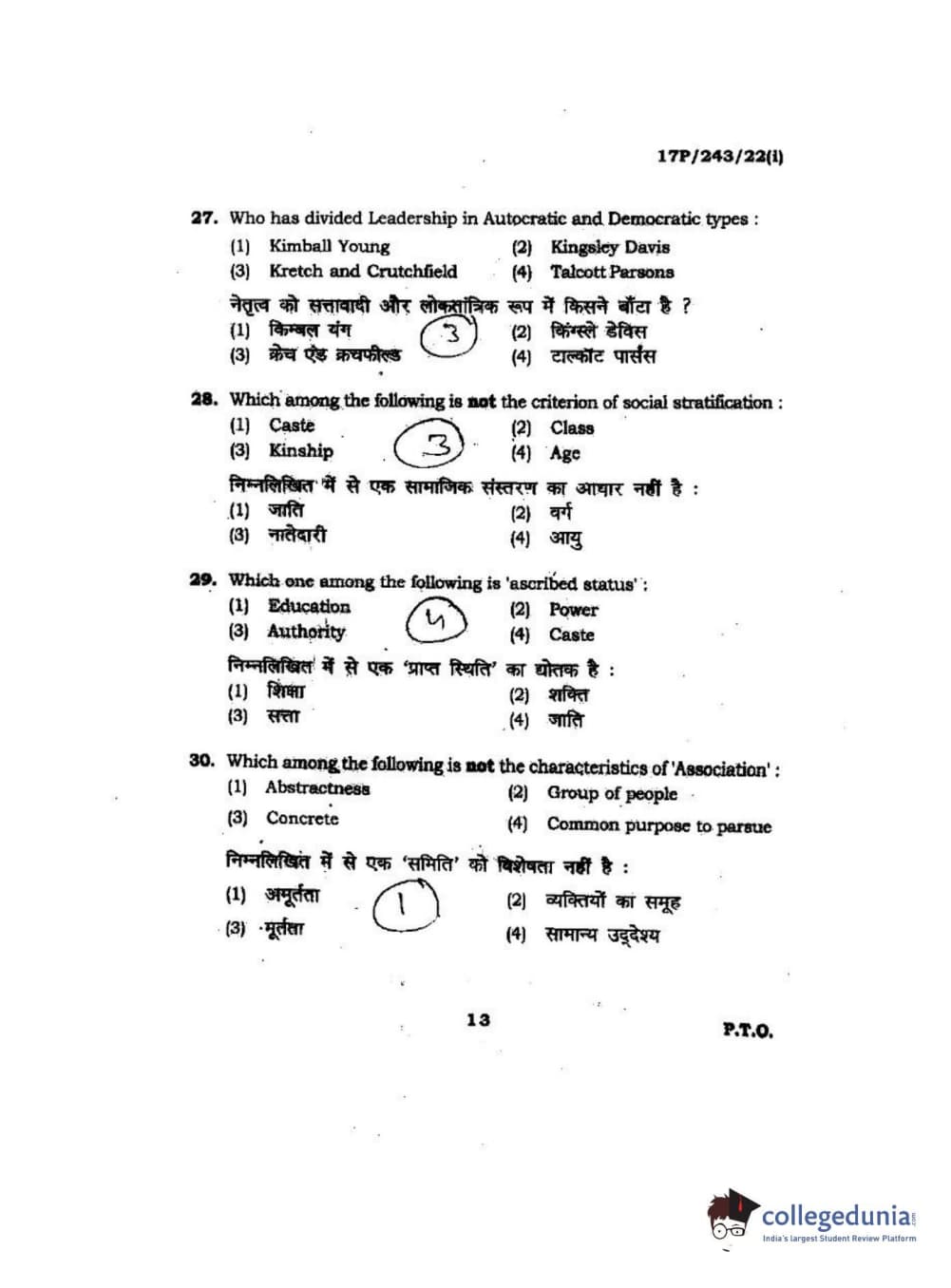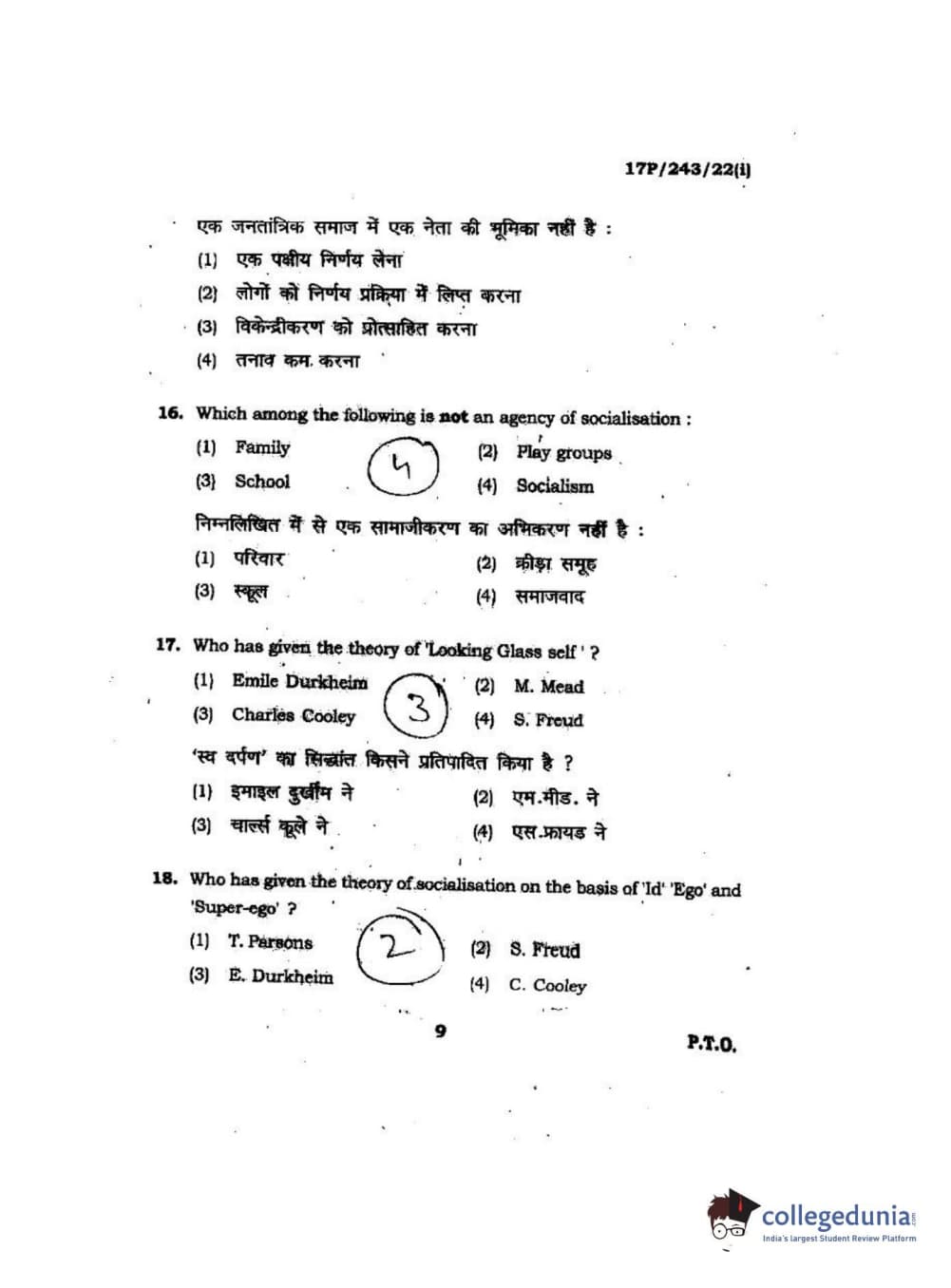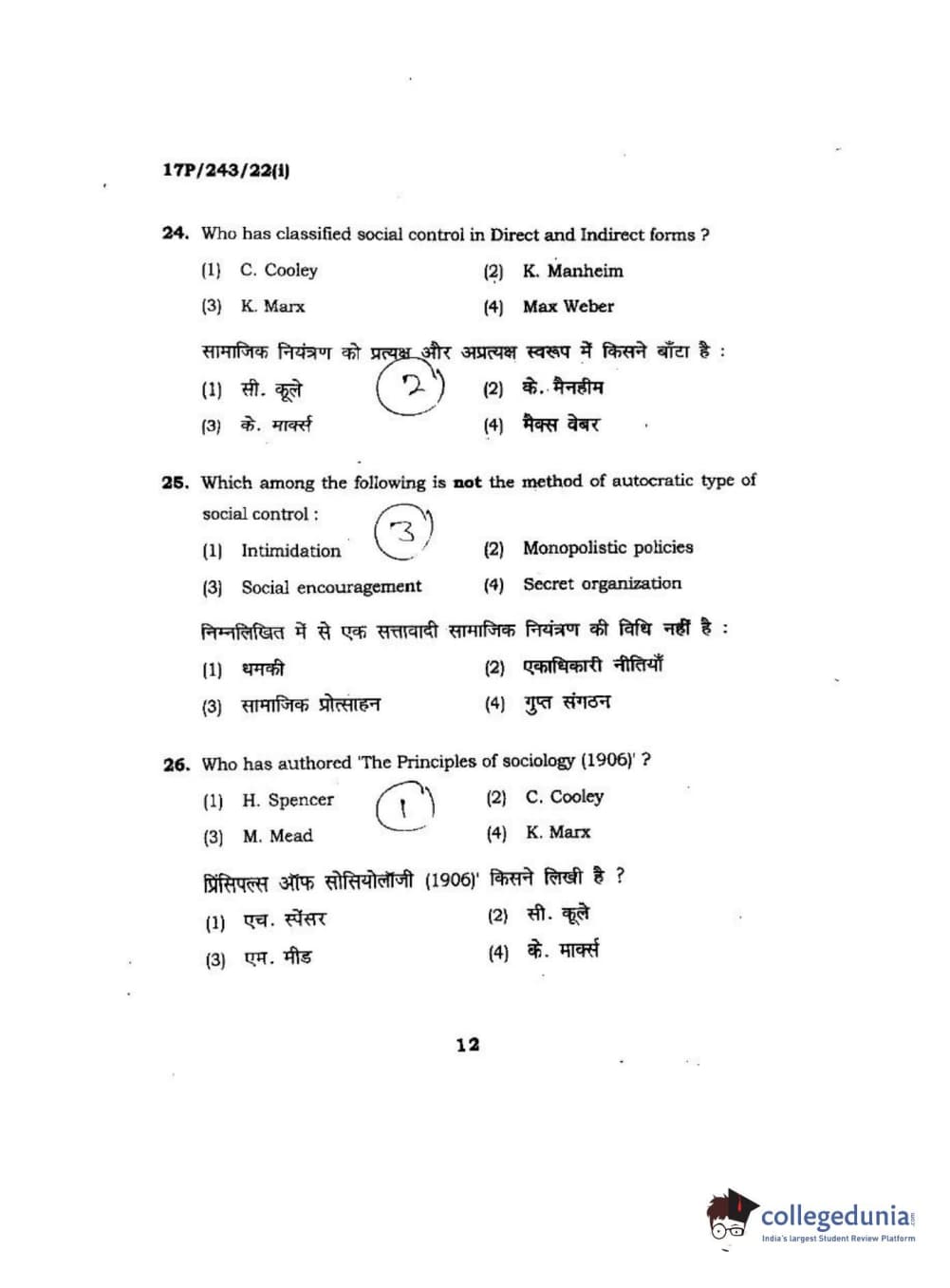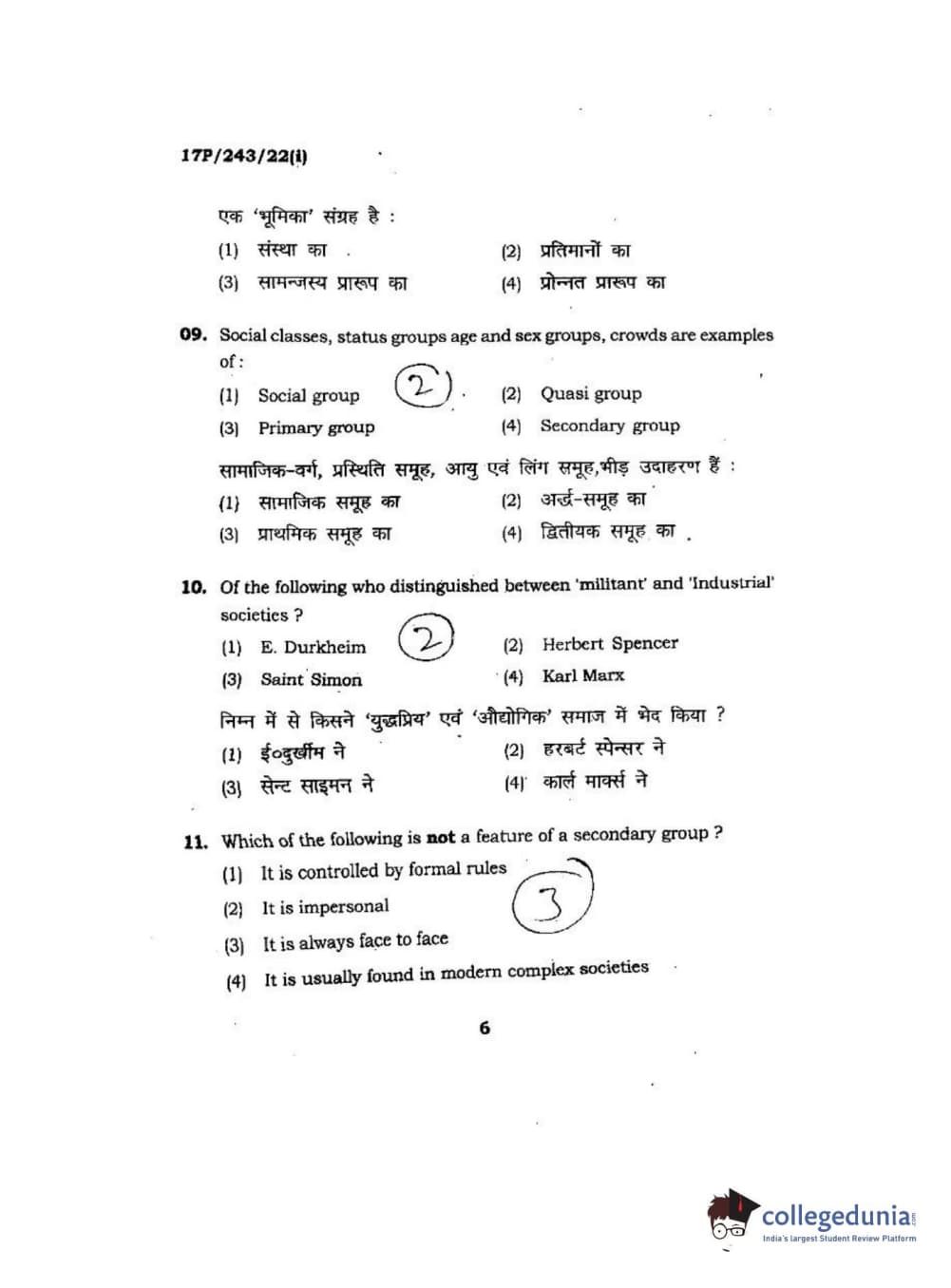 BHU PET 2017 M.A Sociology Question Paper with Answer Key PDFs
