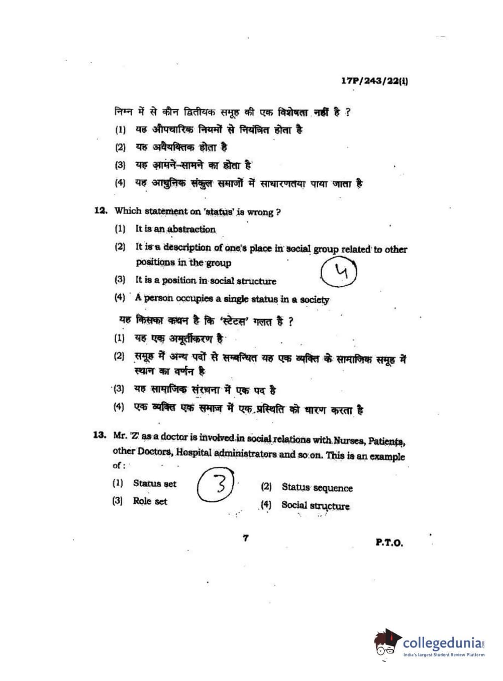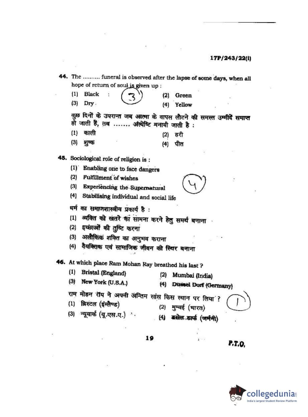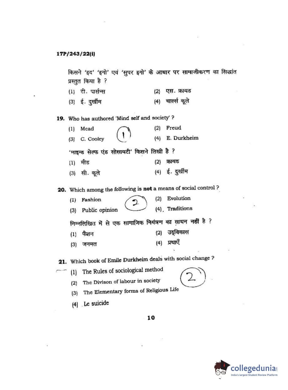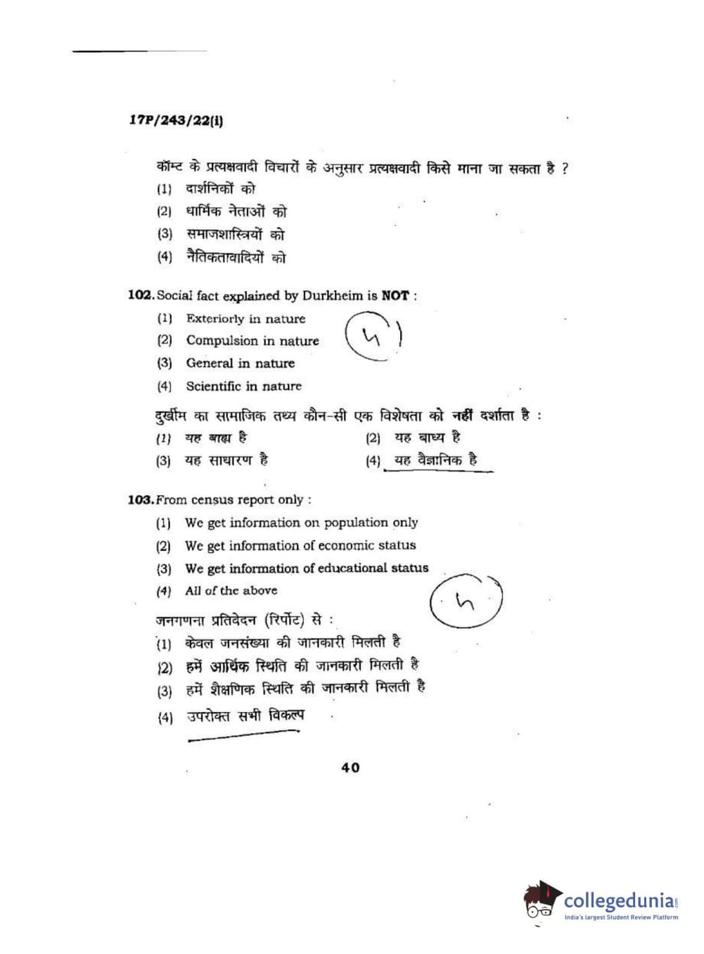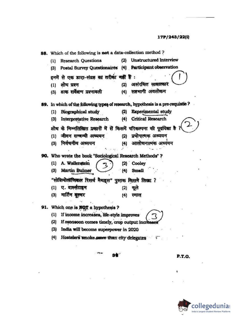 BHU PET 2017 M.A Sociology Question Paper with Answer Key PDFs