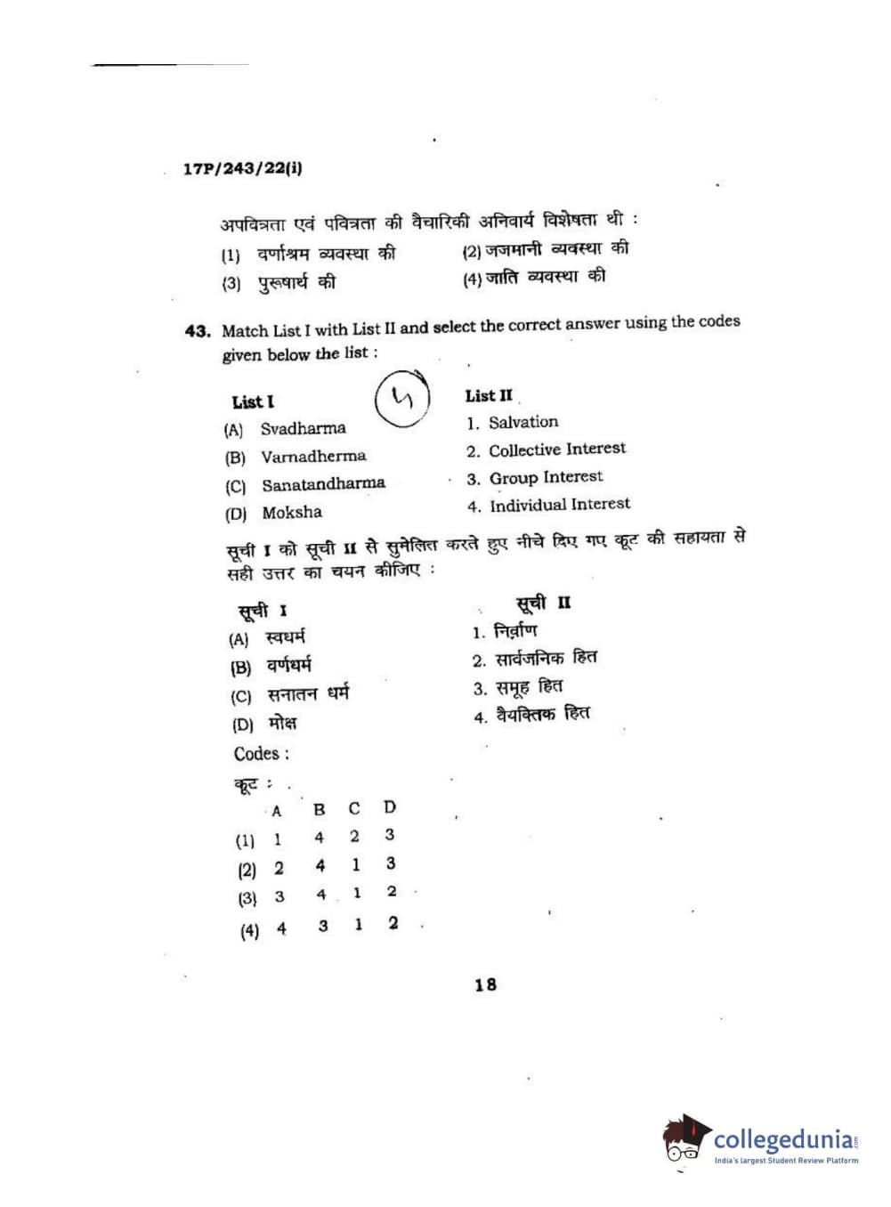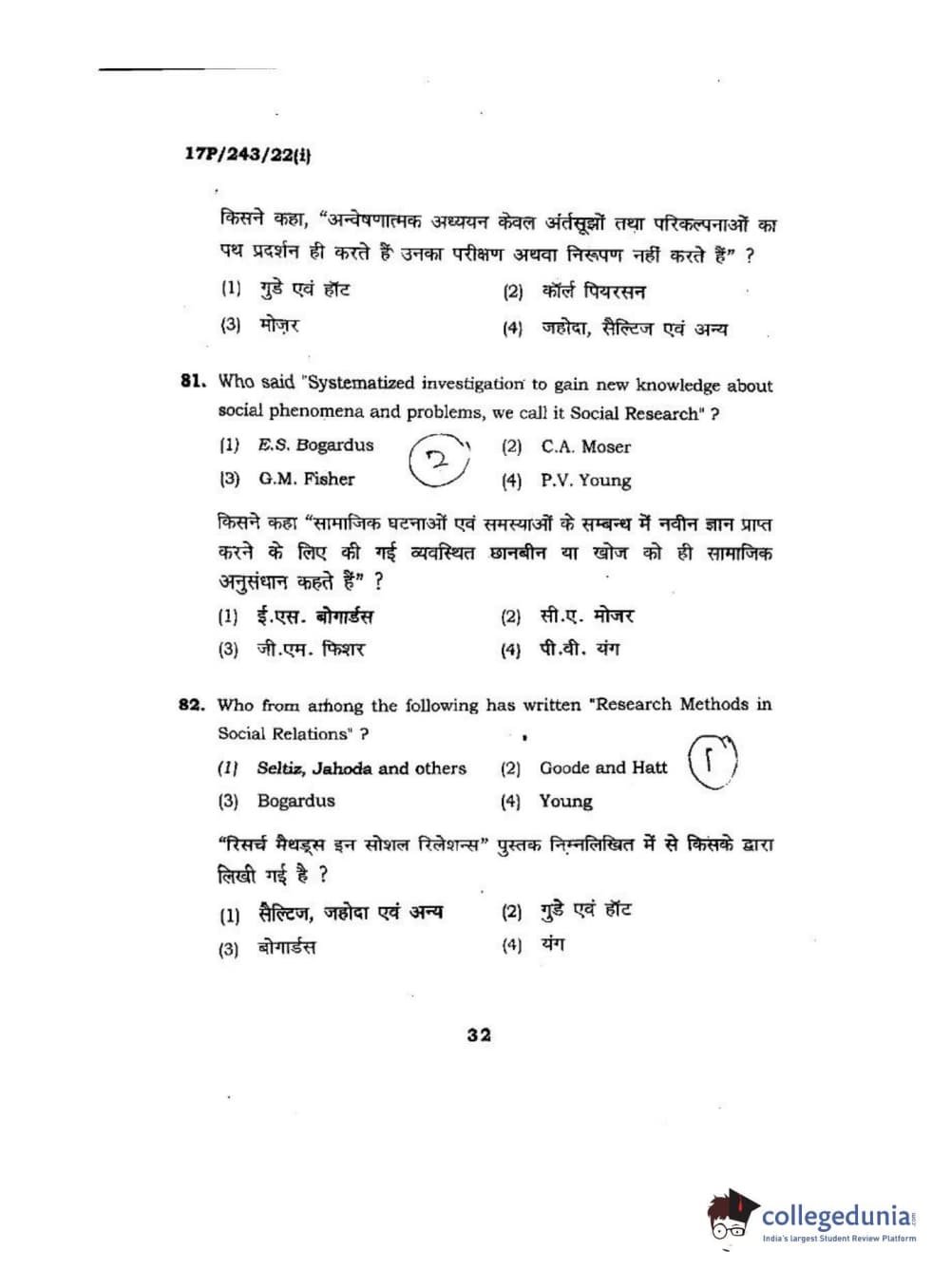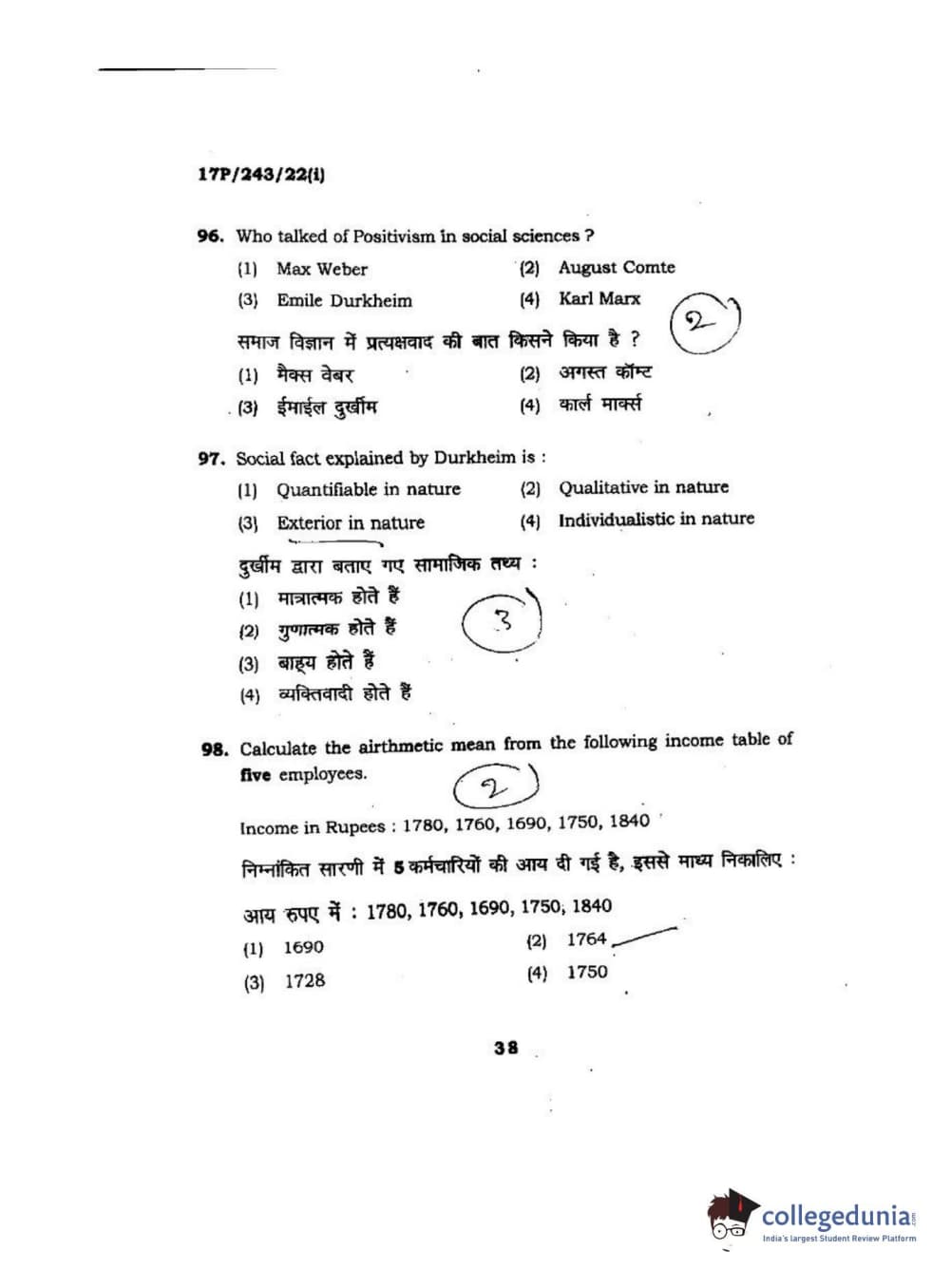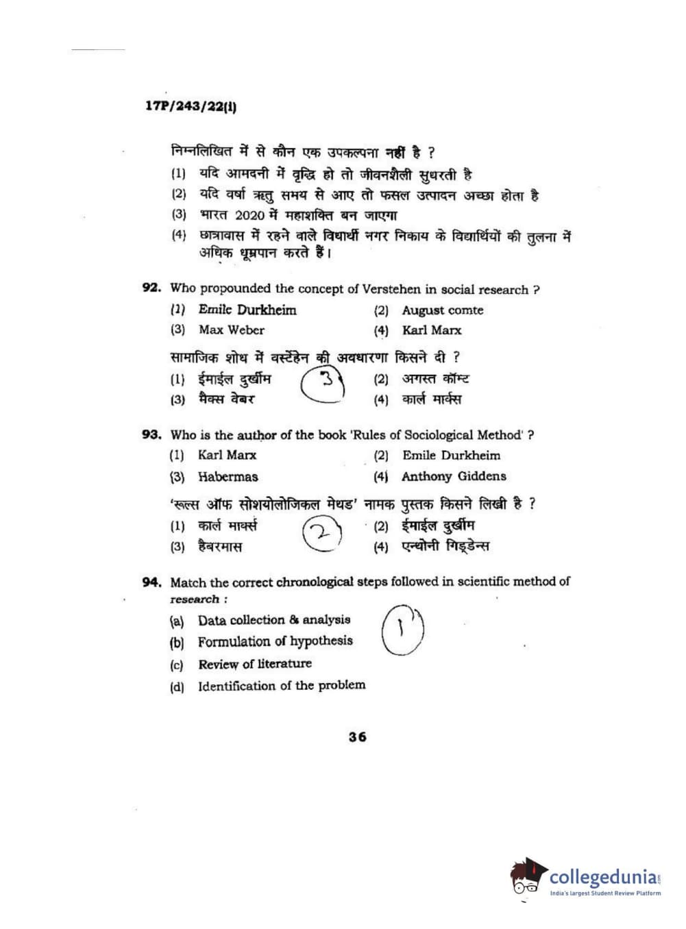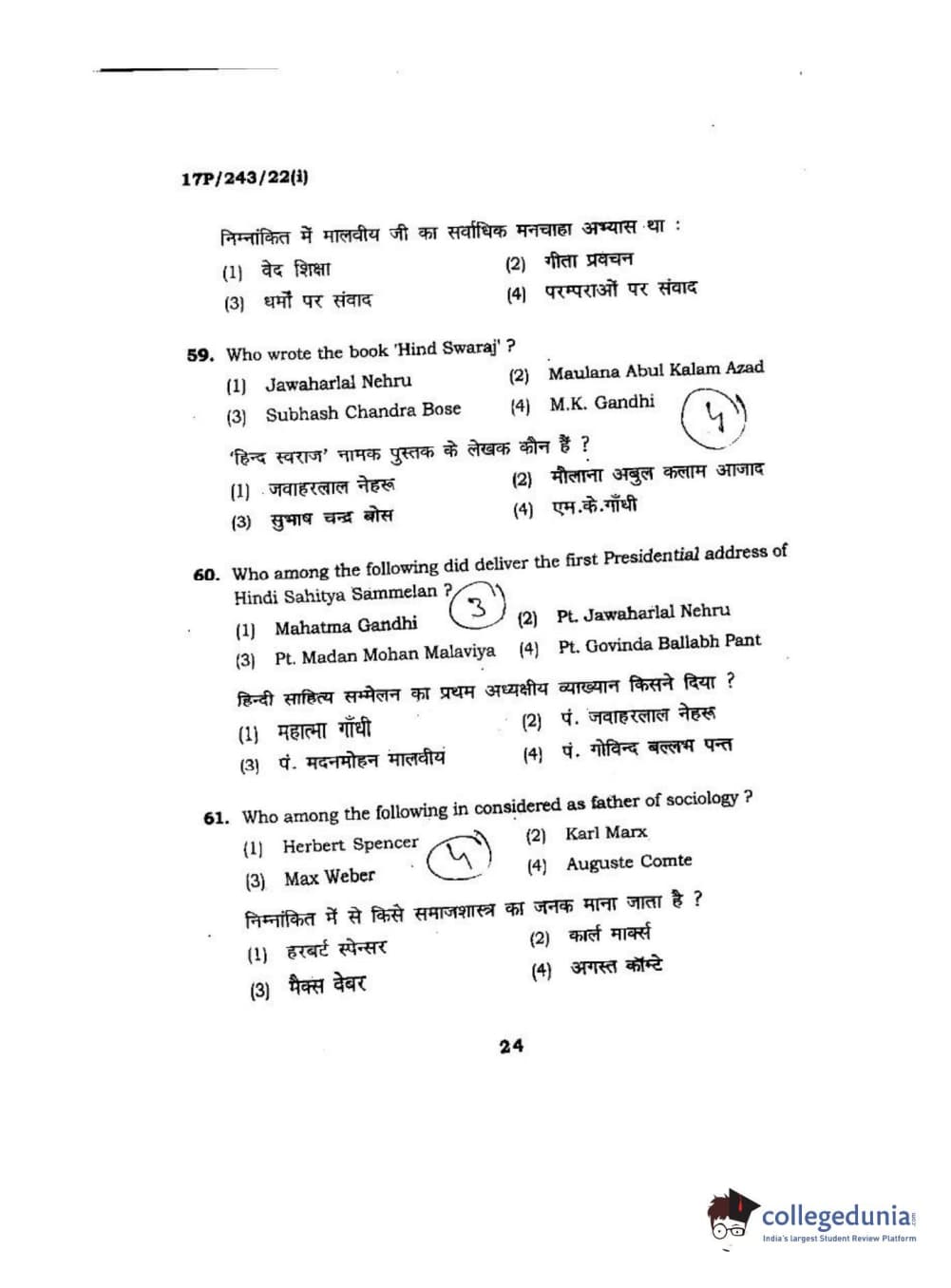 BHU PET 2017 M.A Sociology Question Paper with Answer Key PDFs