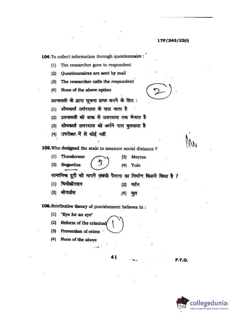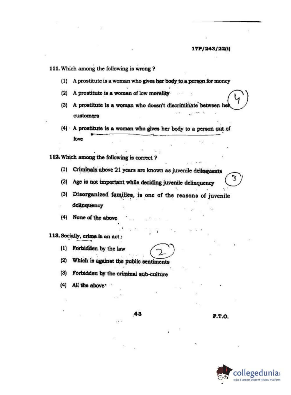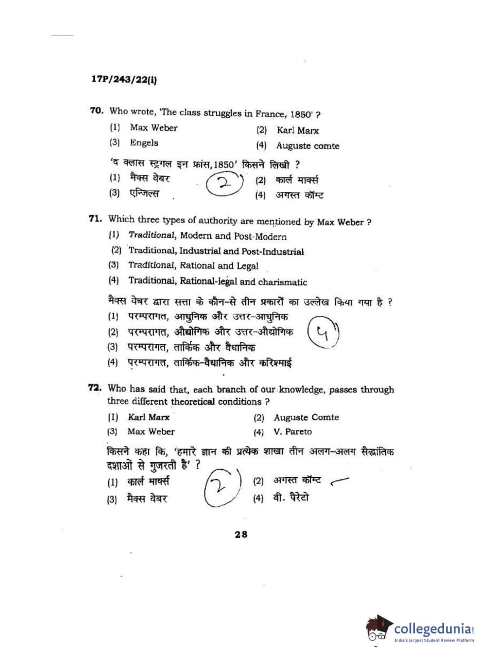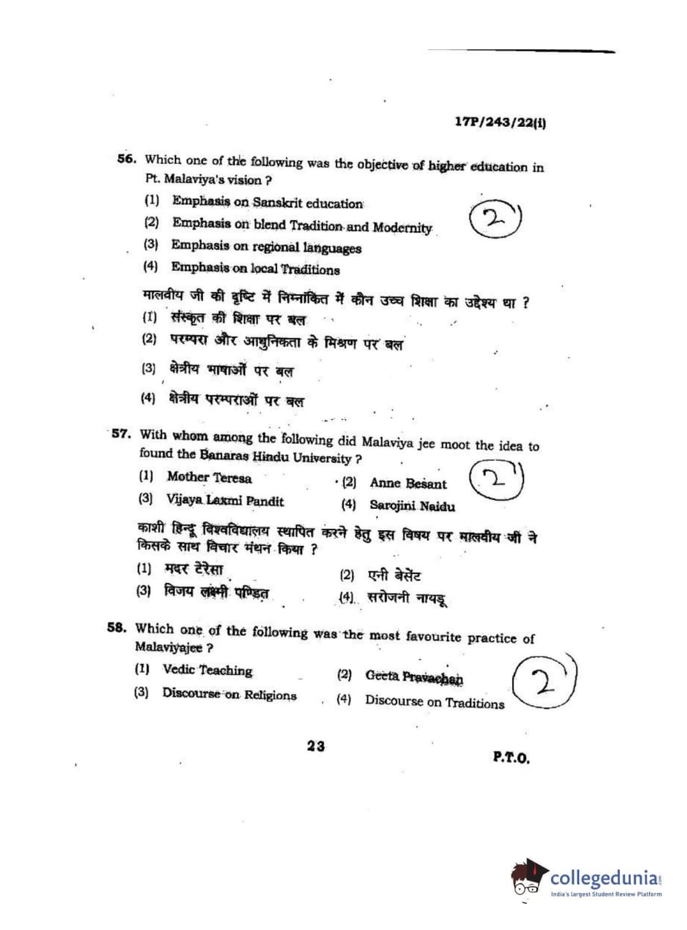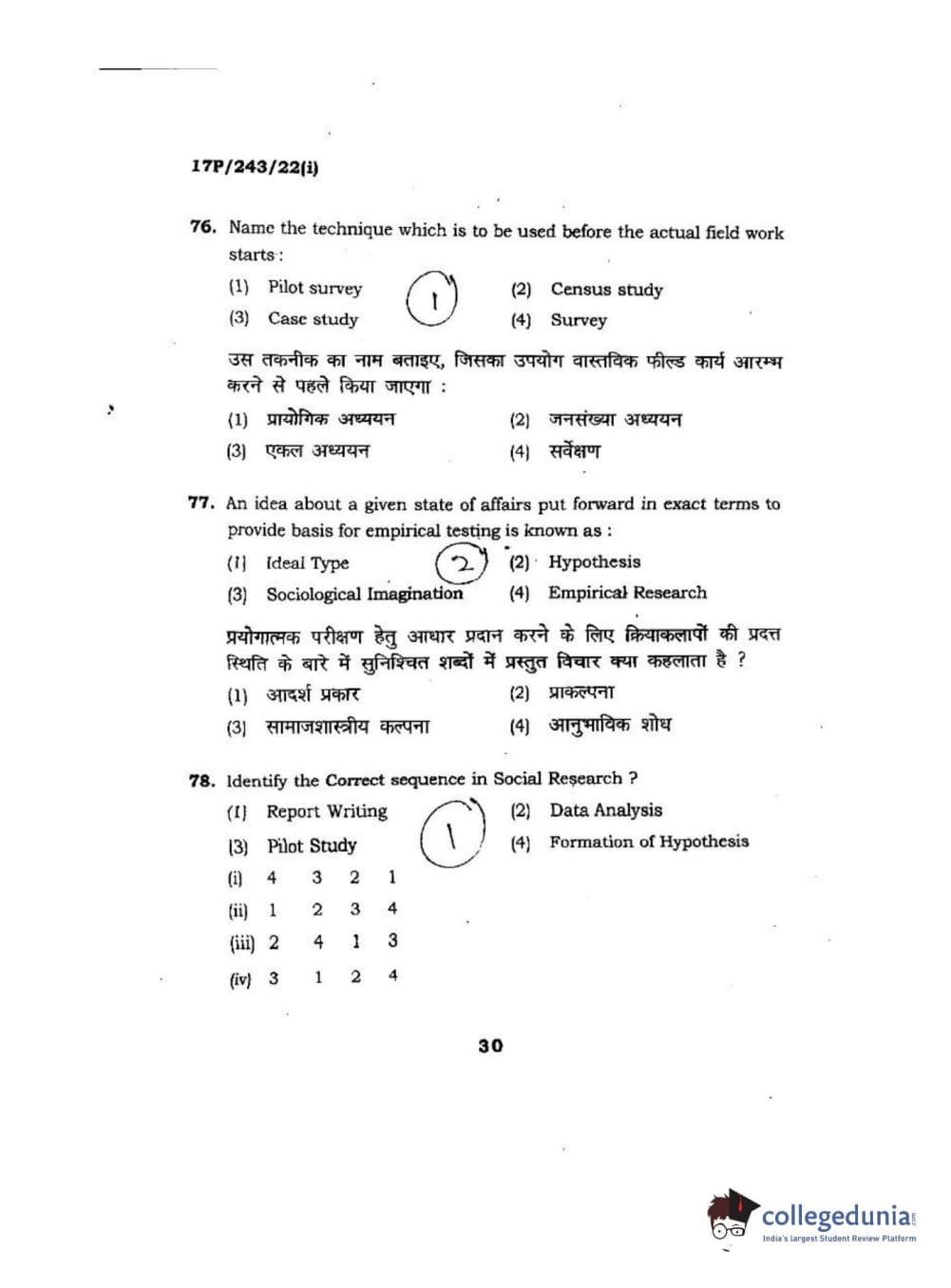 BHU PET 2017 M.A Sociology Question Paper with Answer Key PDFs