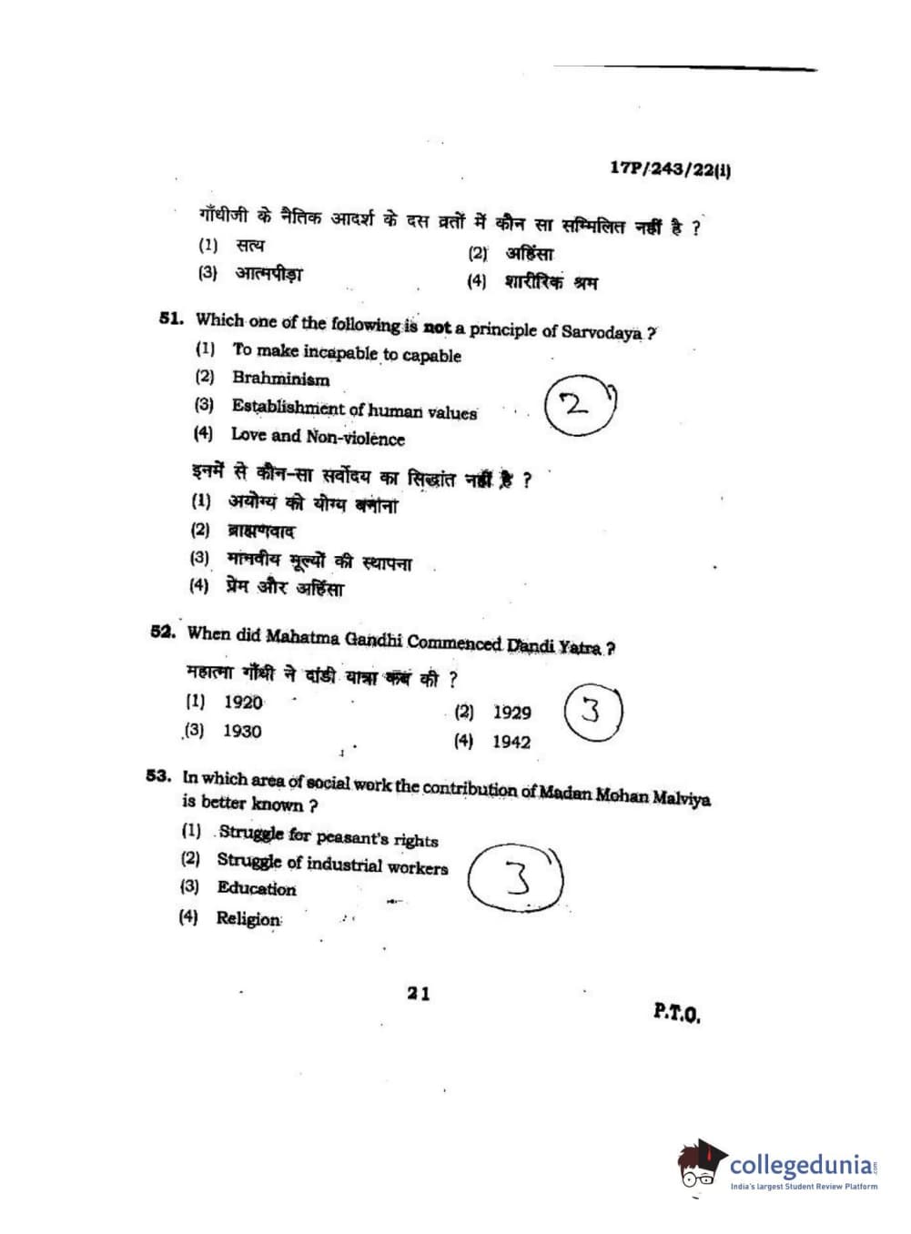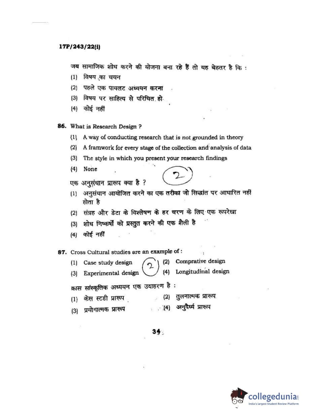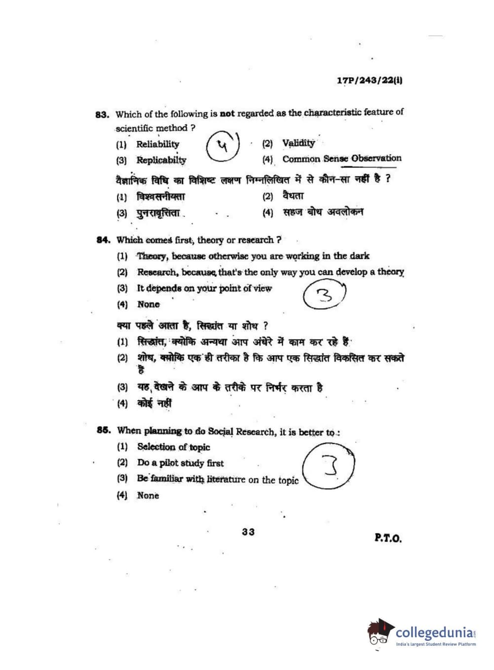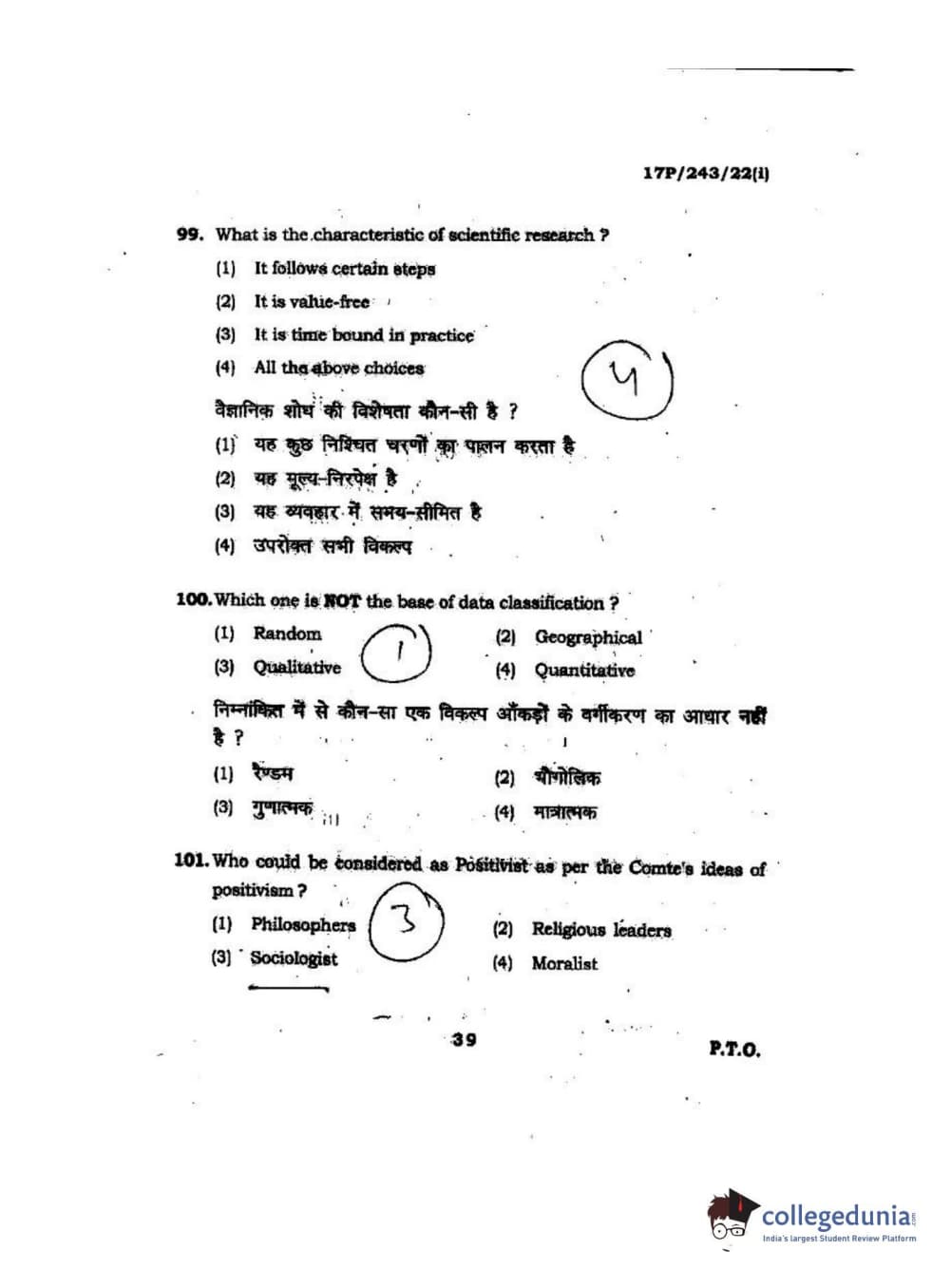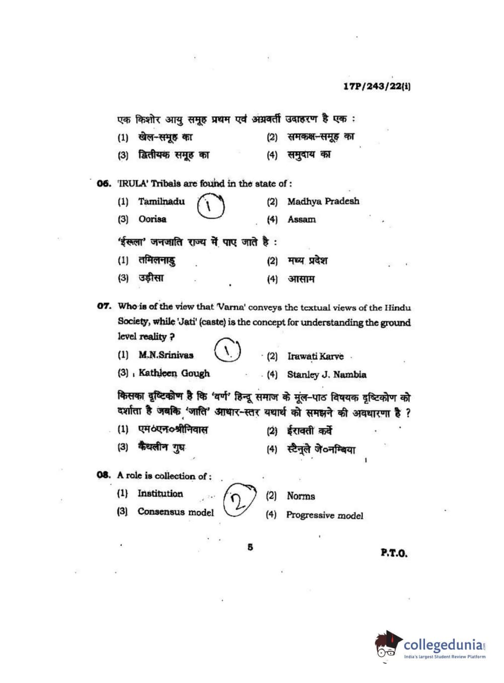 BHU PET 2017 M.A Sociology Question Paper with Answer Key PDFs