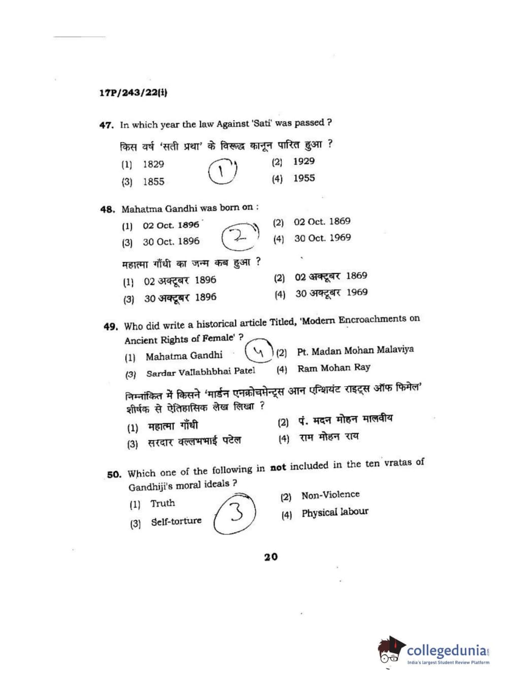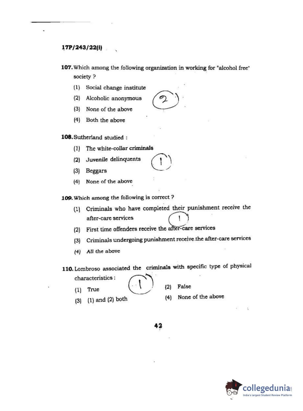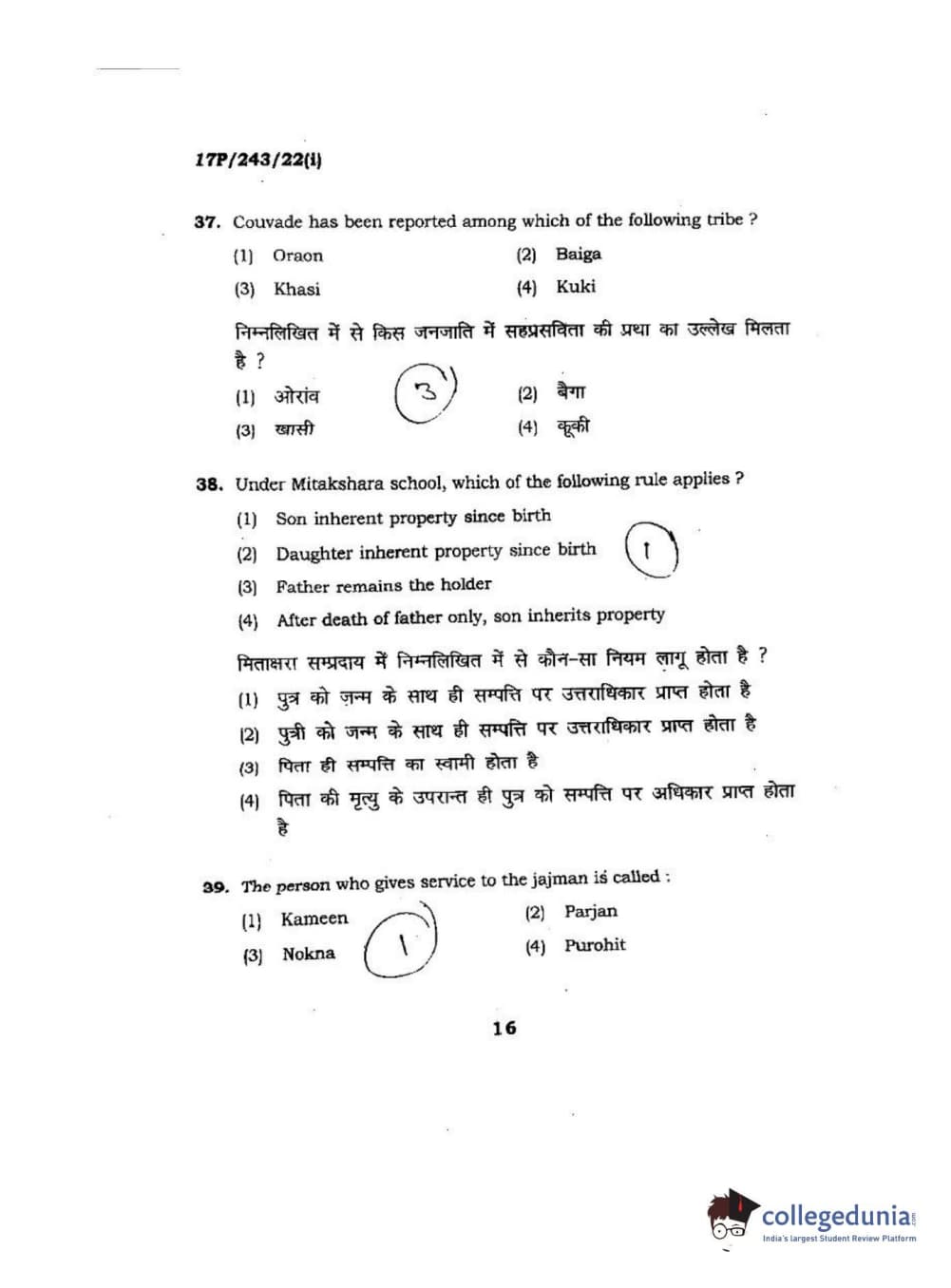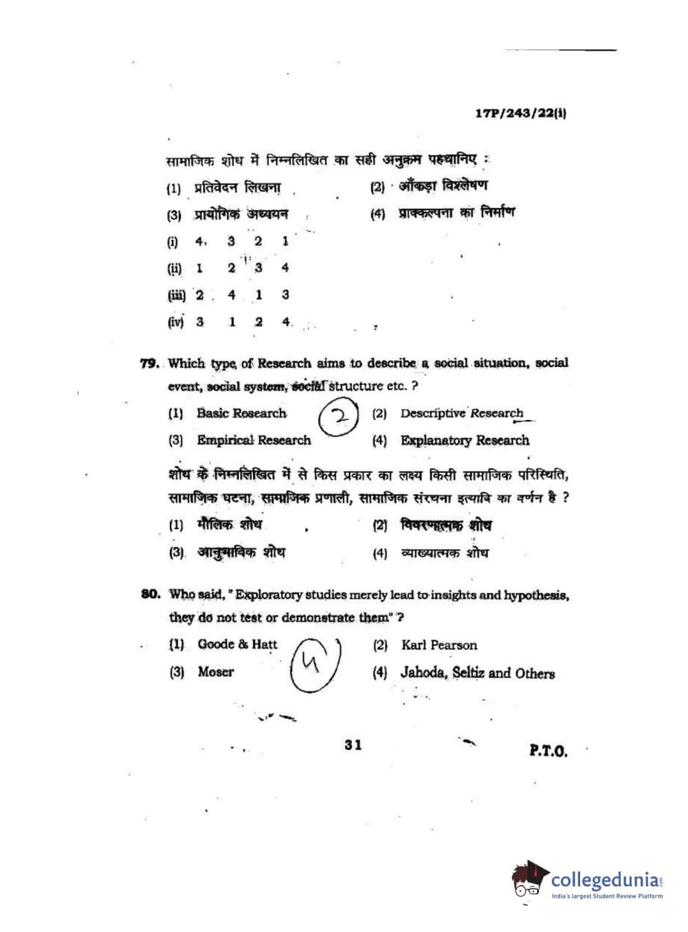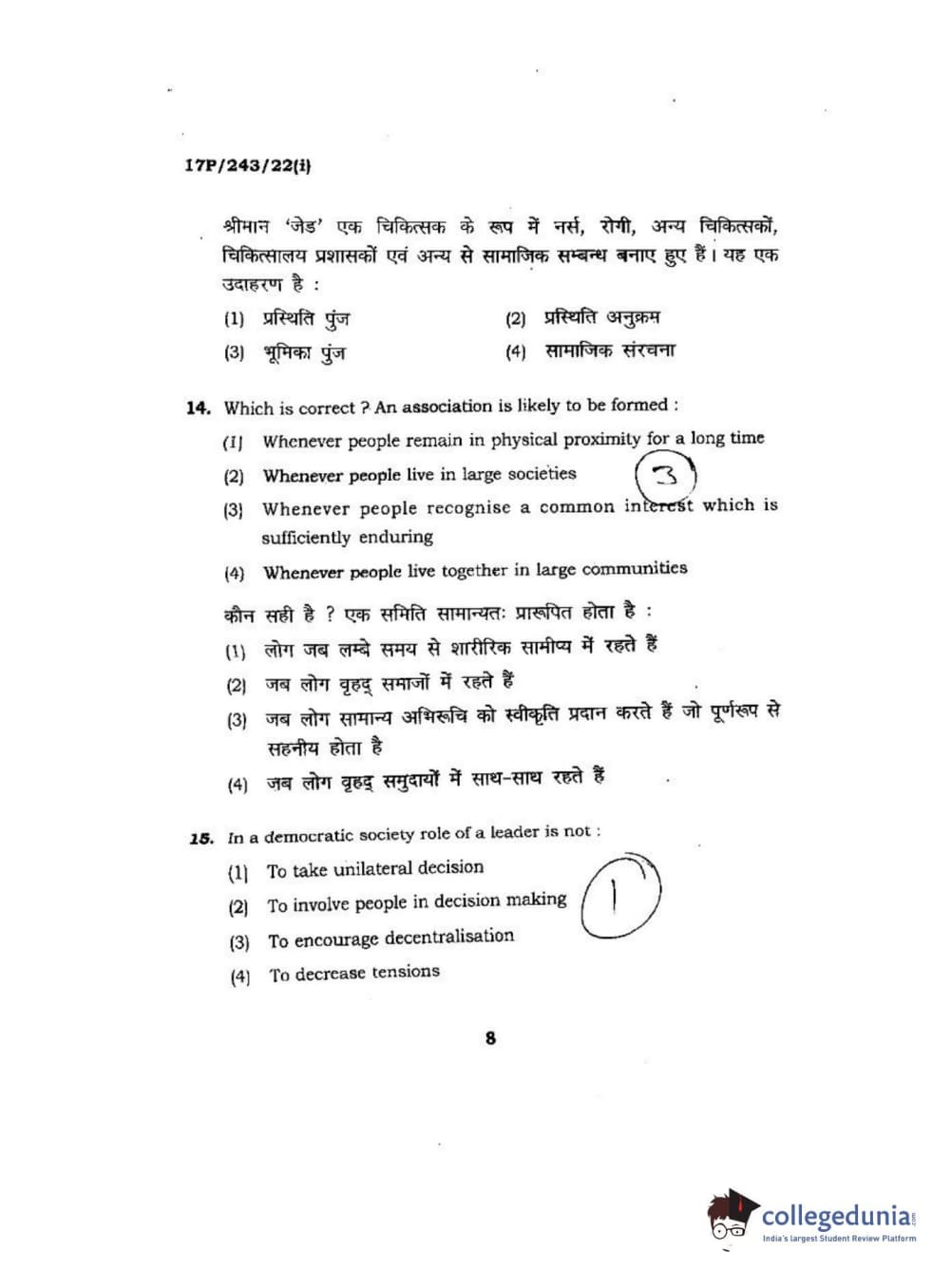 BHU PET 2017 M.A Sociology Question Paper with Answer Key PDFs