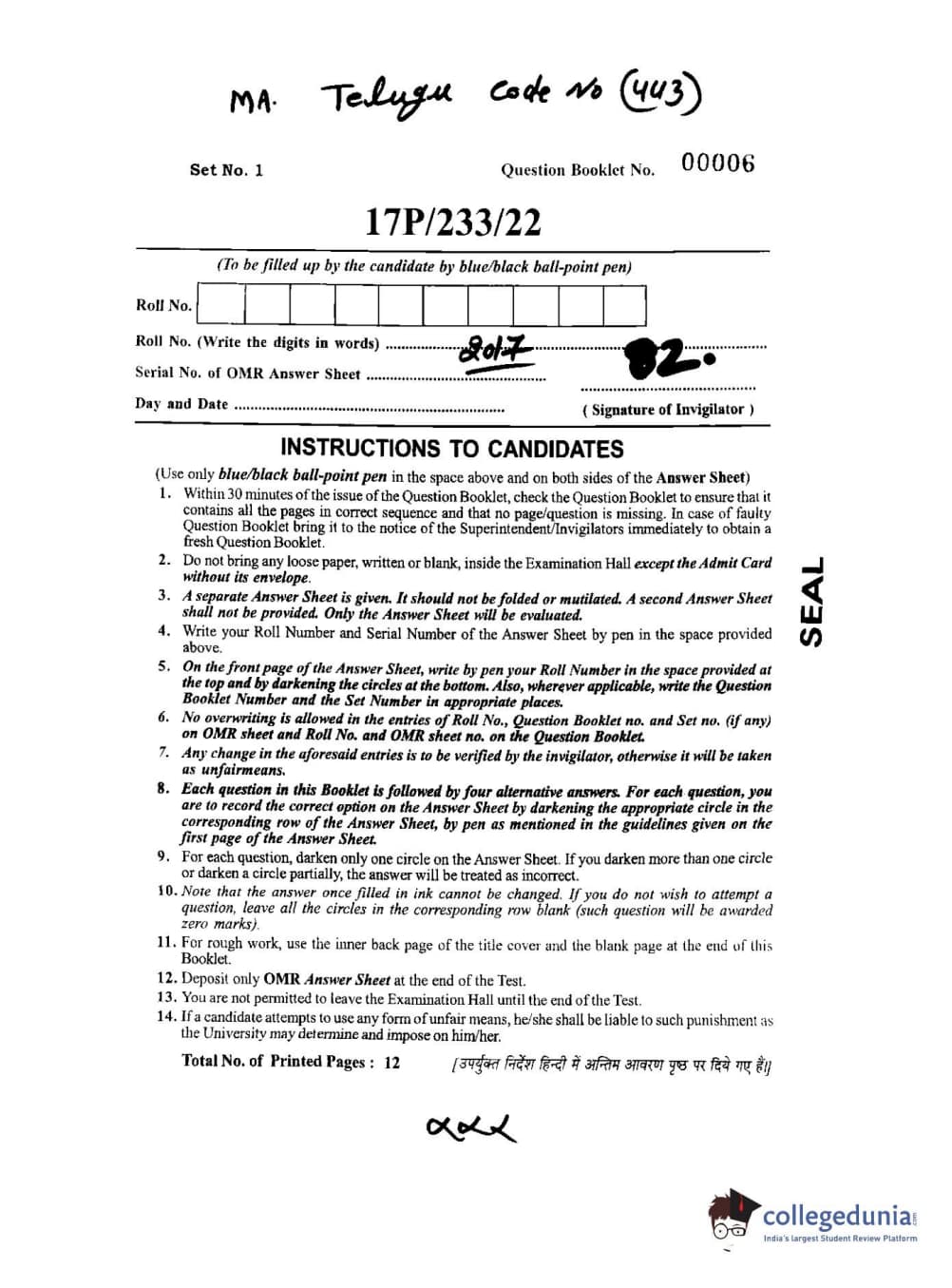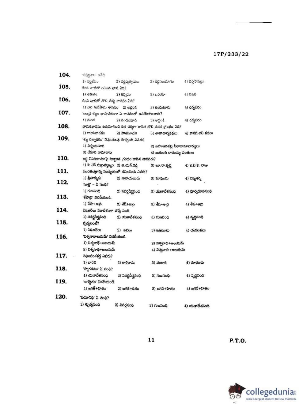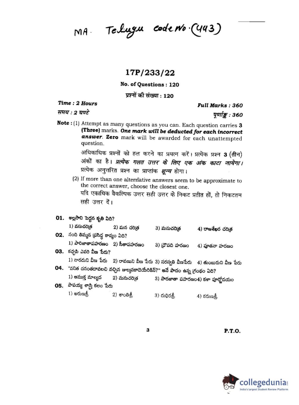 BHU PET 2017 M.A Telugu Question paper with answer key pdf is available for download. The exam was successfully organized by Banaras Hindu University (BHU). The question paper comprised a total of 120 questions.