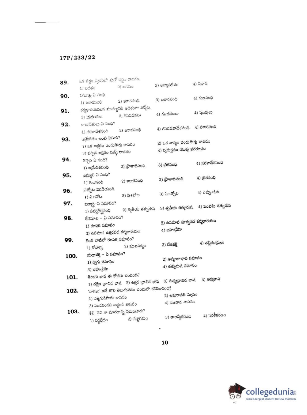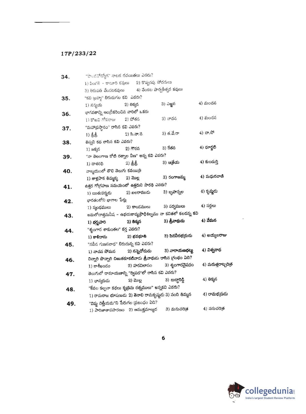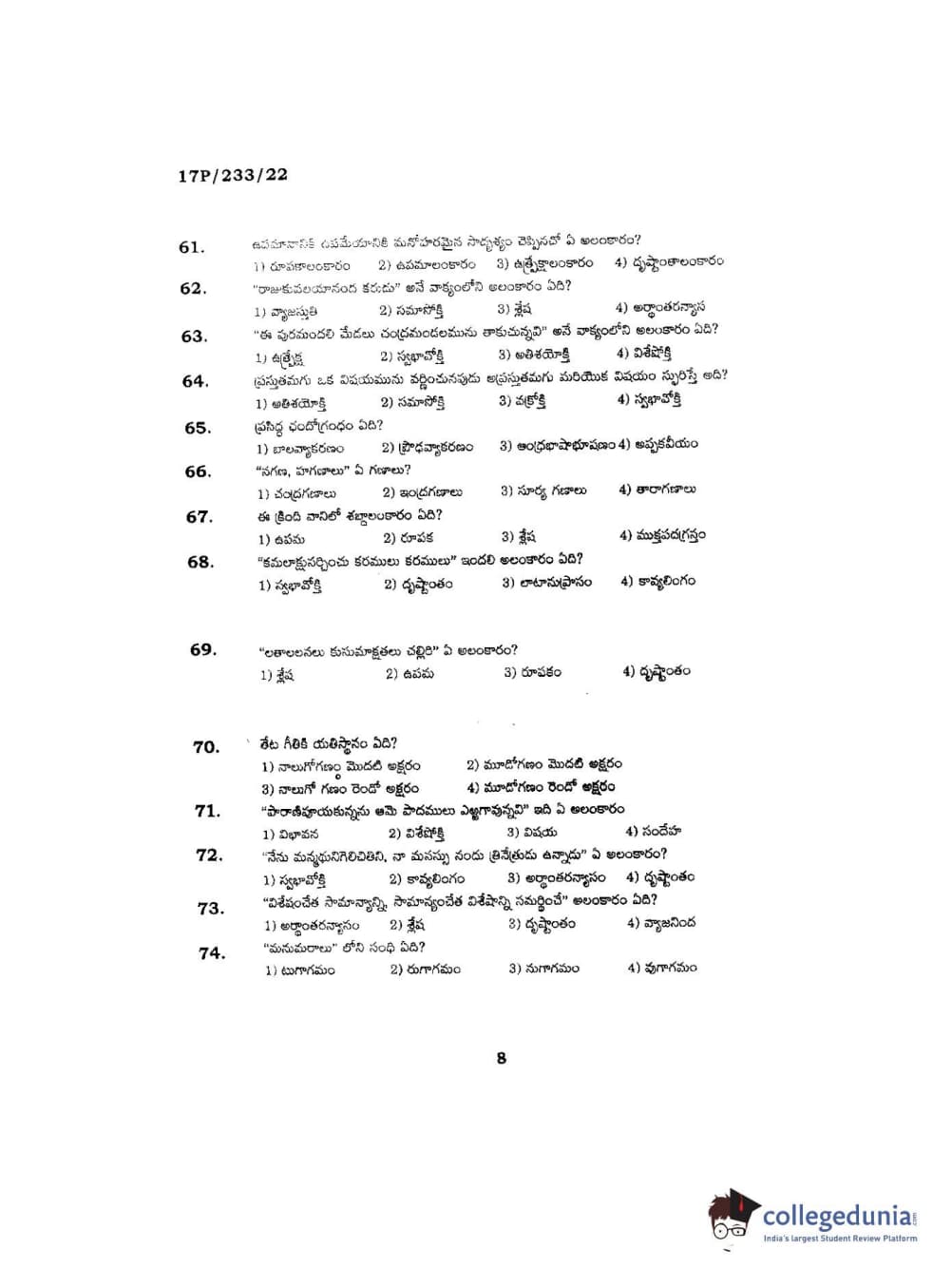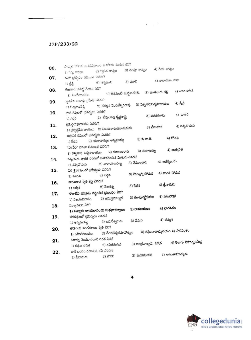 BHU PET 2017 M.A Telugu Question Paper with Answer Key PDFs in Telugu
