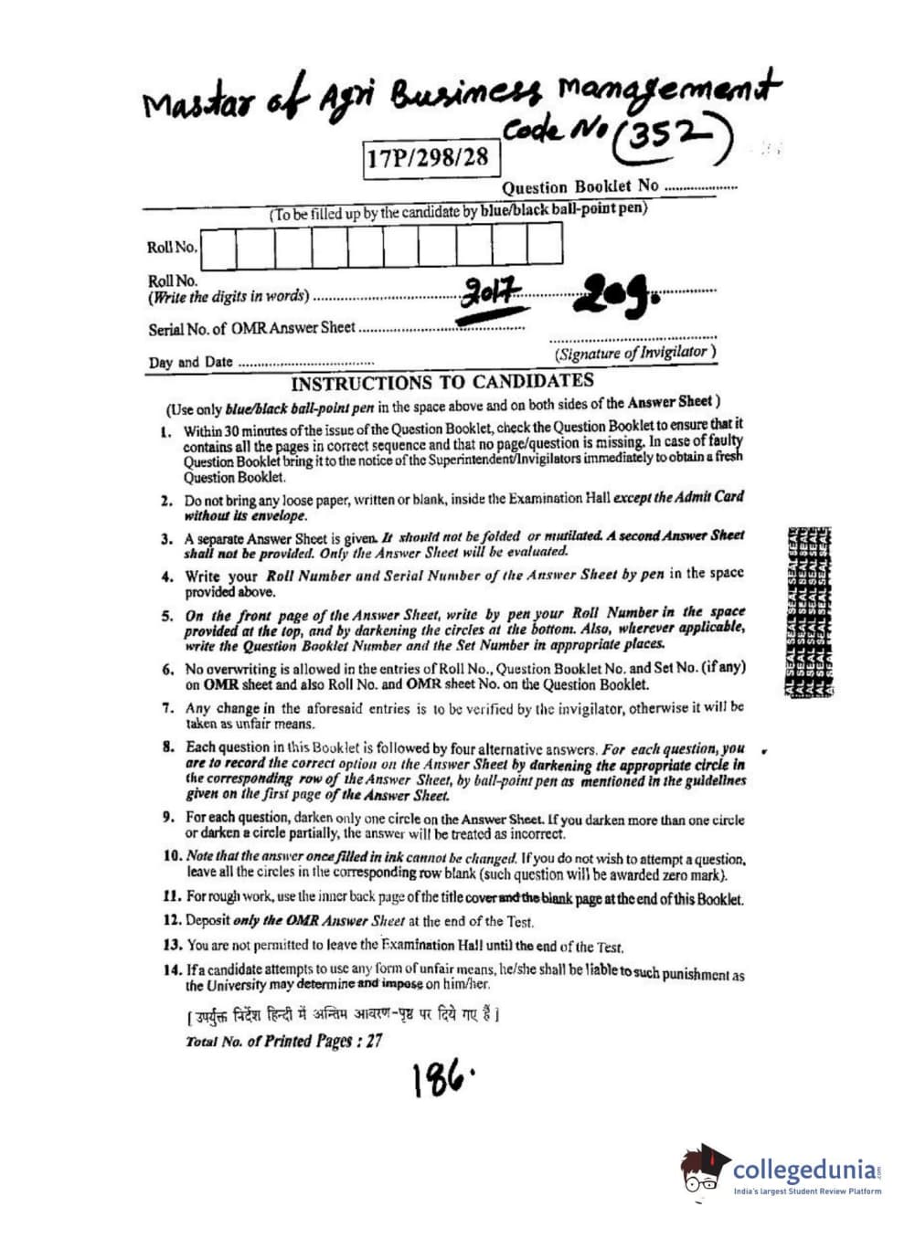 | BHU PET 2017 Master of Agri Business Question Paper PDF | BHU PET 2017 Master of Agri Business Answer Key PDF |