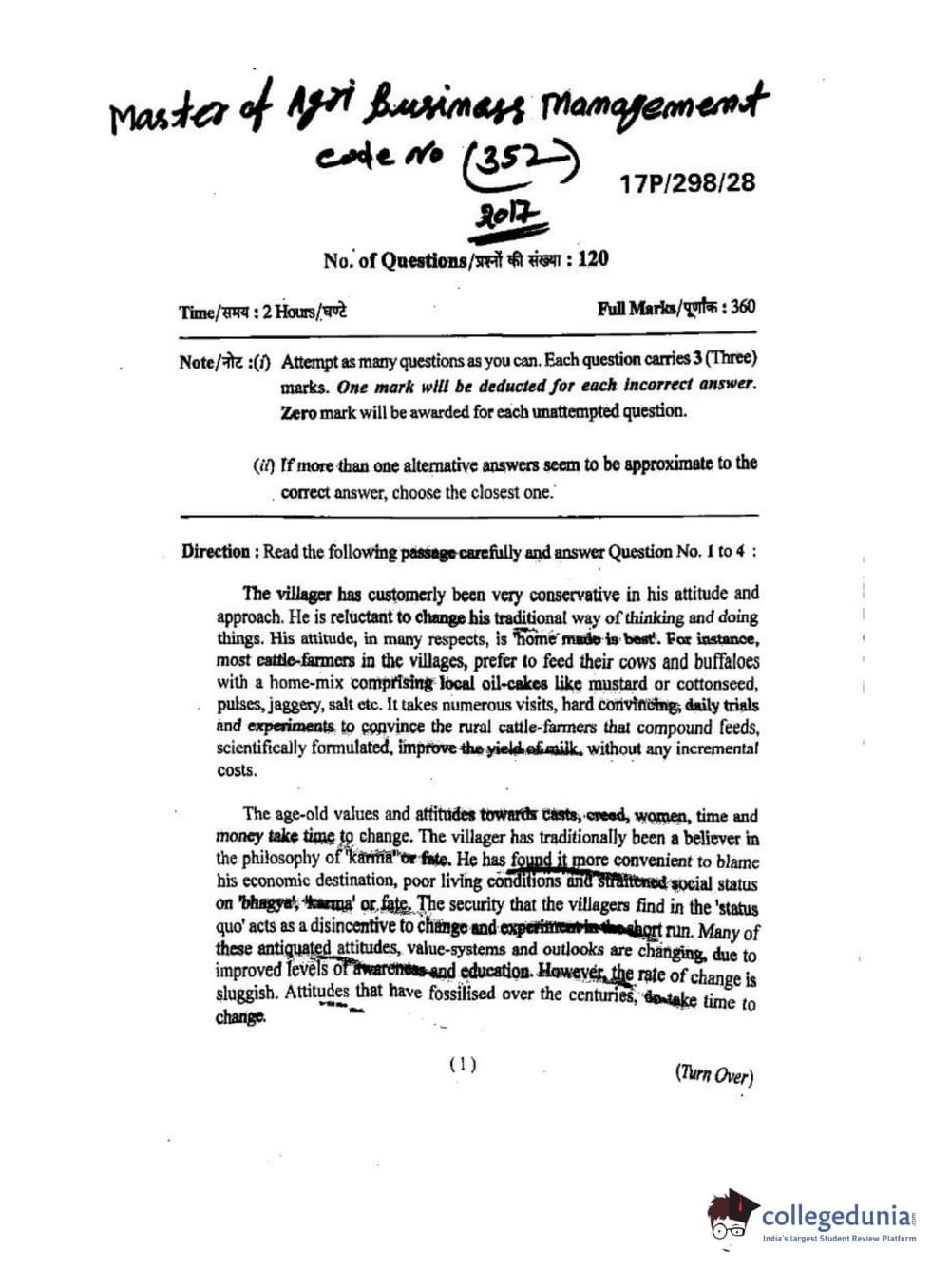 BHU PET 2017 Master of Agri Business Question paper with answer key pdf is available for download. The exam was successfully organized by Banaras Hindu University (BHU). The question paper comprised a total of 120 questions.