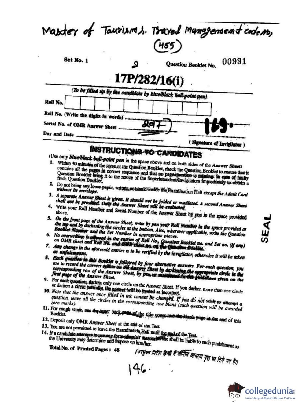 BHU PET 2017 Master of Tourism & Management Question Paper with Answer Key PDFs