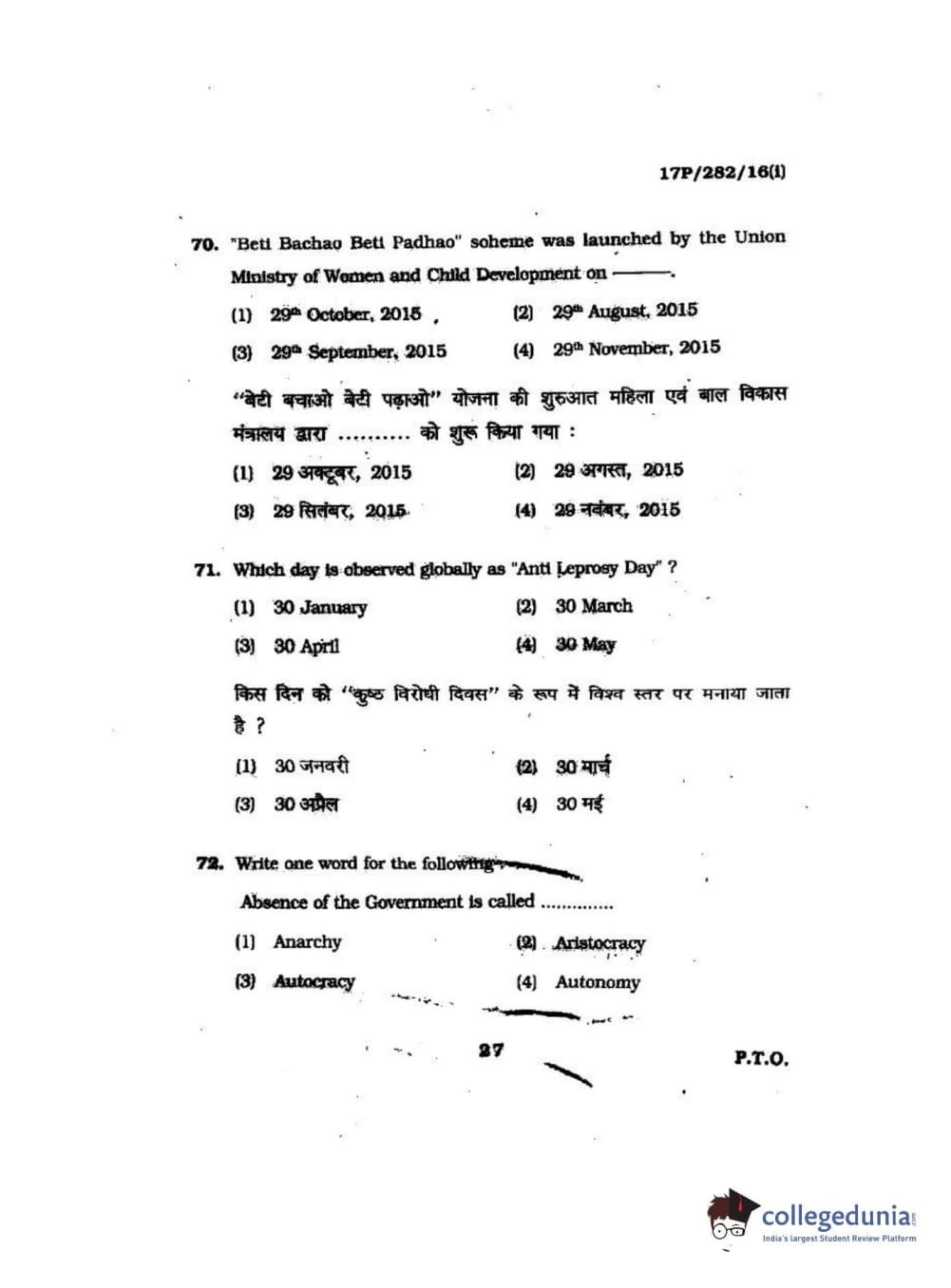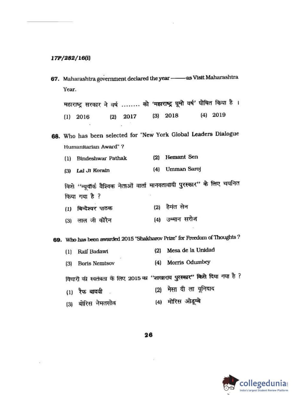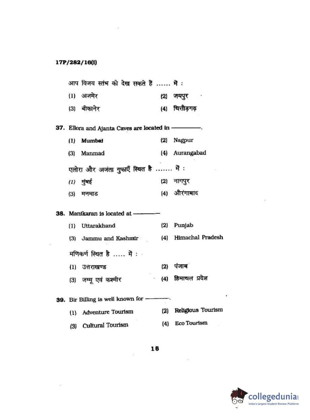 | BHU PET 2017 Master of Tourism & Management Question Paper PDF | BHU PET 2017 Master of Tourism & Management Answer Key PDF |
