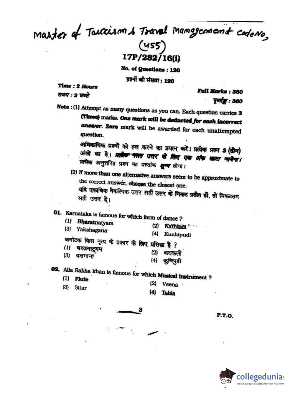 BHU PET 2017 Master of Tourism & Management Question paper with answer key pdf is available for download. The exam was successfully organized by Banaras Hindu University (BHU). The question paper comprised a total of 120 questions.