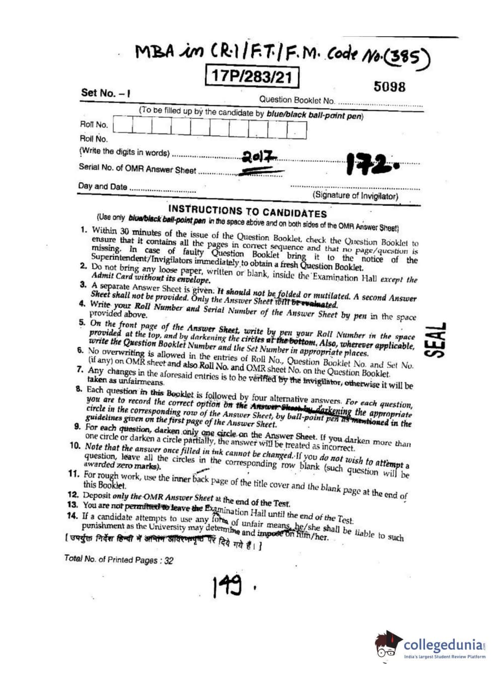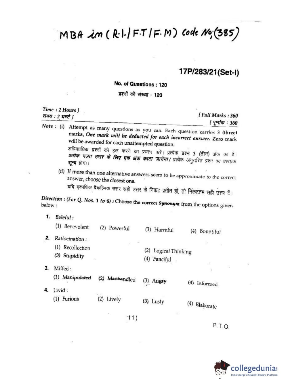 BHU PET 2017 MBA in R.I-F.T-F.M Question paper with answer key pdf is available for download. The exam was successfully organized by Banaras Hindu University (BHU). The question paper comprised a total of 120 questions.