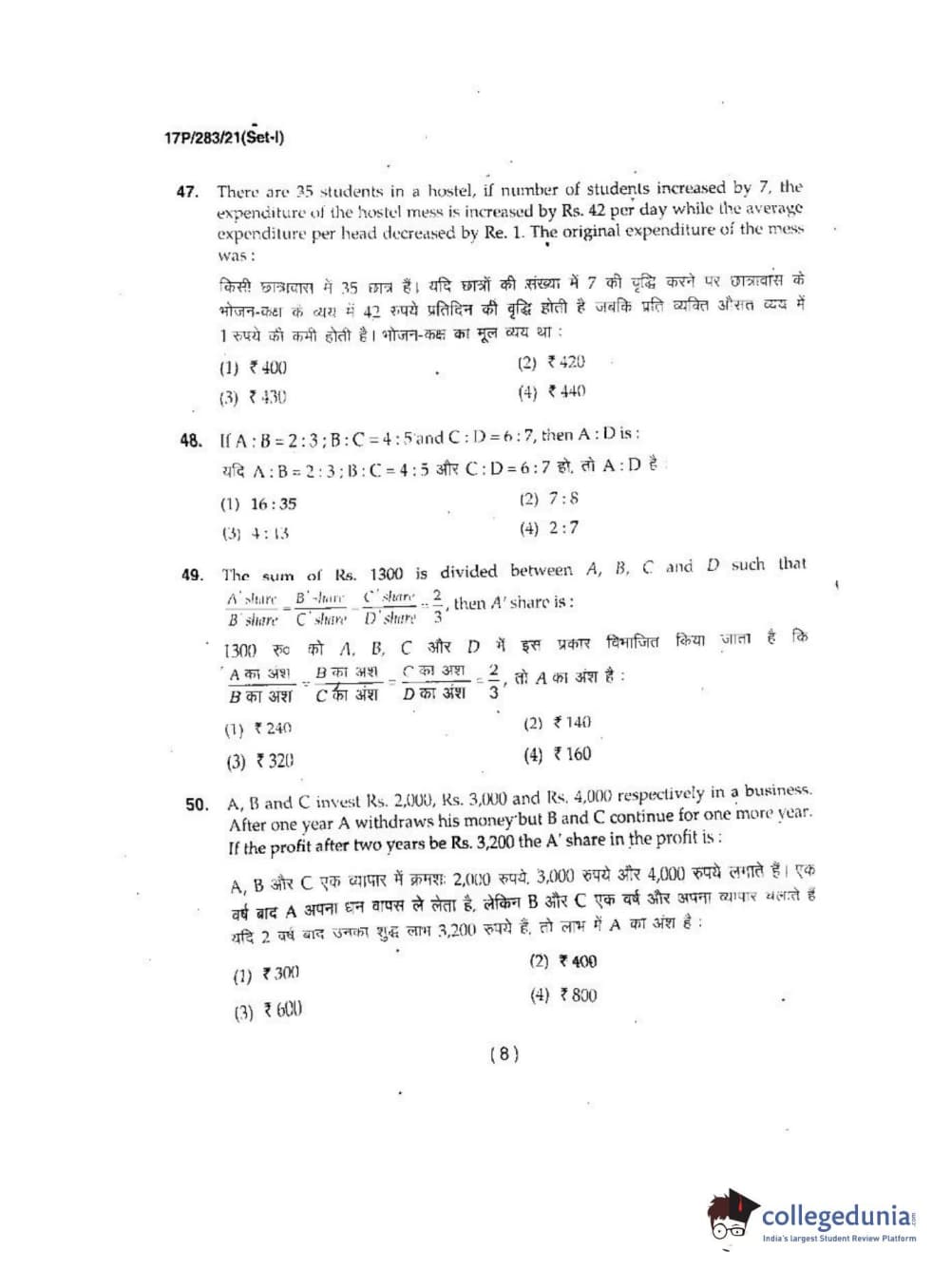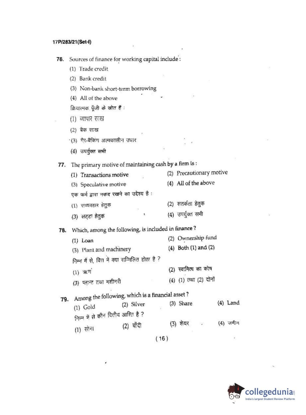 BHU PET 2017 MBA in R.I-F.T-F.M Question Paper with Answer Key PDFs