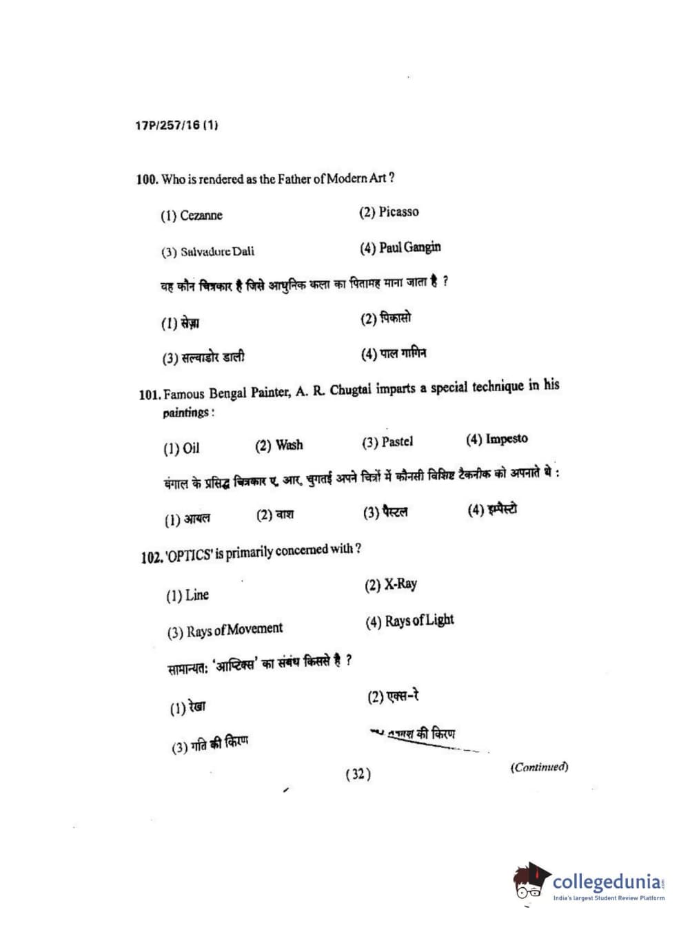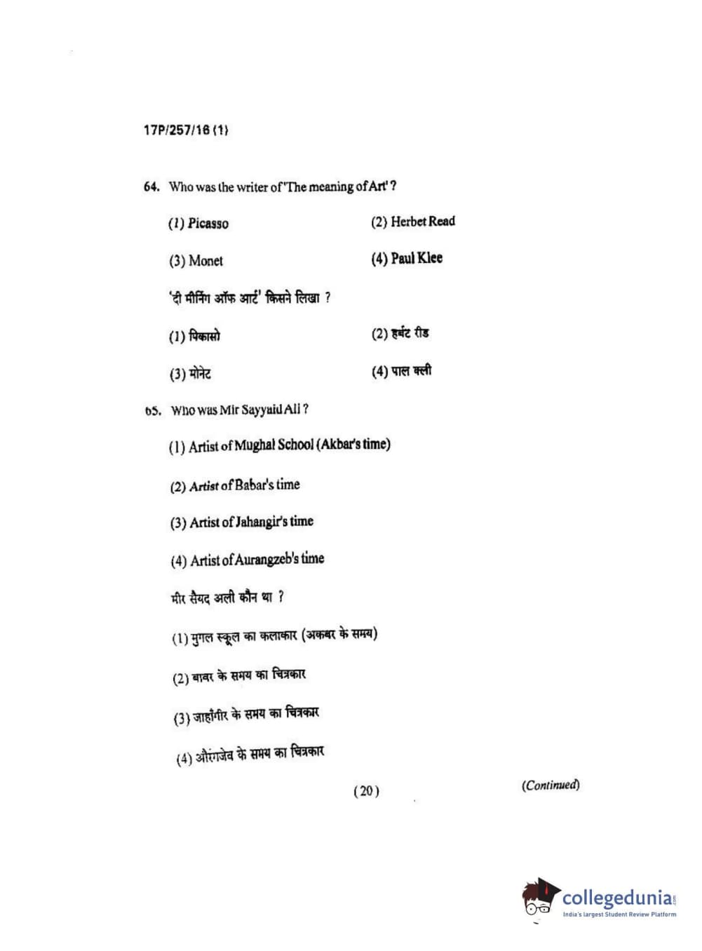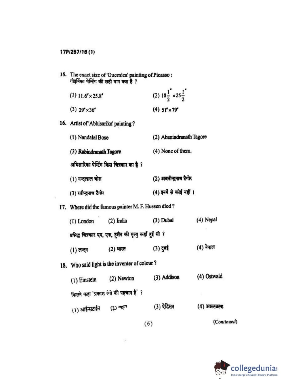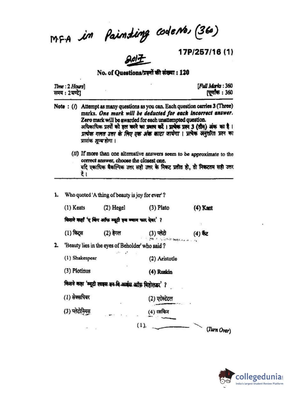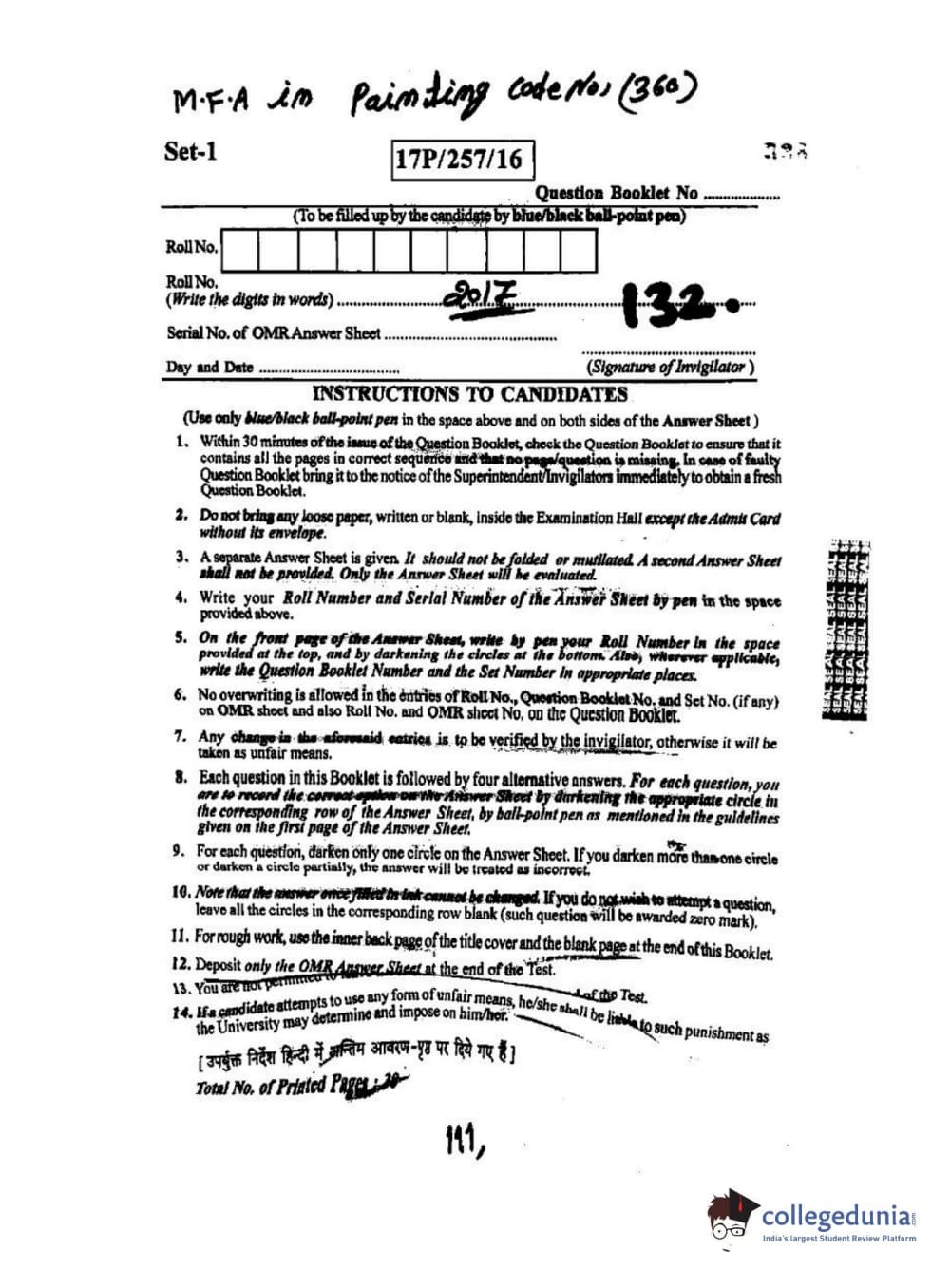 | BHU PET 2017 M.F.A in Painting Question Paper PDF | BHU PET 2017 M.F.A in Painting Answer Key PDF |