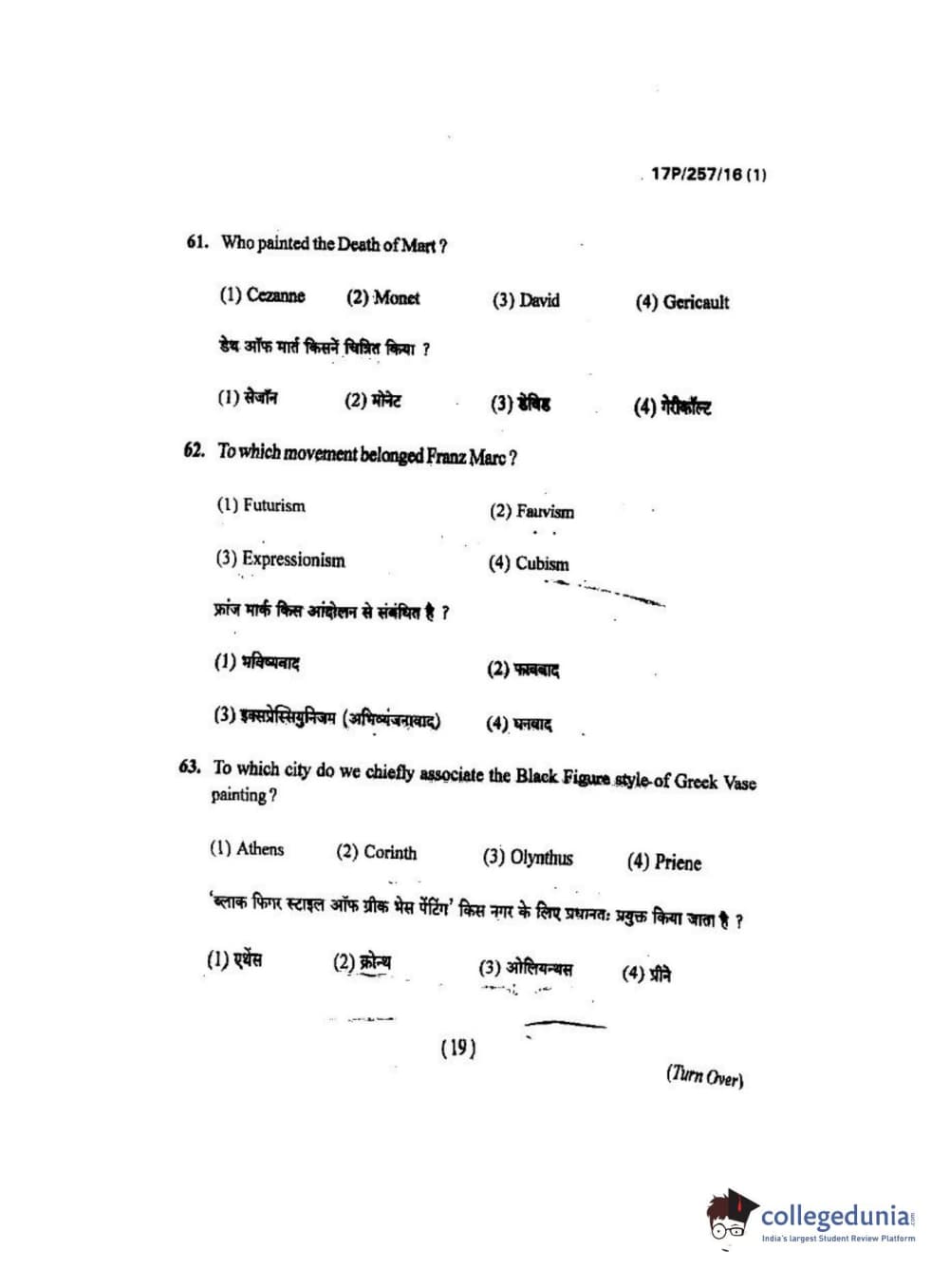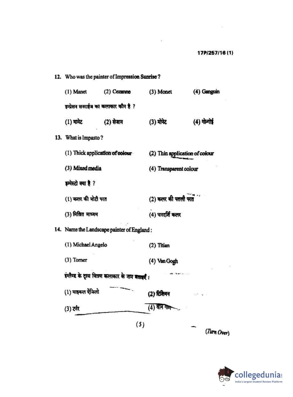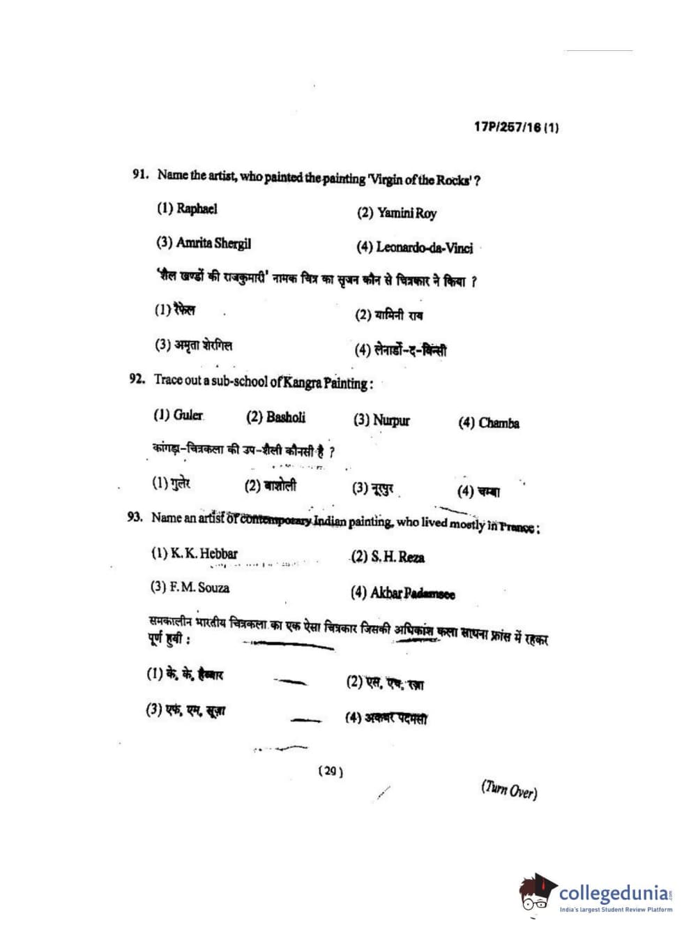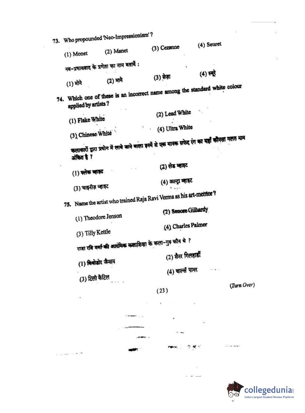 BHU PET 2017 M.F.A in Painting Question Paper with Answer Key PDFs