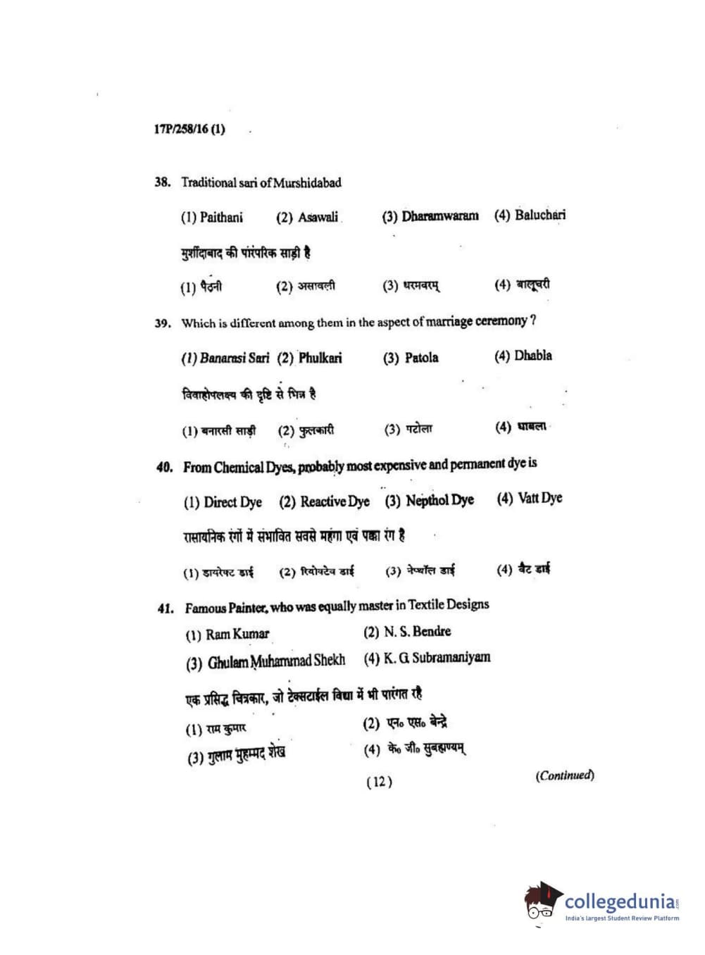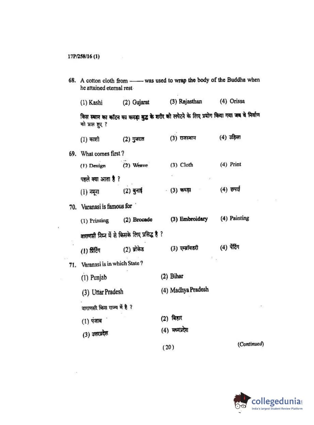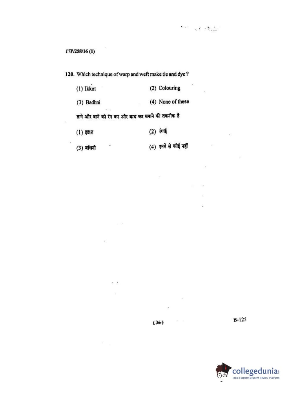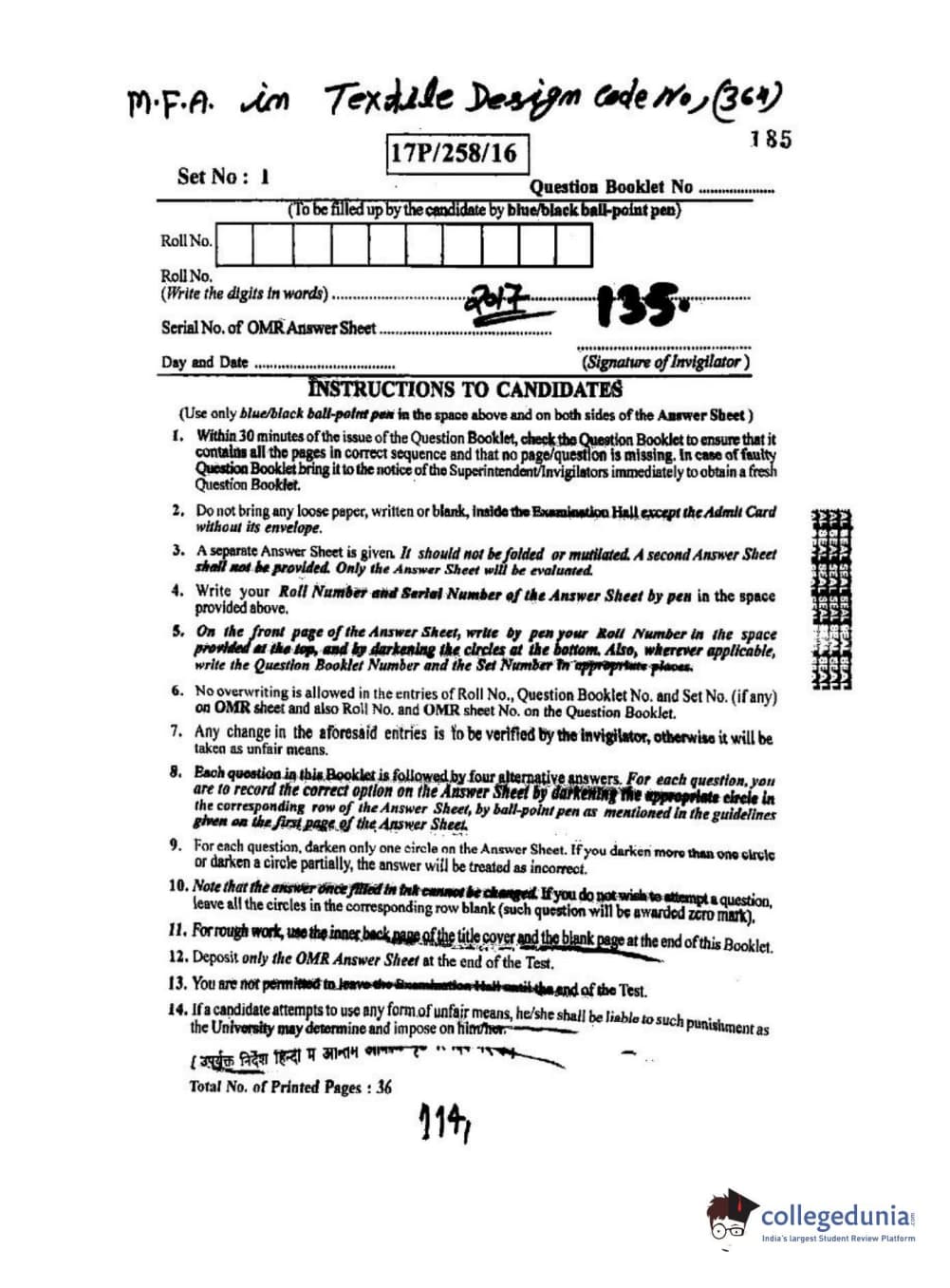 | BHU PET 2017 M.F.A in Textile Design Question Paper PDF | BHU PET 2017 M.F.A in Textile Design Answer Key PDF |