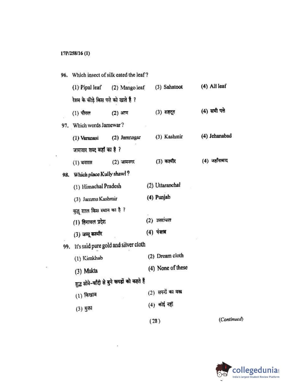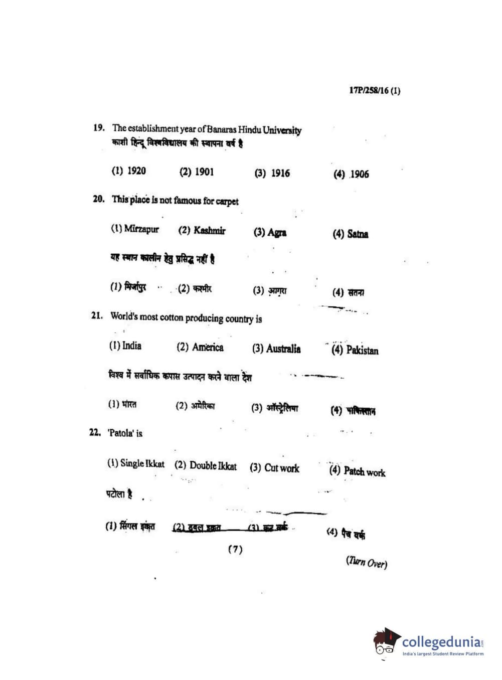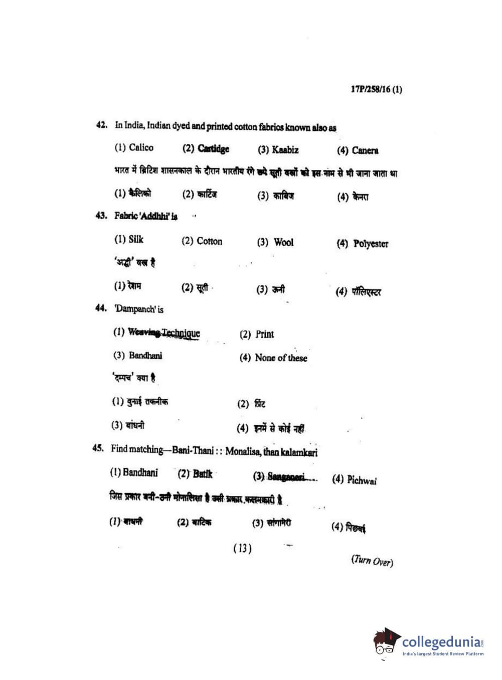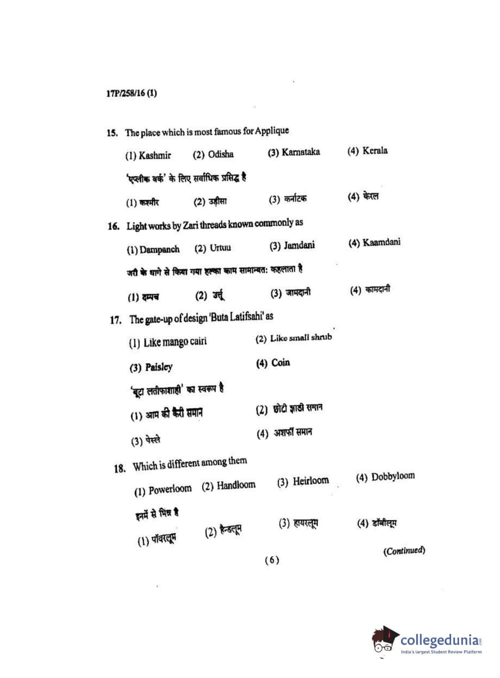 | BHU PET 2017 M.F.A in Textile Design Question Paper PDF | BHU PET 2017 M.F.A in Textile Design Answer Key PDF |