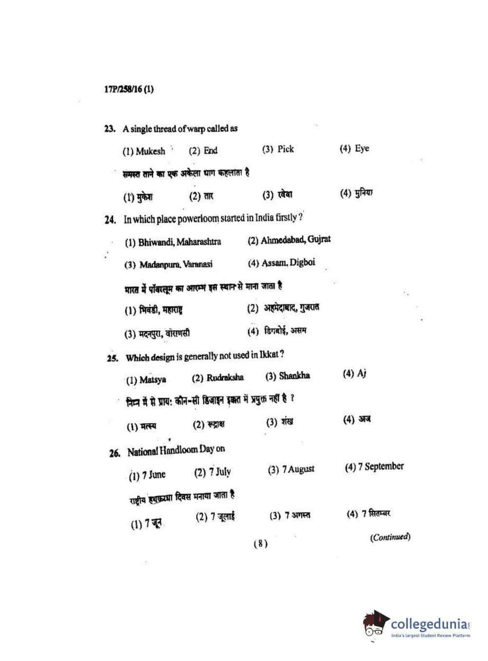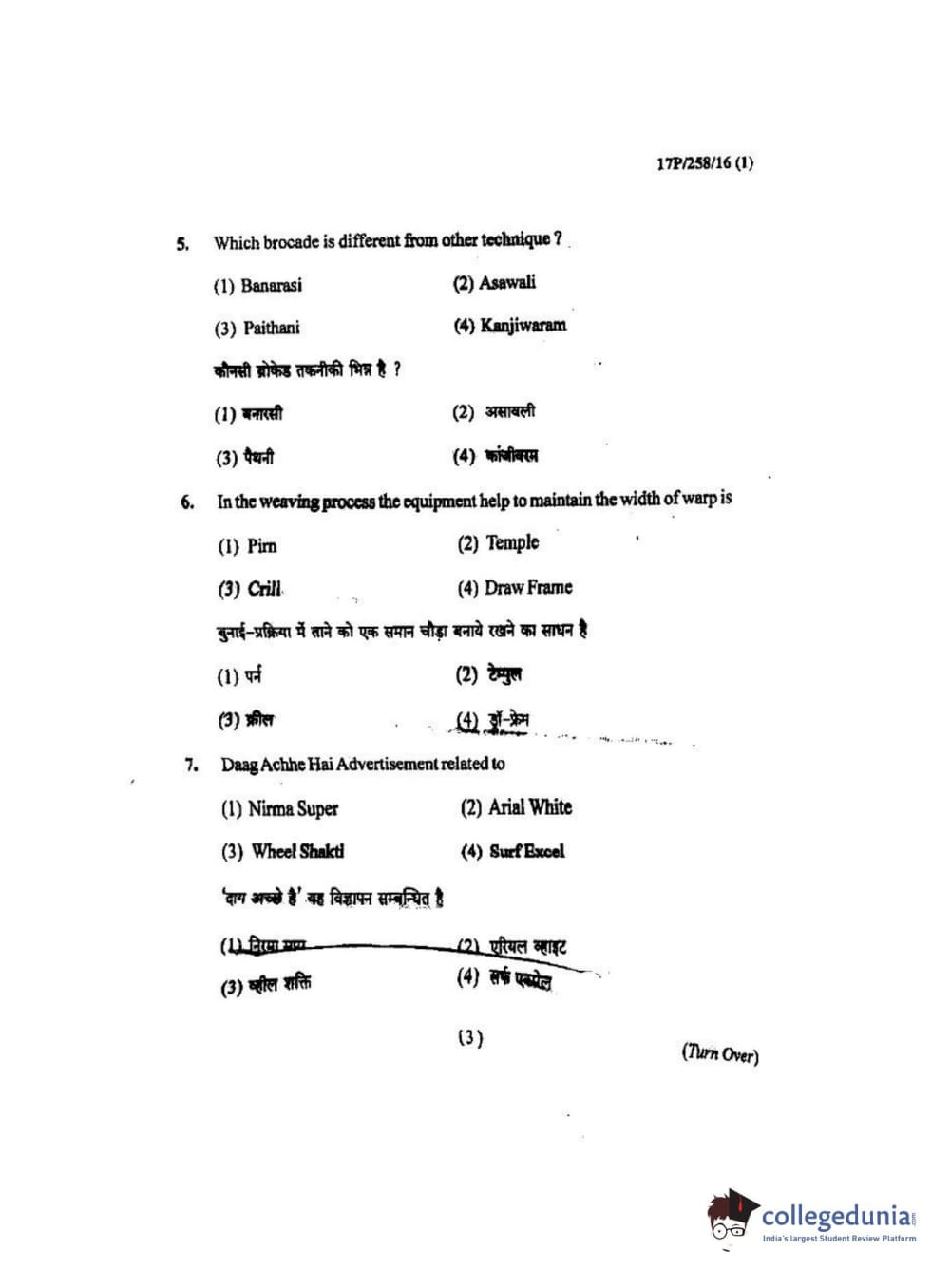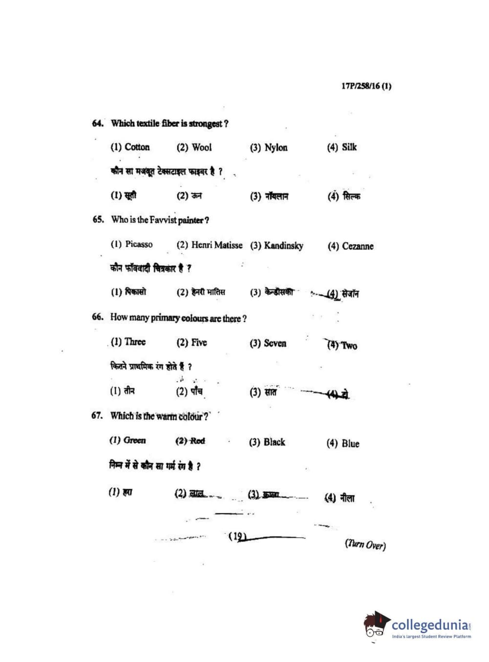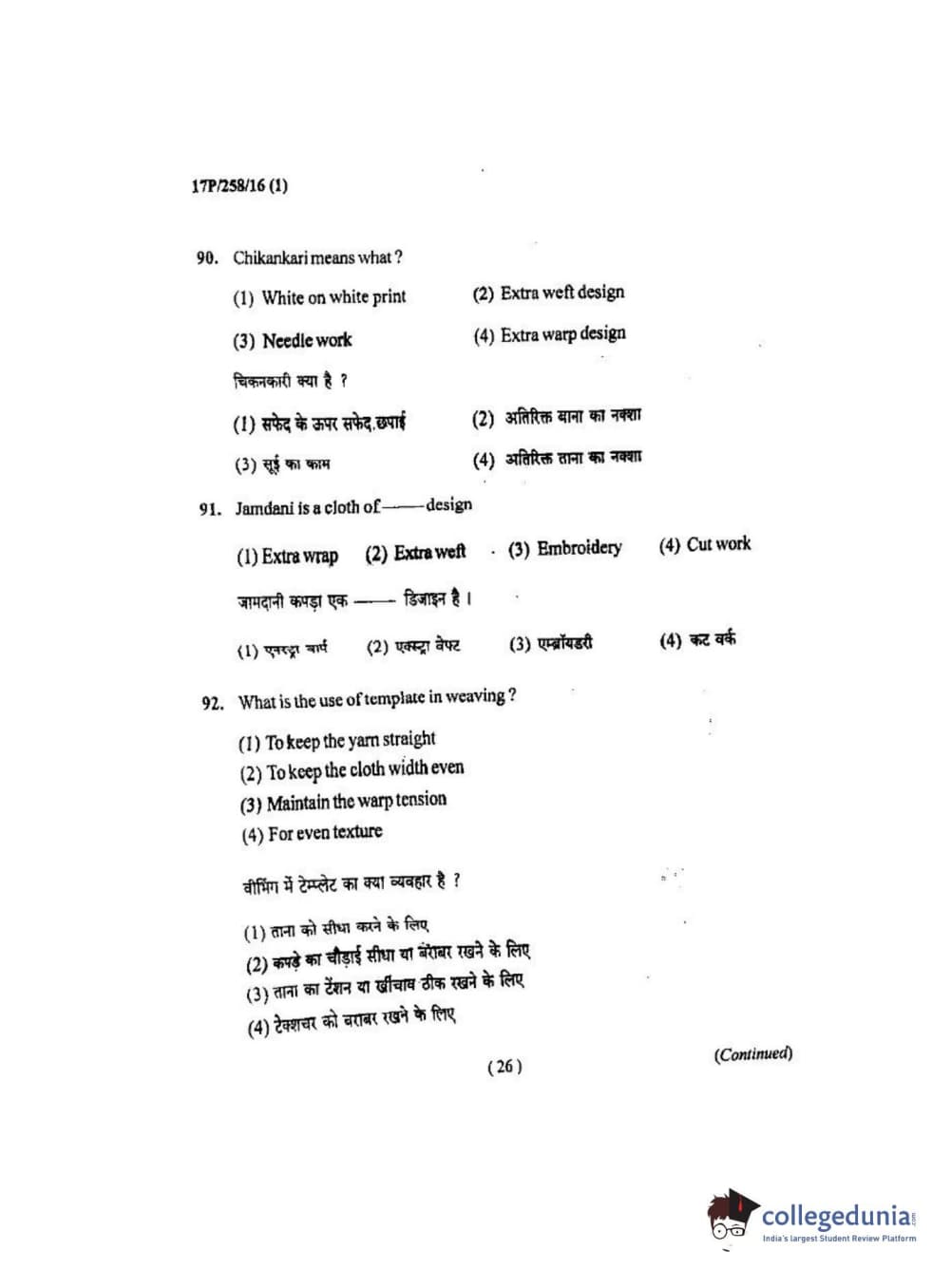 BHU PET 2017 M.F.A in Textile Design Question Paper with Answer Key PDFs