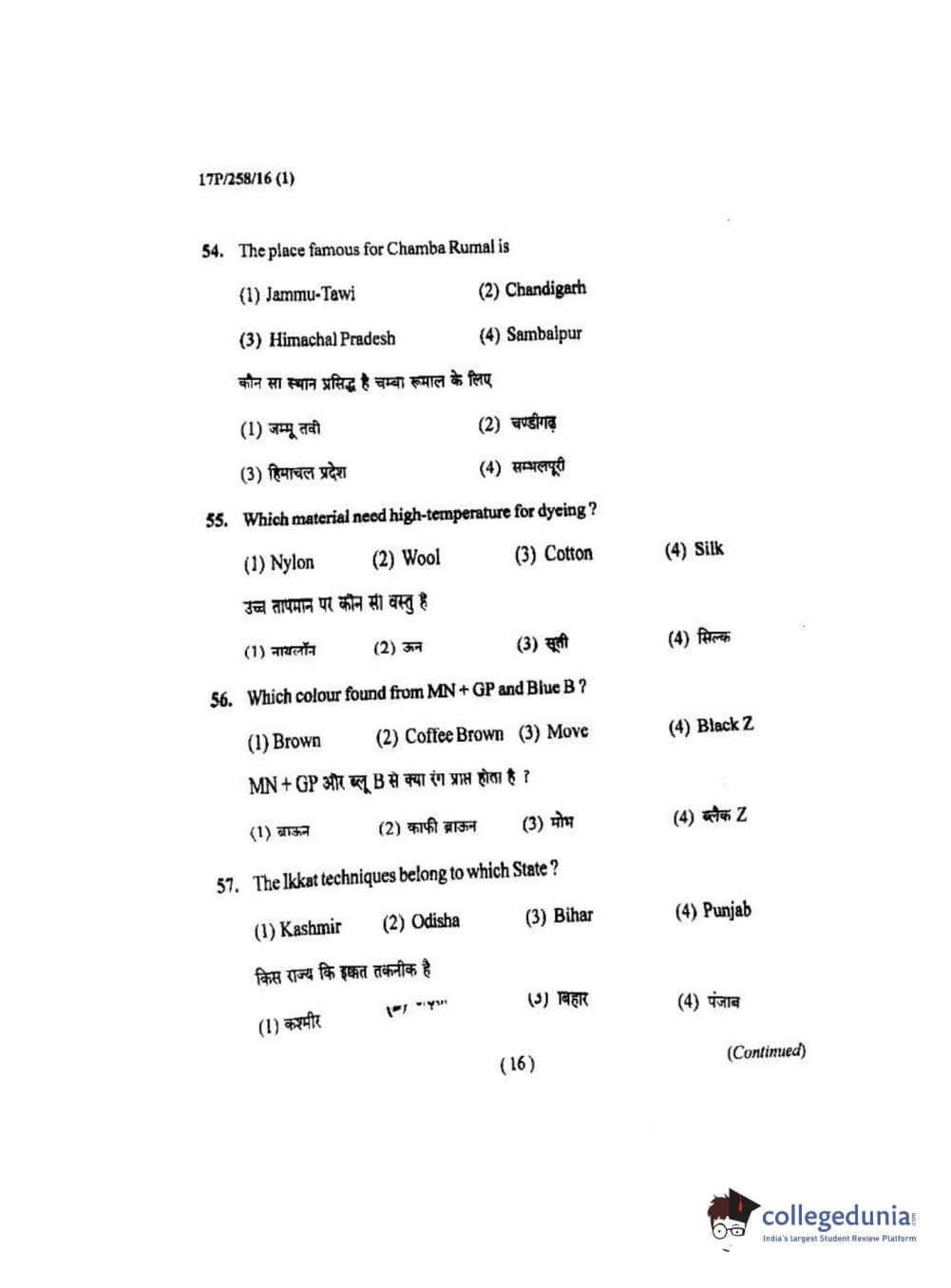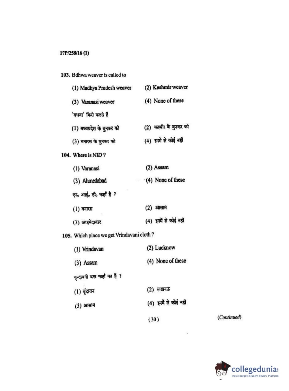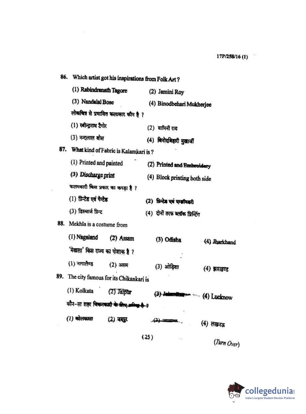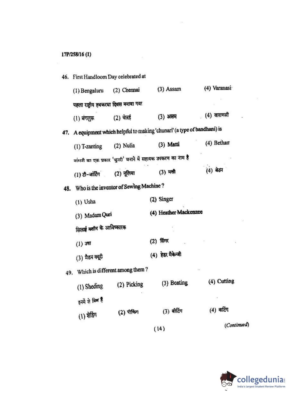 BHU PET 2017 M.F.A in Textile Design Question Paper with Answer Key PDFs