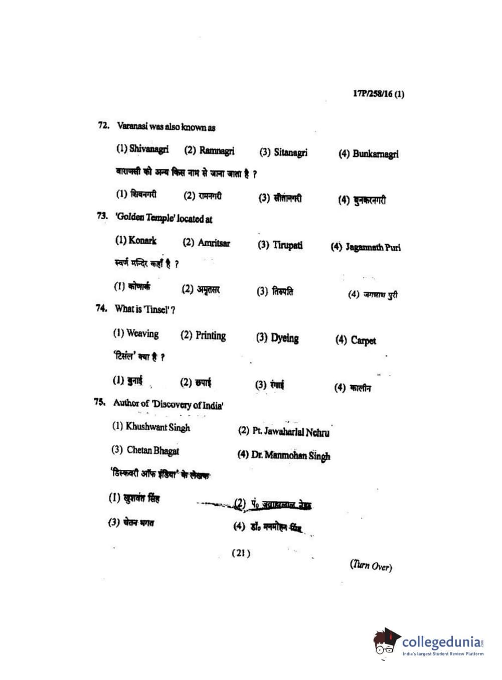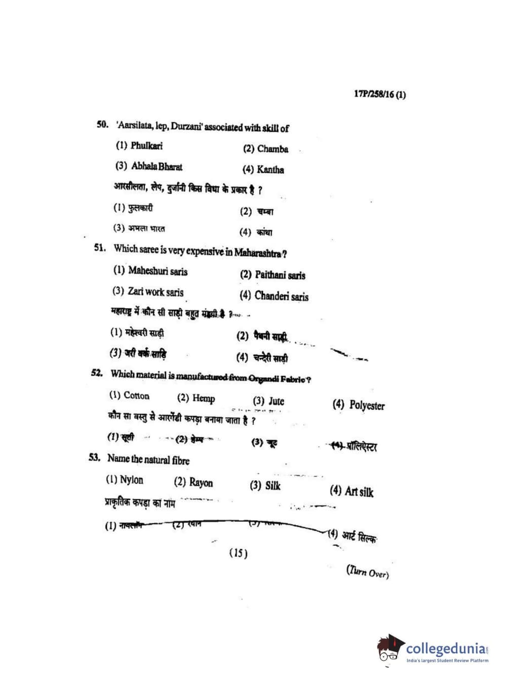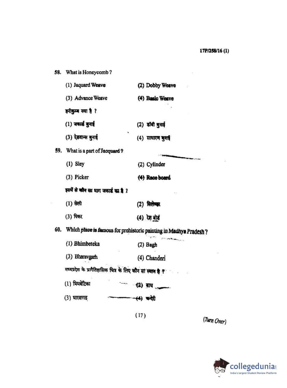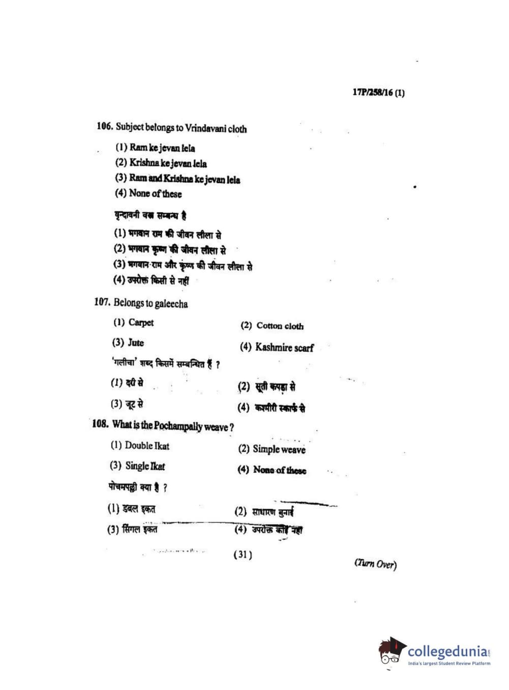 BHU PET 2017 M.F.A in Textile Design Question Paper with Answer Key PDFs
