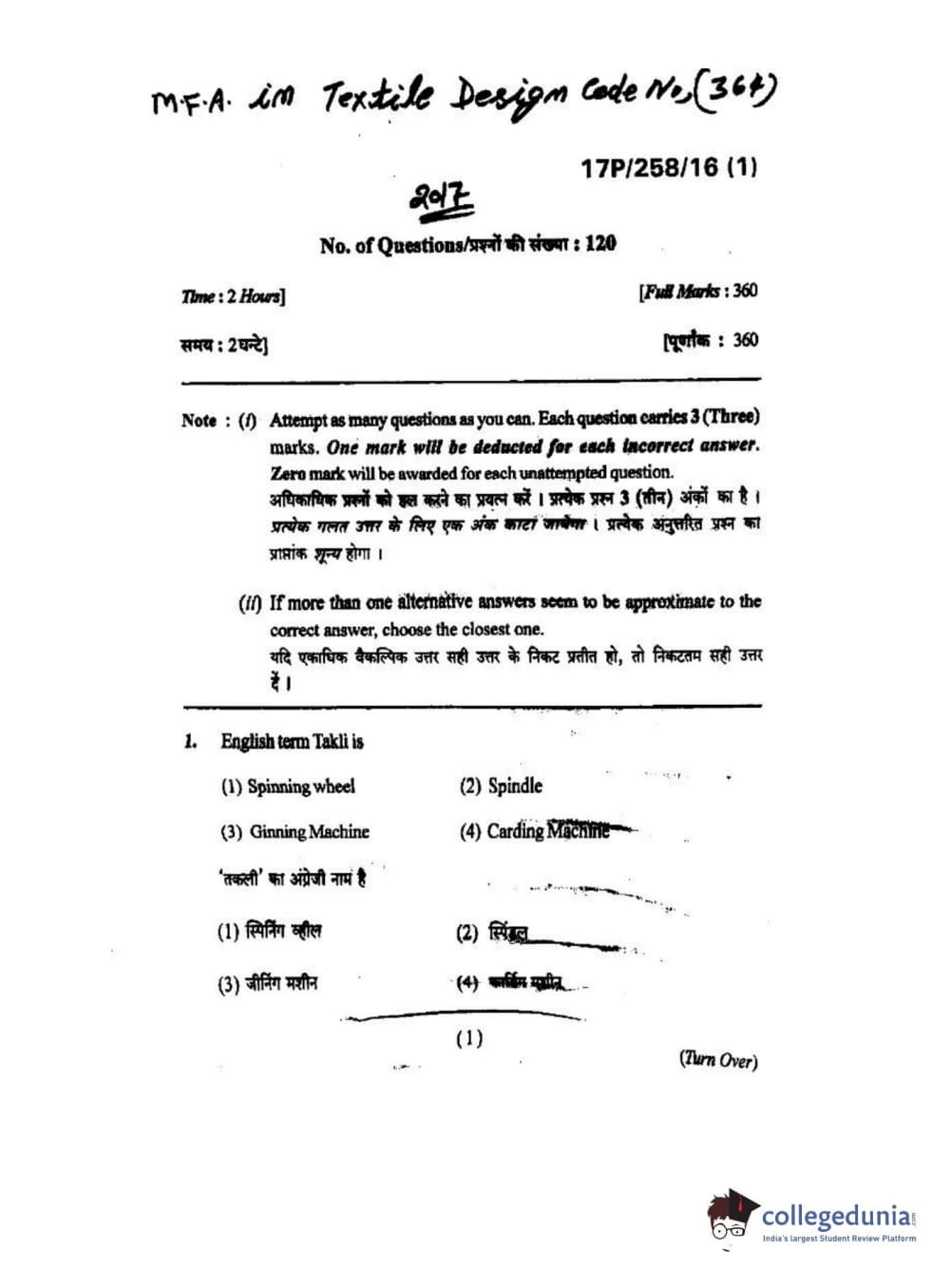 BHU PET 2017 M.F.A in Textile Design Question paper with answer key pdf is available for download. The exam was successfully organized by Banaras Hindu University (BHU). The question paper comprised a total of 120 questions.