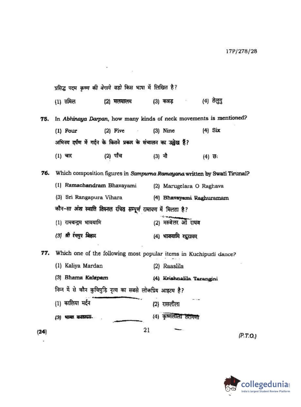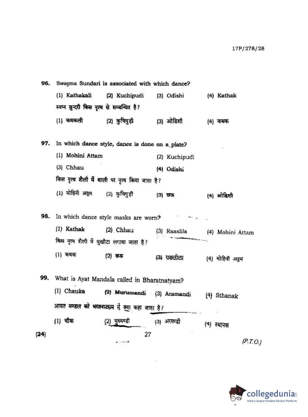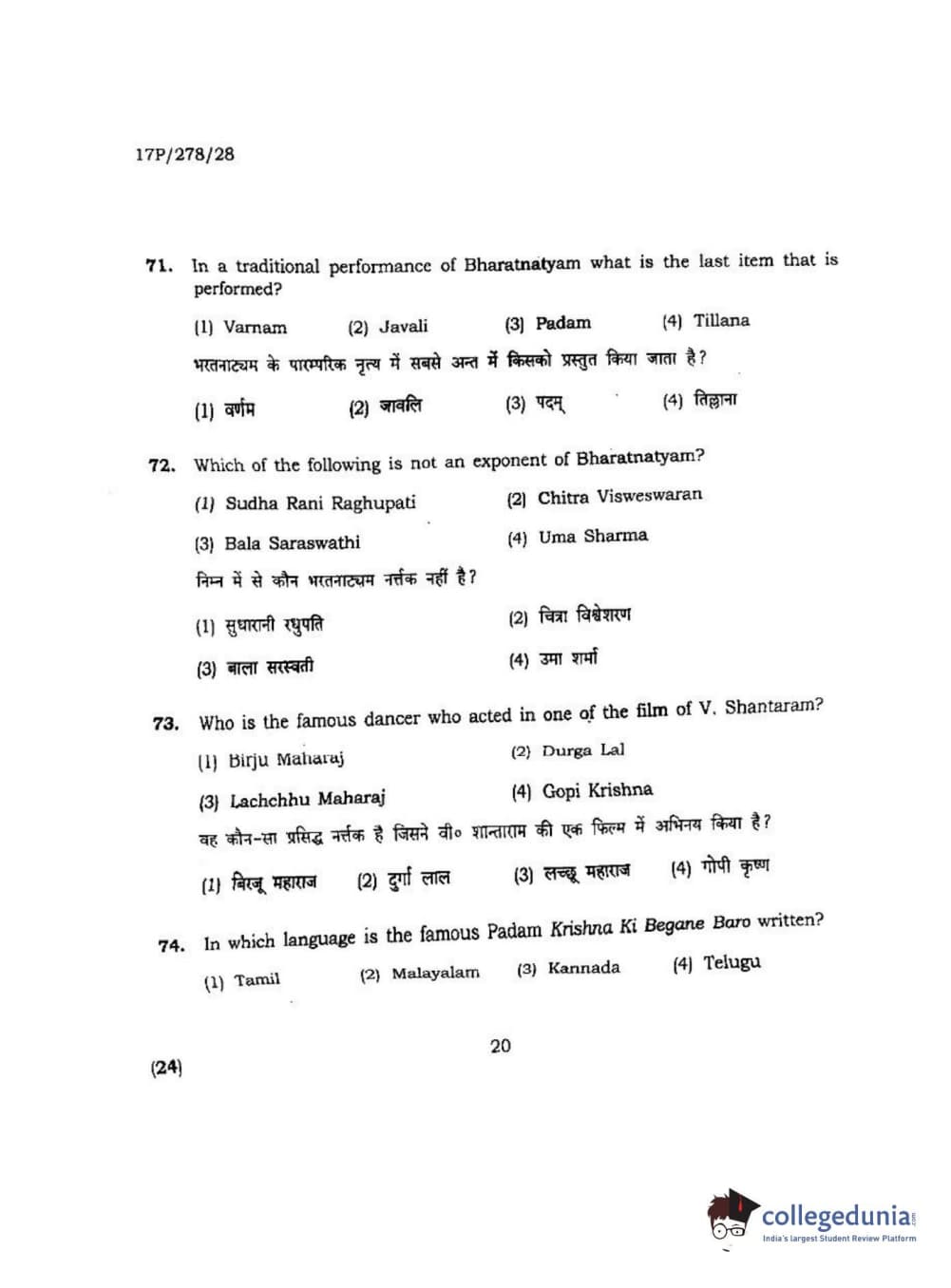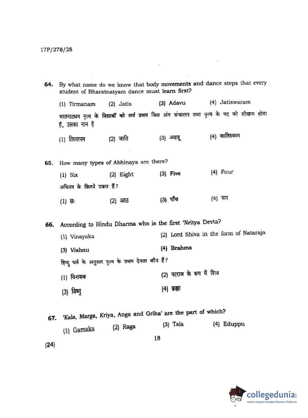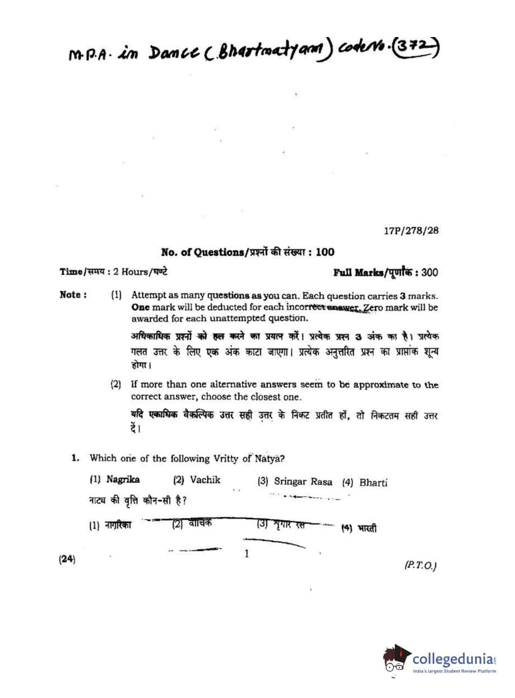 BHU PET 2017 M.P.A Dance Bharatnatyam Question paper with answer key pdf is available for download. The exam was successfully organized by Banaras Hindu University (BHU). The question paper comprised a total of 100 questions.