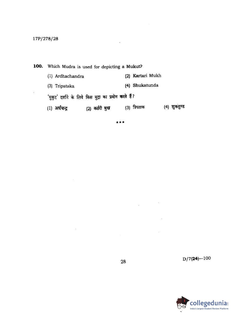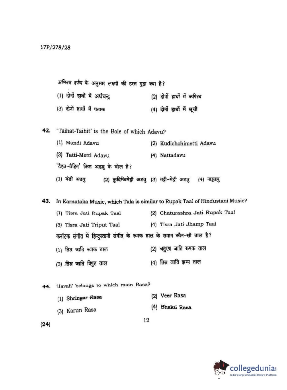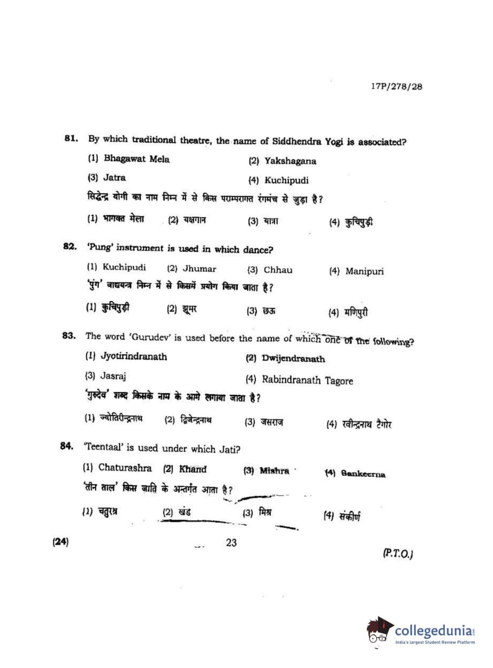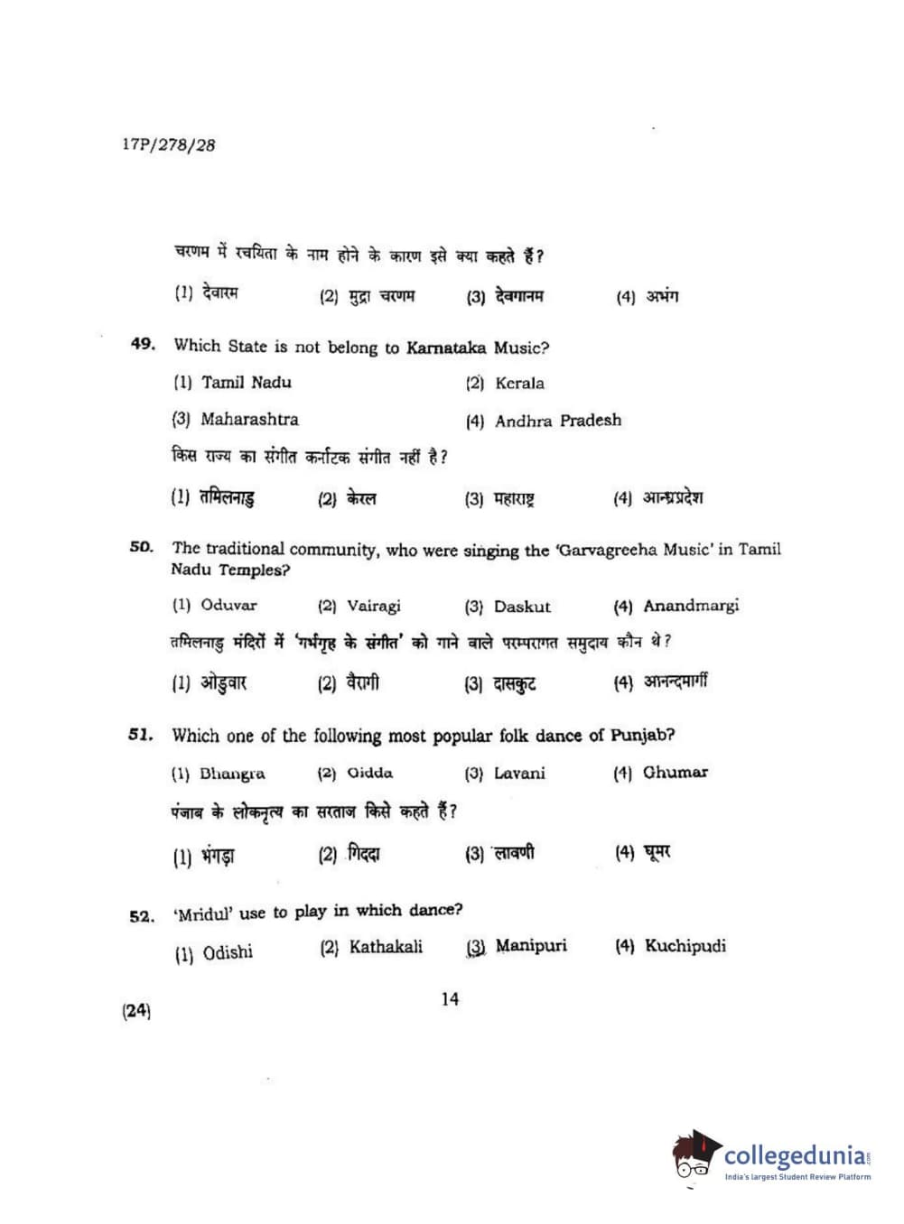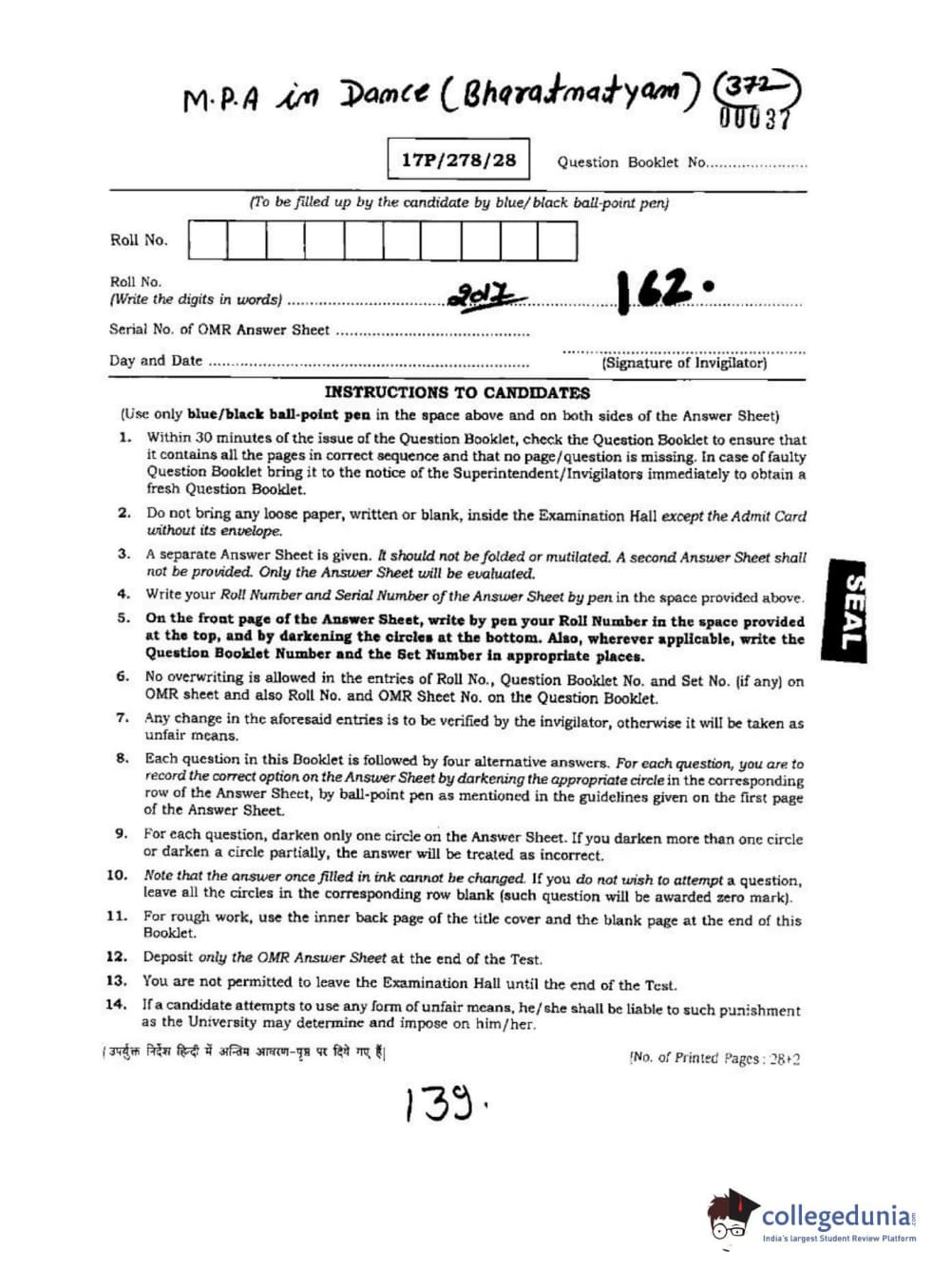 BHU PET 2017 M.P.A Dance Bharatnatyam Question paper with answer key pdf is available for download. The exam was successfully organized by Banaras Hindu University (BHU). The question paper comprised a total of 100 questions.