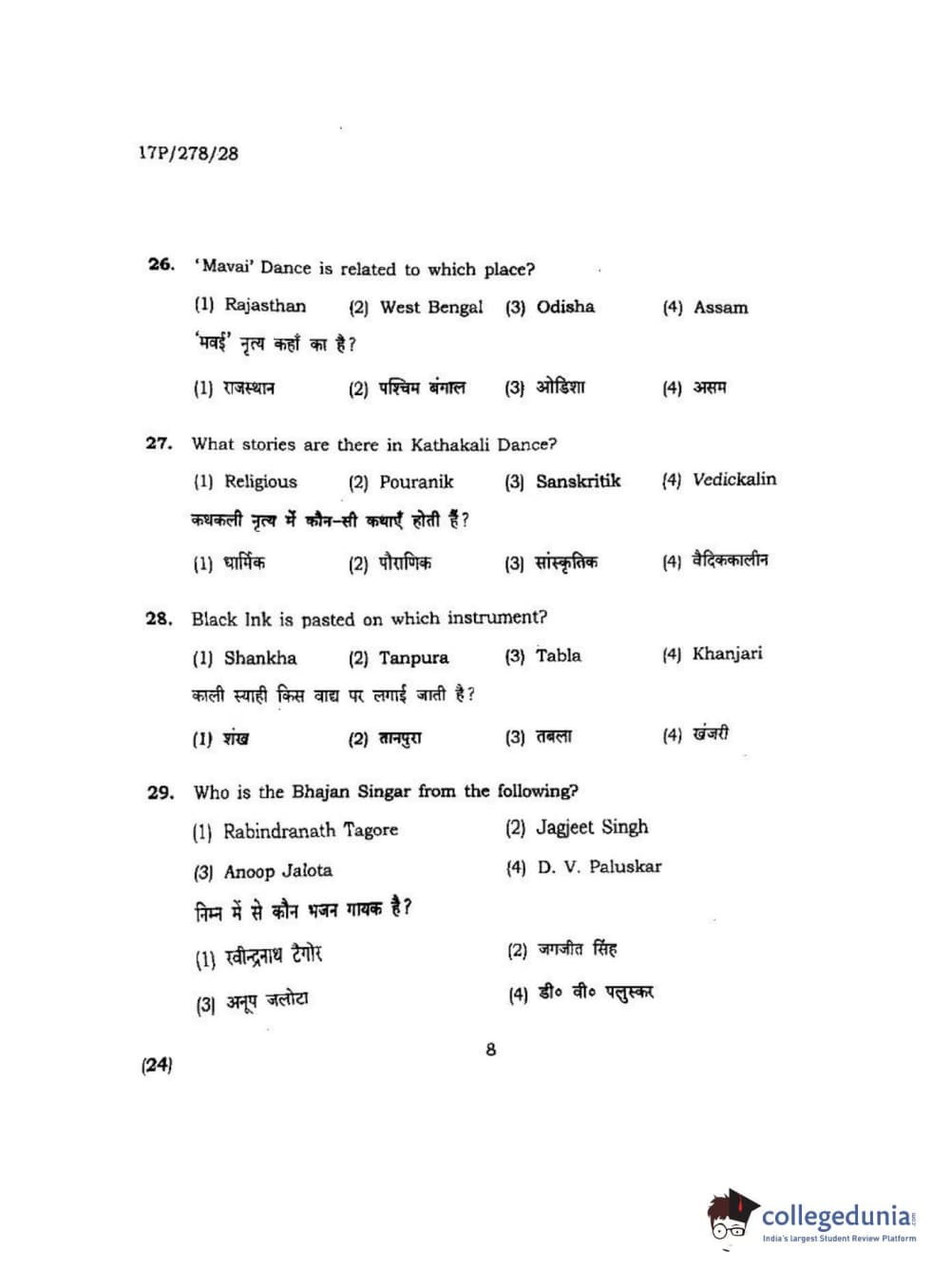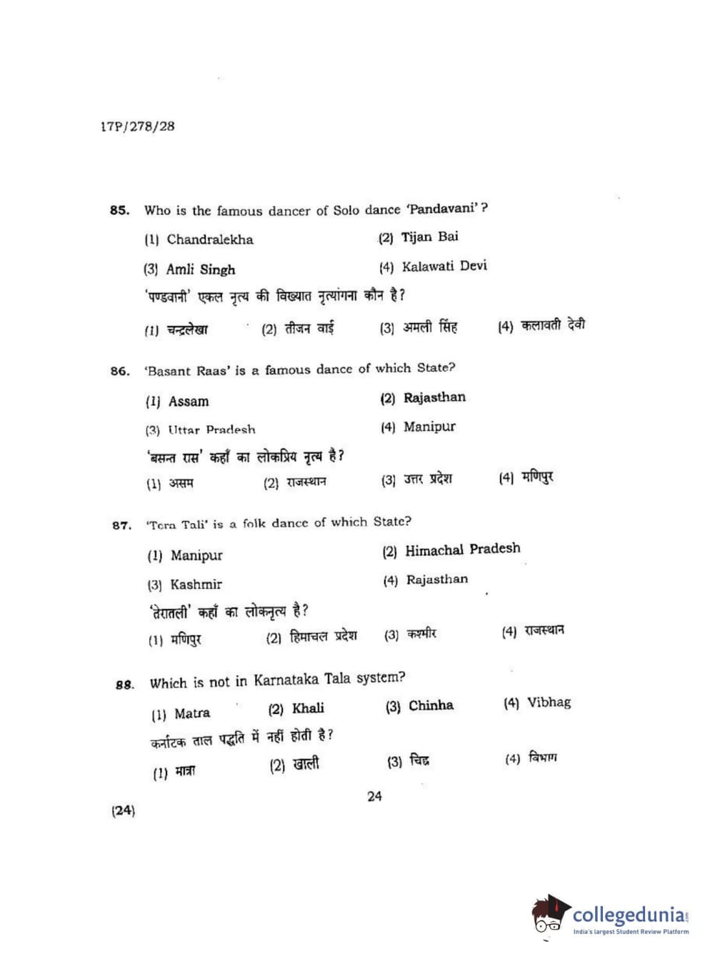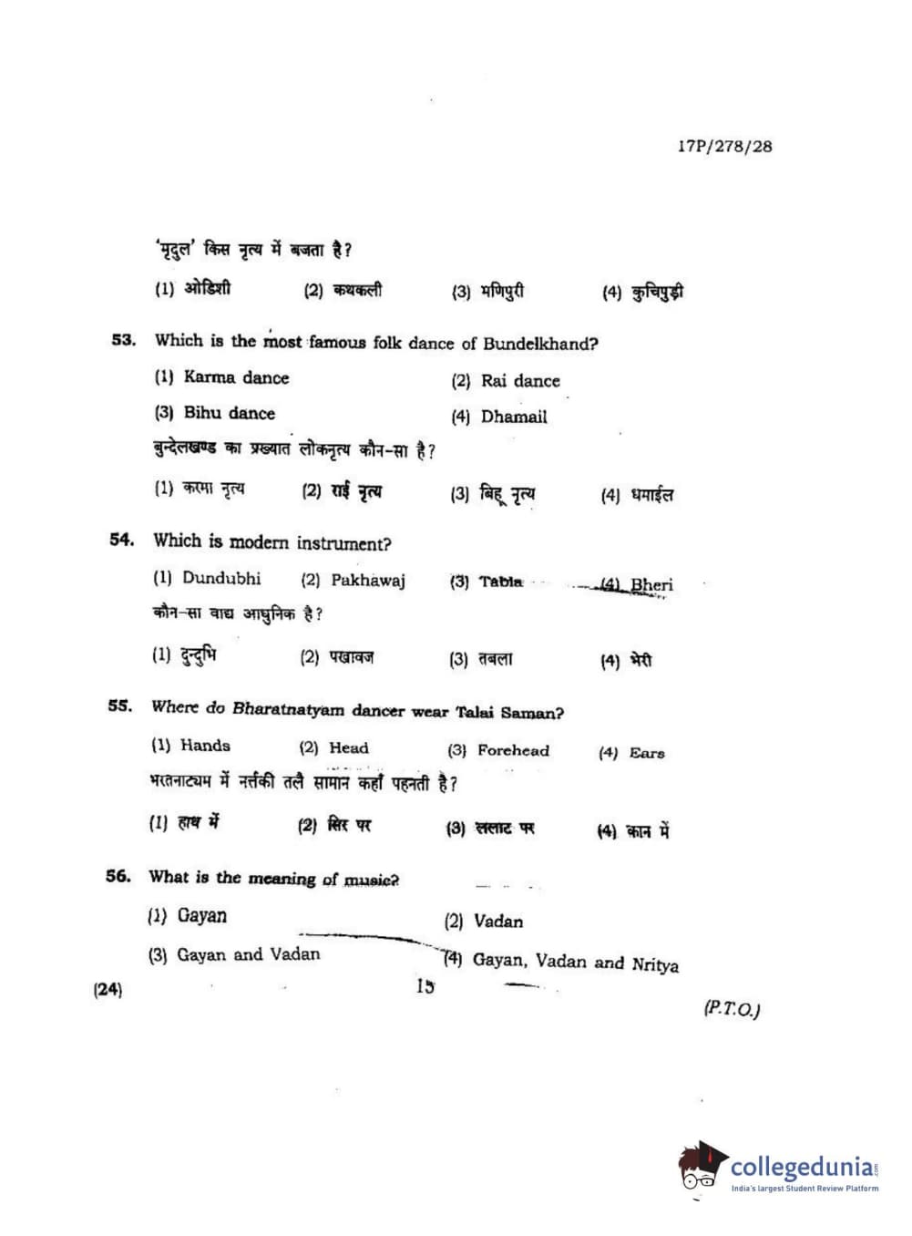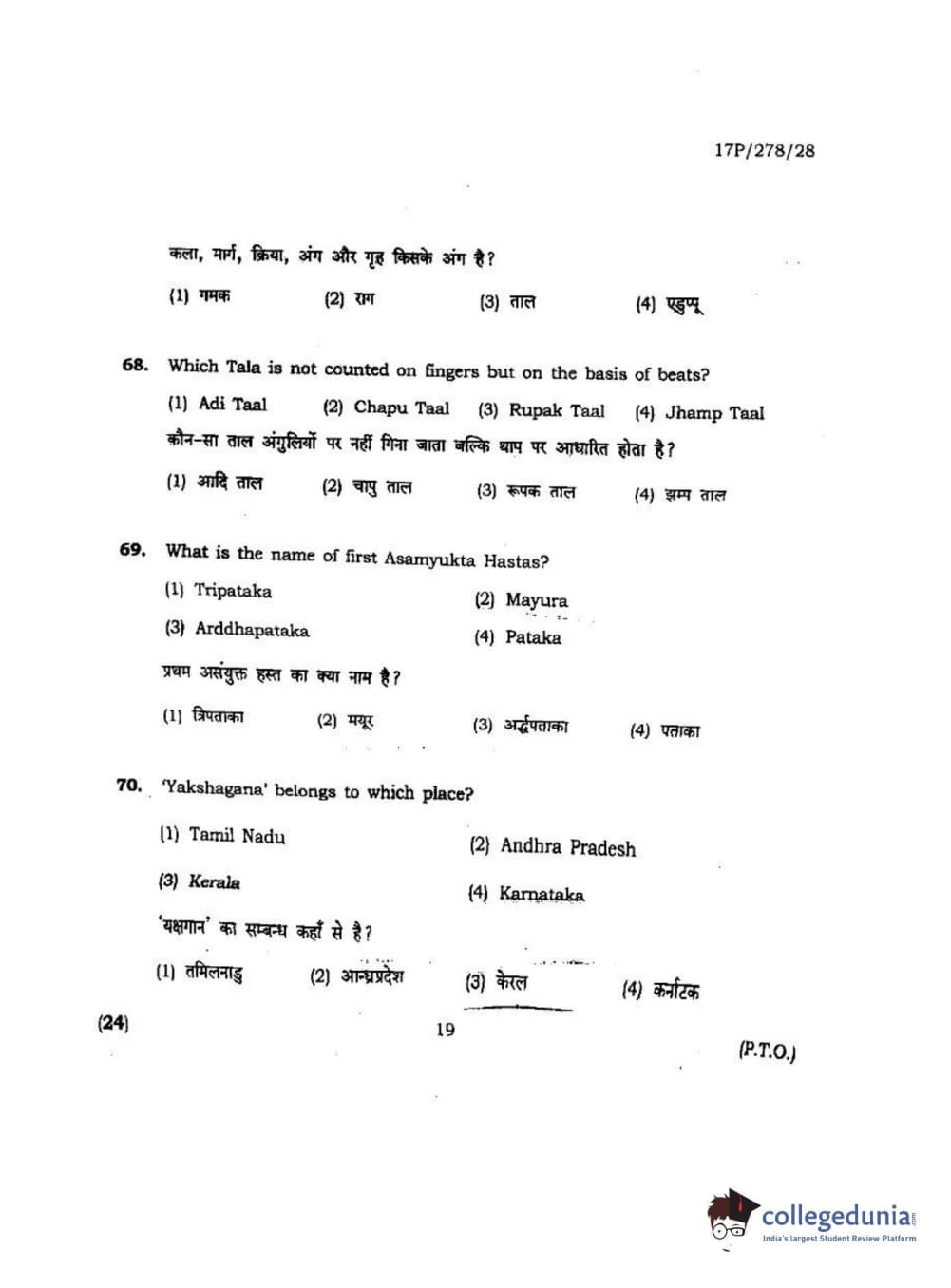 BHU PET 2017 M.P.A Dance Bharatnatyam Question Paper with Answer Key PDFs