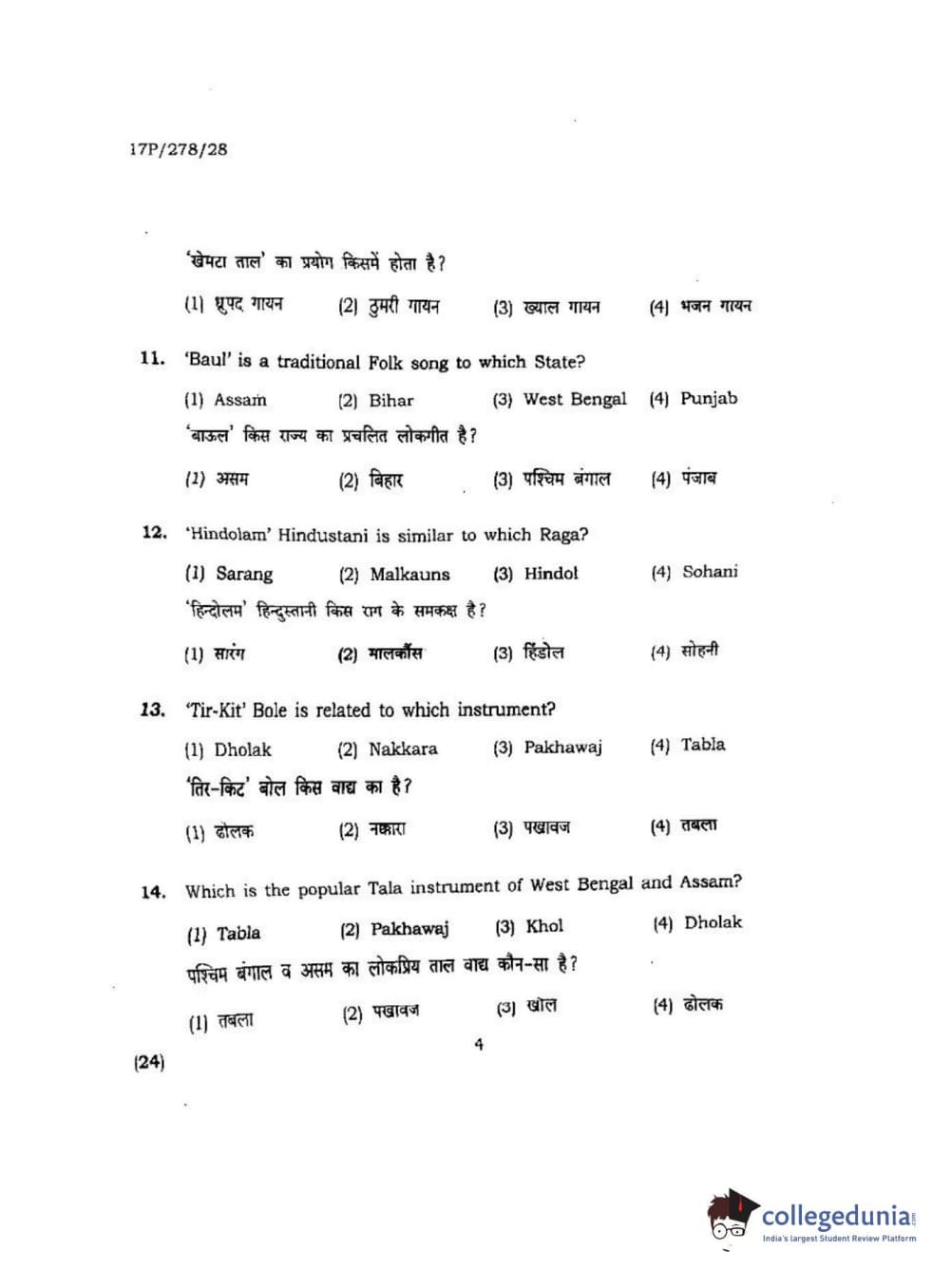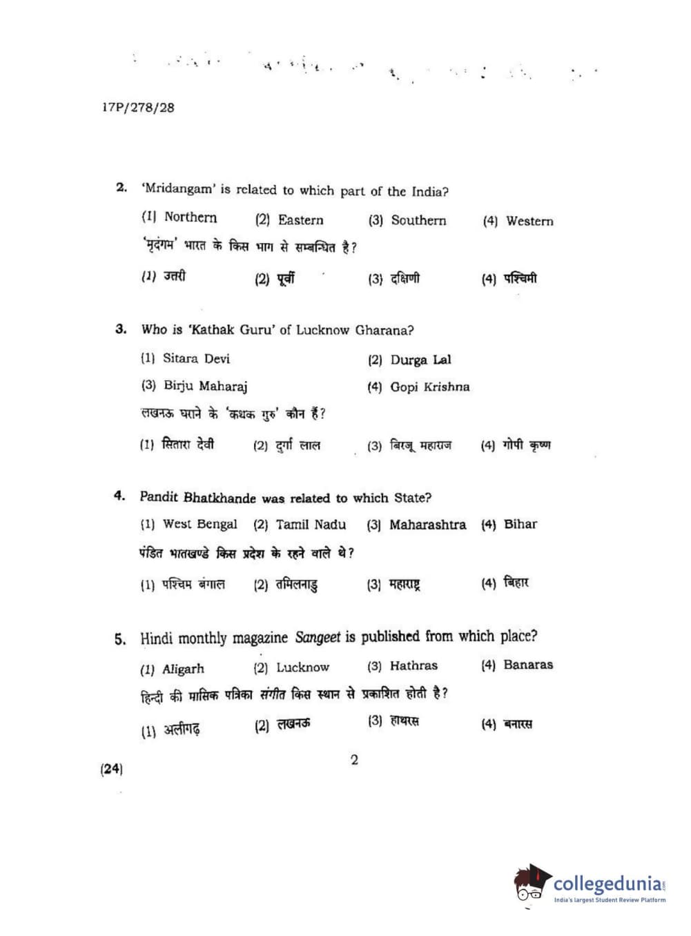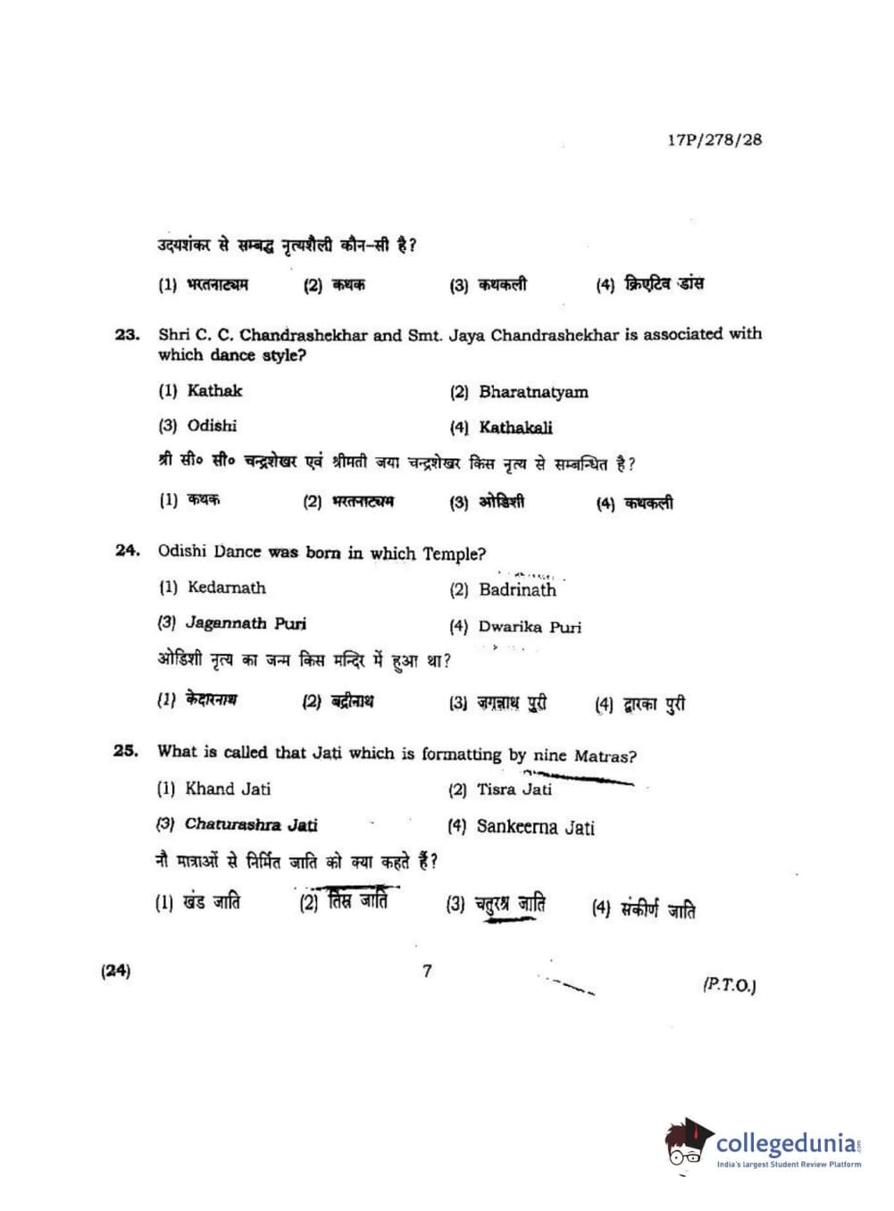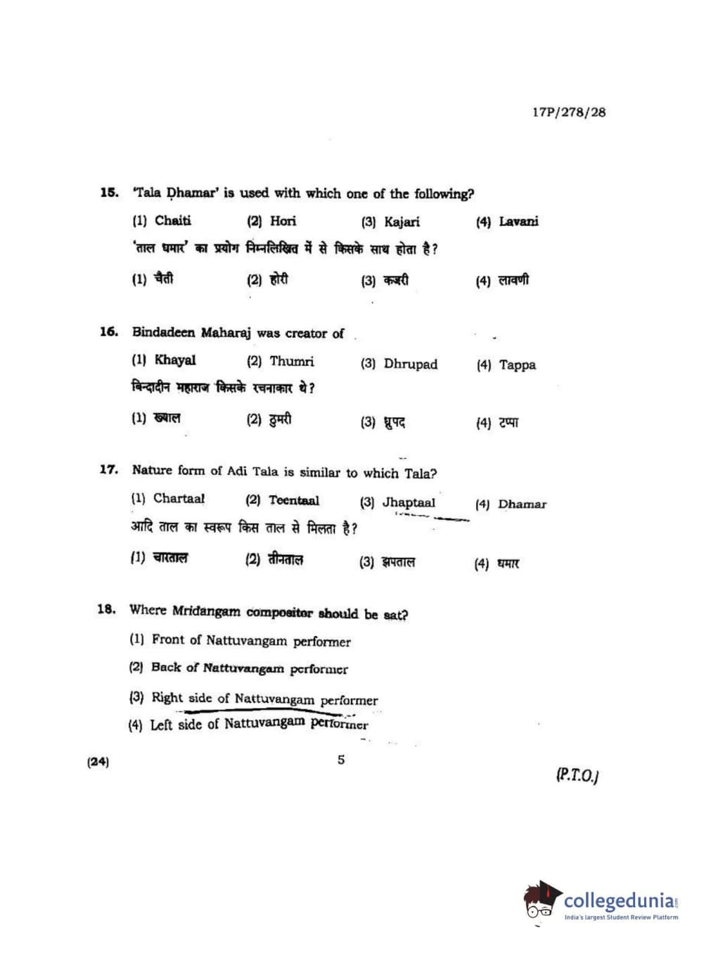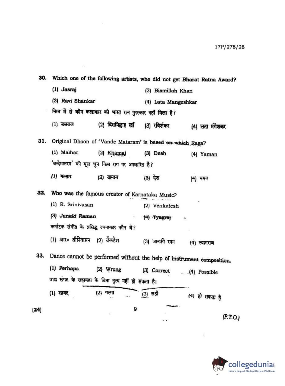 BHU PET 2017 M.P.A Dance Bharatnatyam Question Paper with Answer Key PDFs