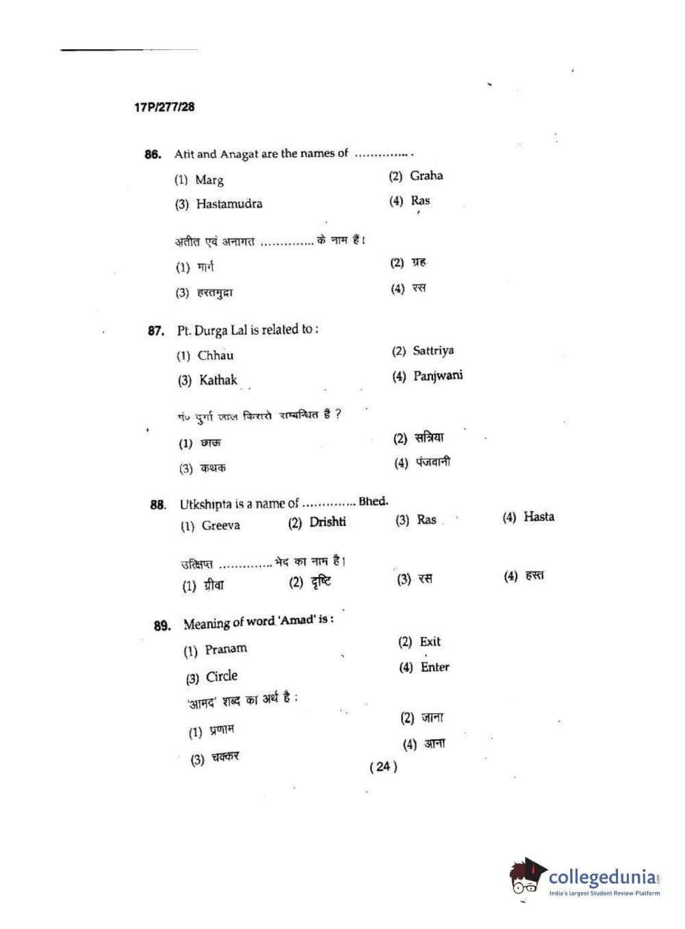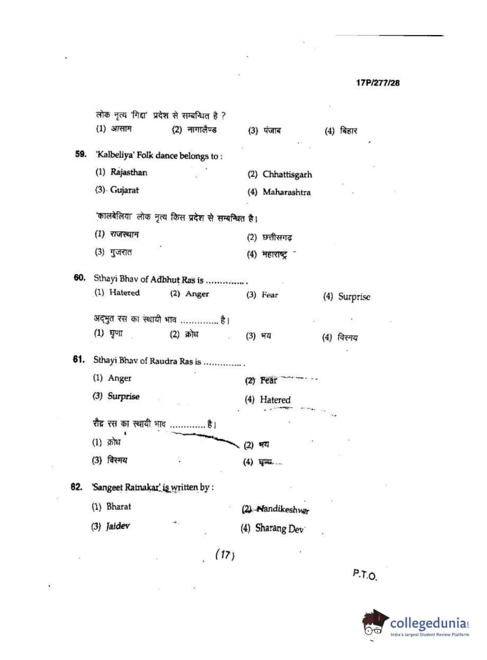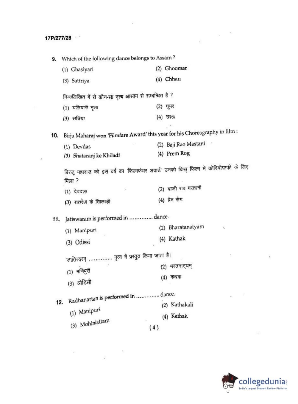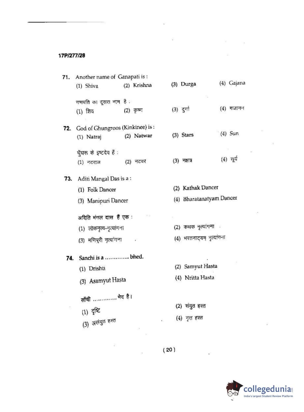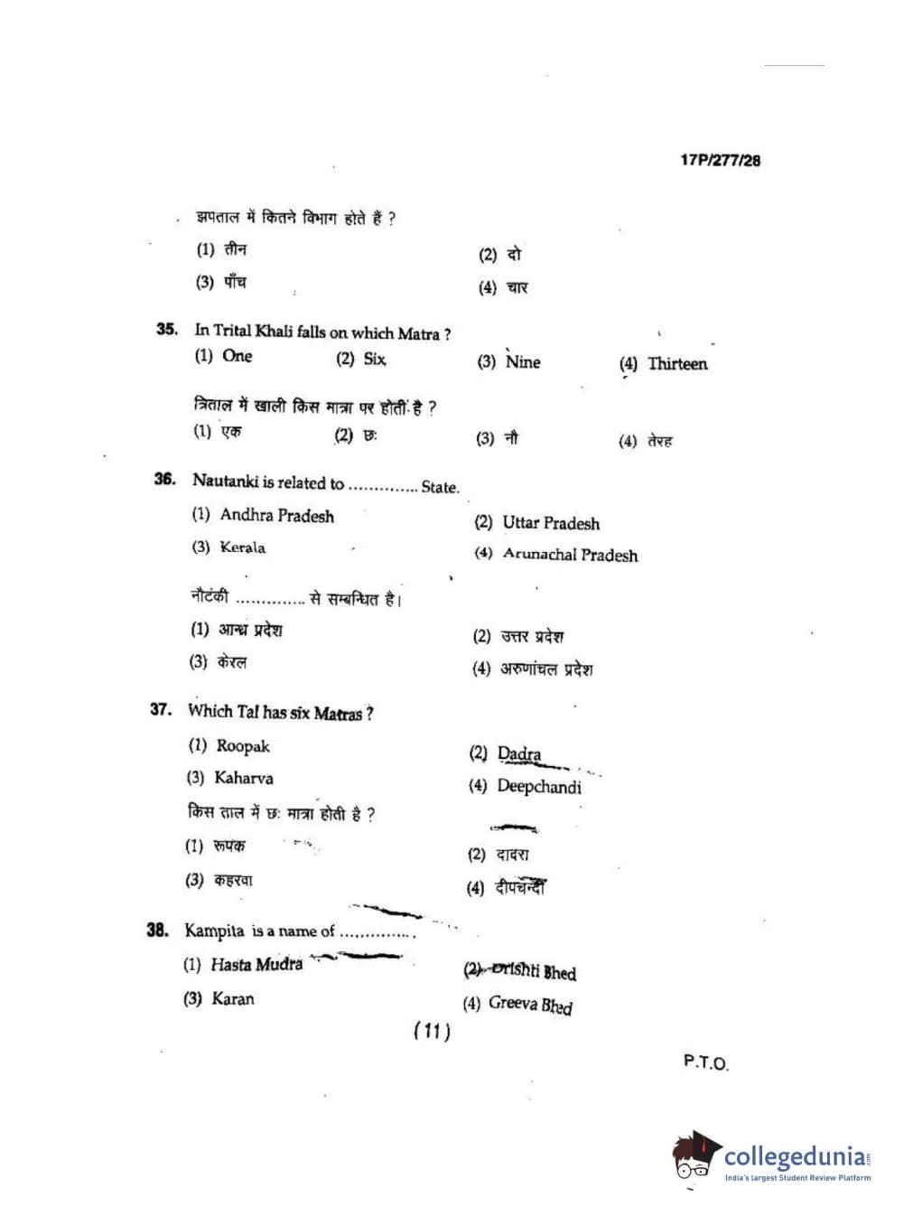 BHU PET 2017 M.P.A in Dance kathak Question Paper with Answer Key PDFs