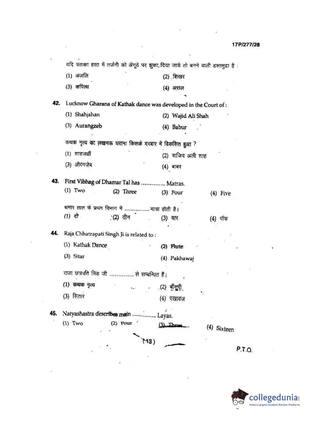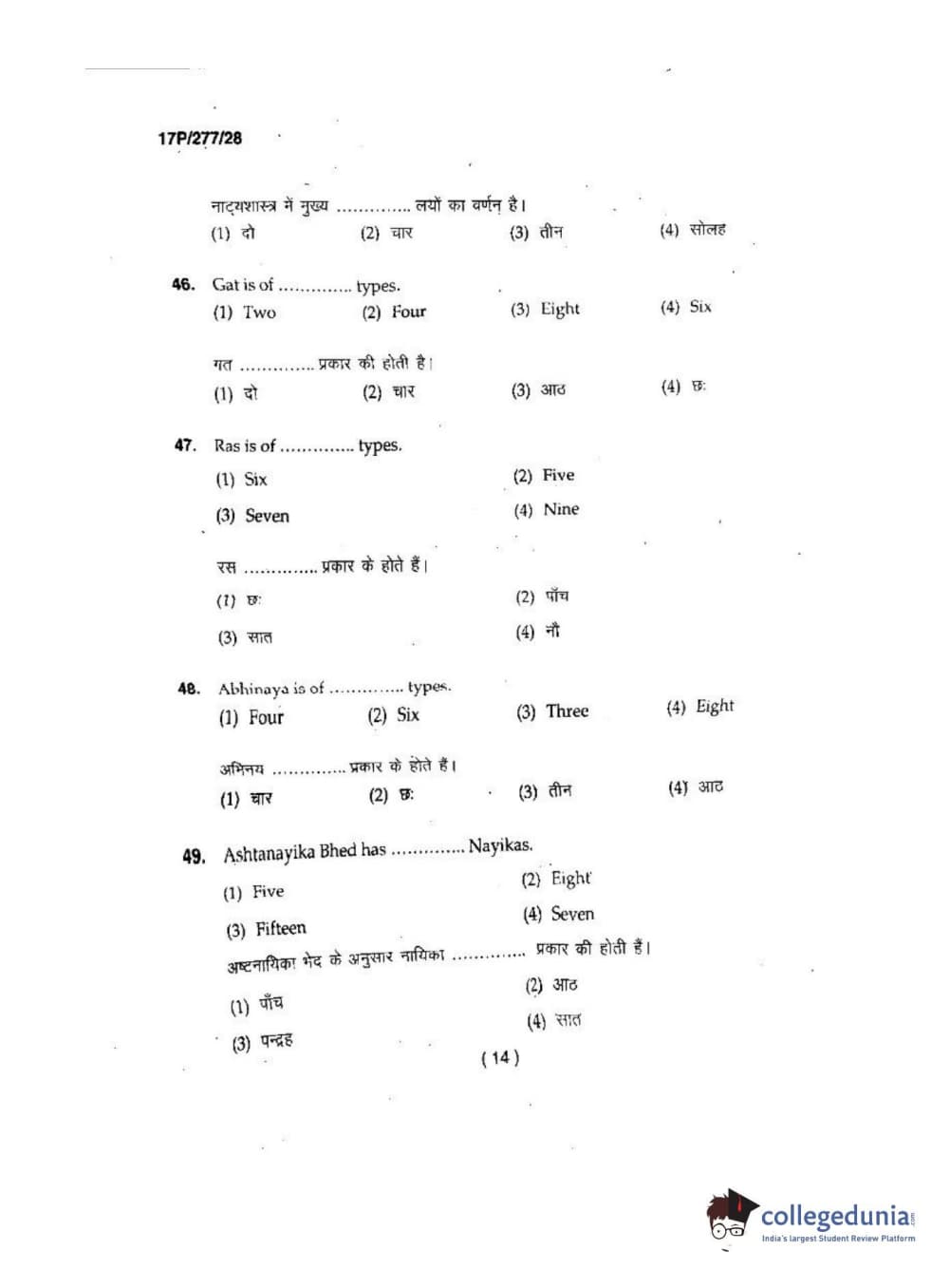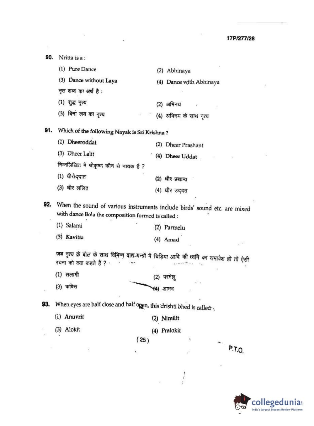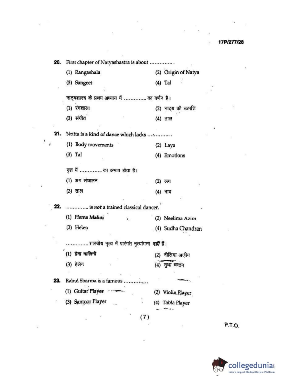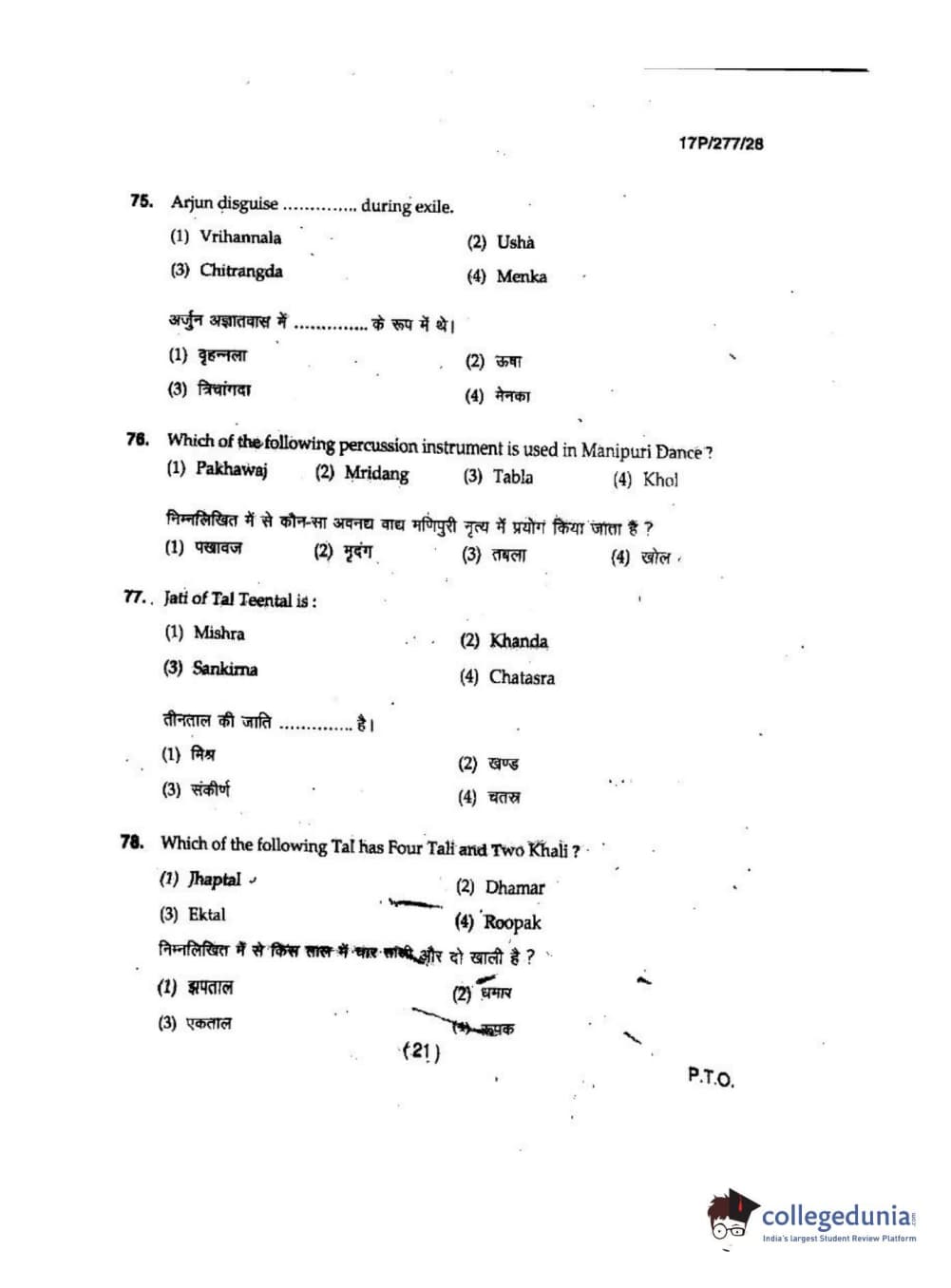 BHU PET 2017 M.P.A in Dance kathak Question Paper with Answer Key PDFs
