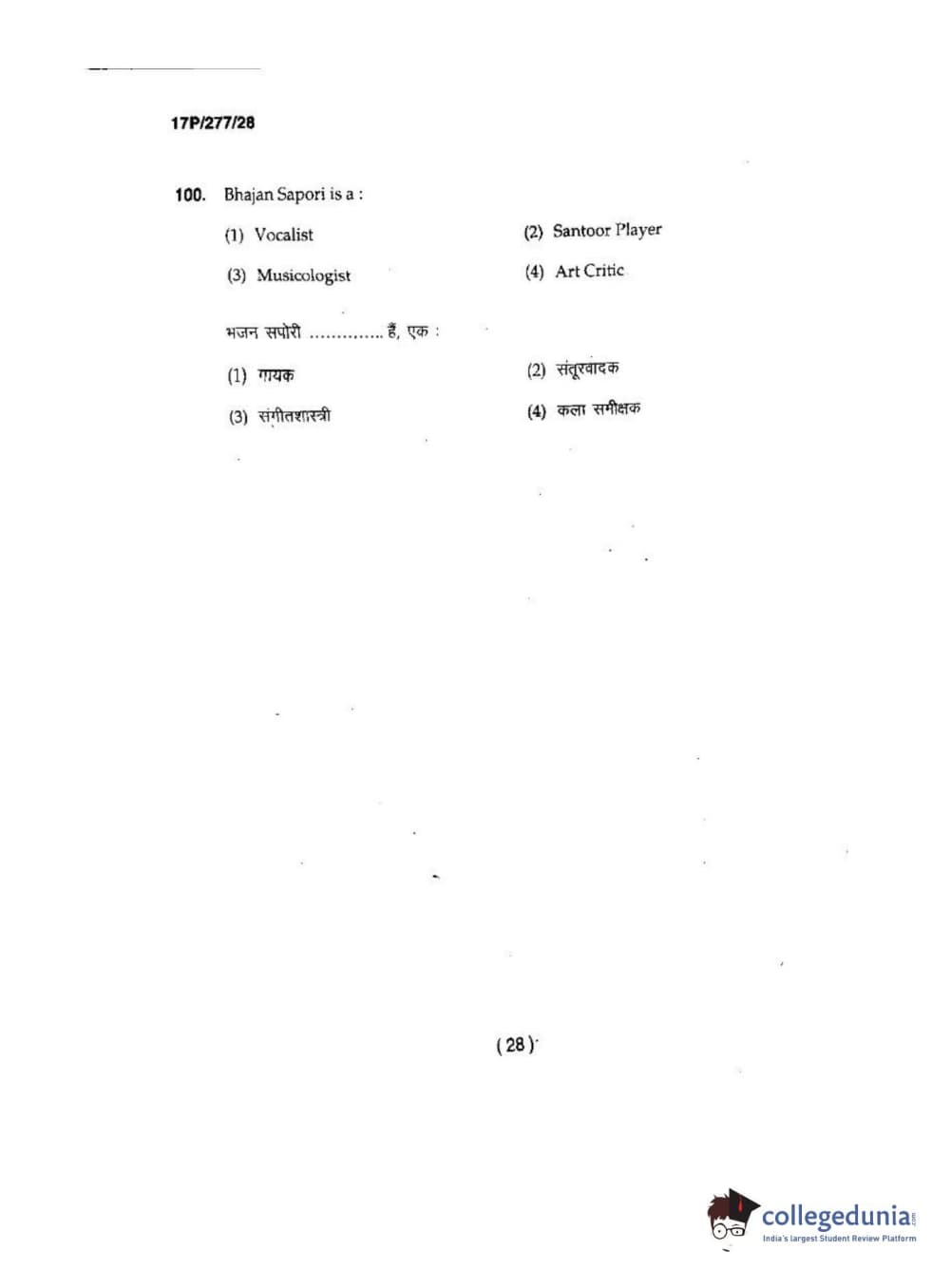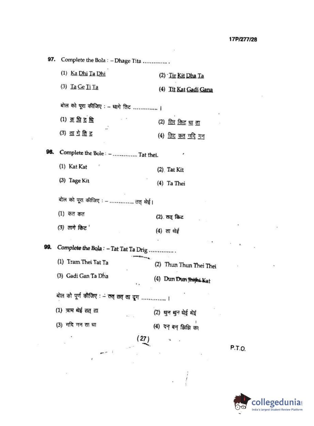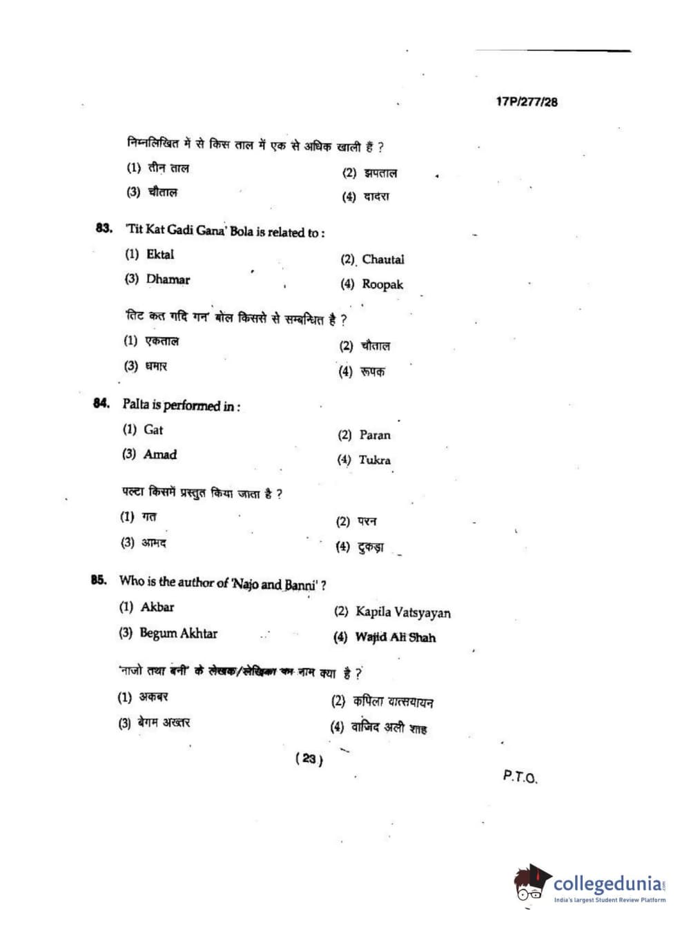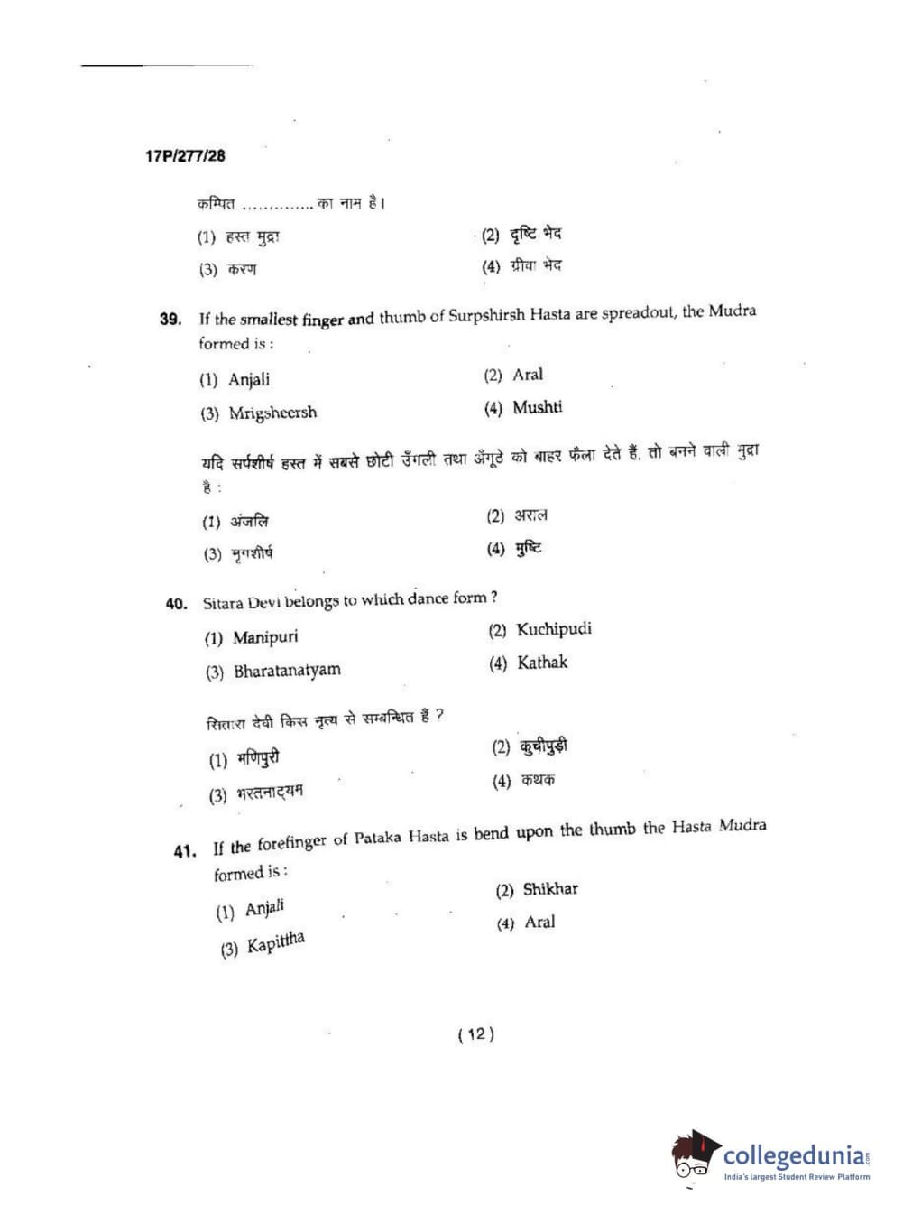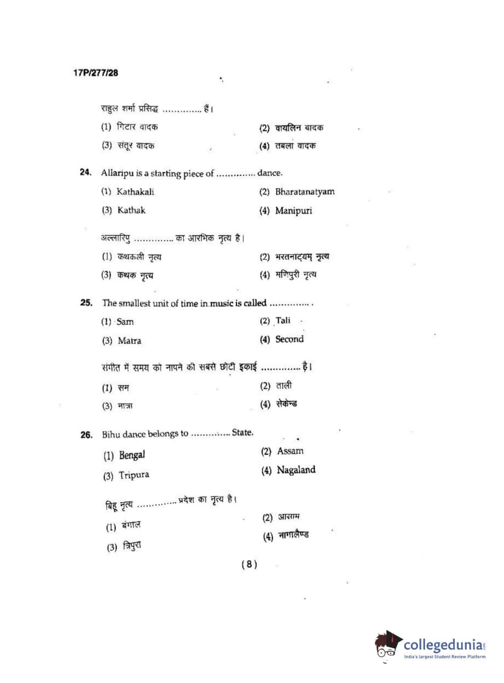 BHU PET 2017 M.P.A in Dance kathak Question Paper with Answer Key PDFs