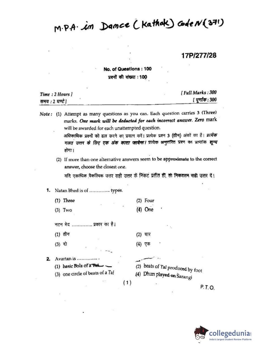 BHU PET 2017 M.P.A in Dance kathak Question paper with answer key pdf is available for download. The exam was successfully organized by Banaras Hindu University (BHU). The question paper comprised a total of 100 questions.