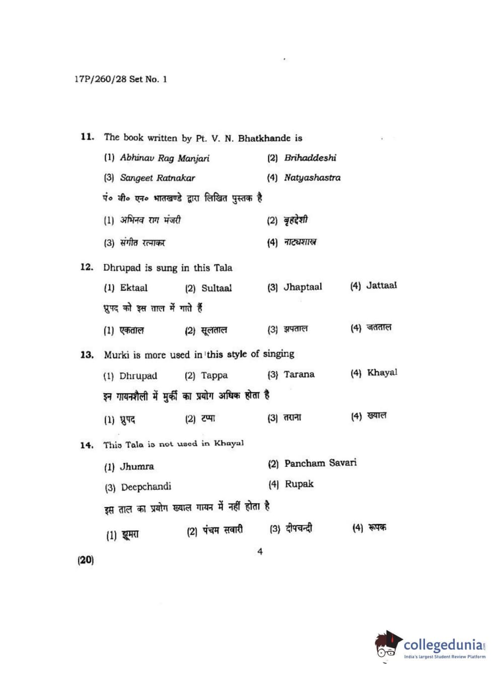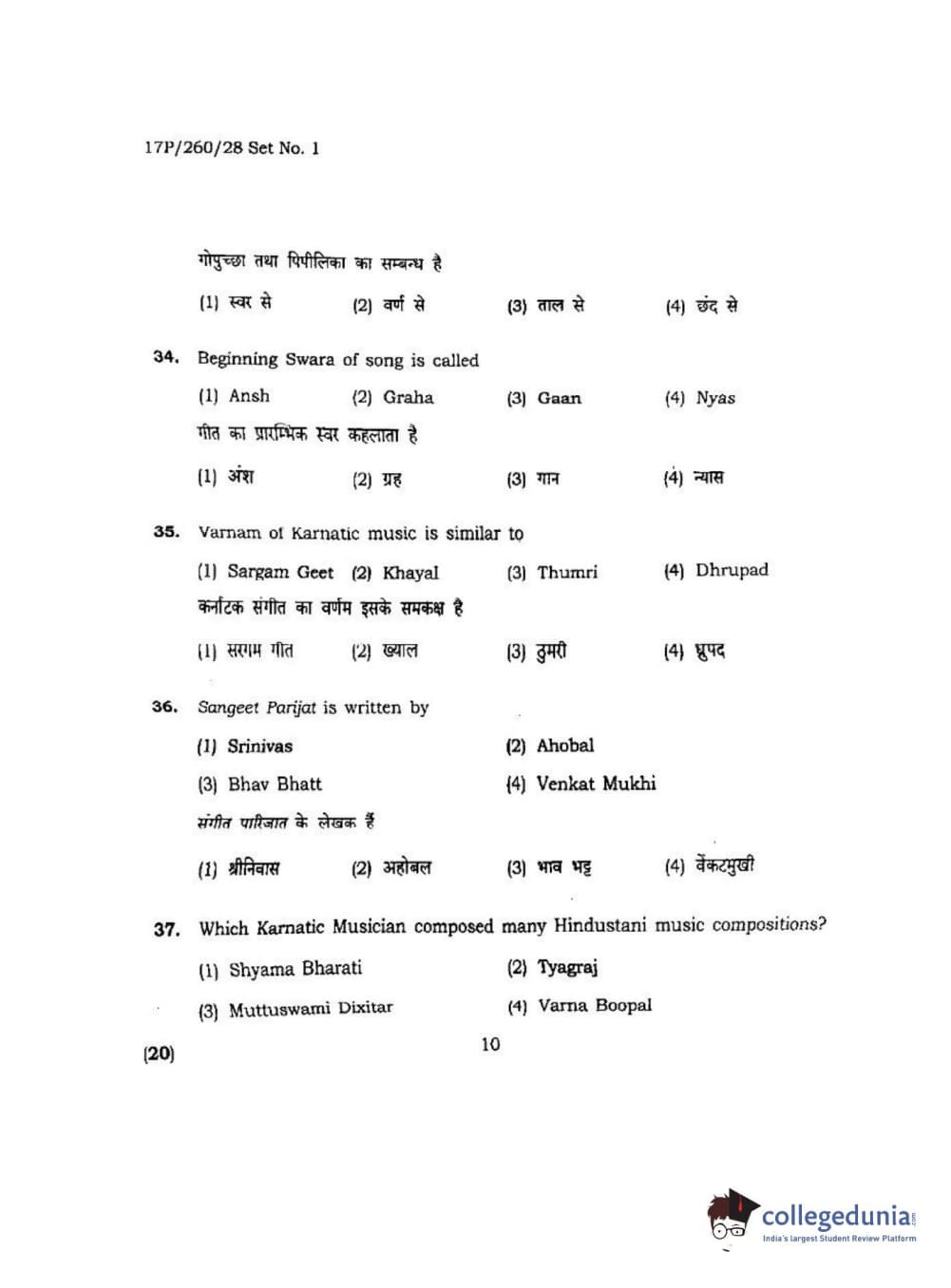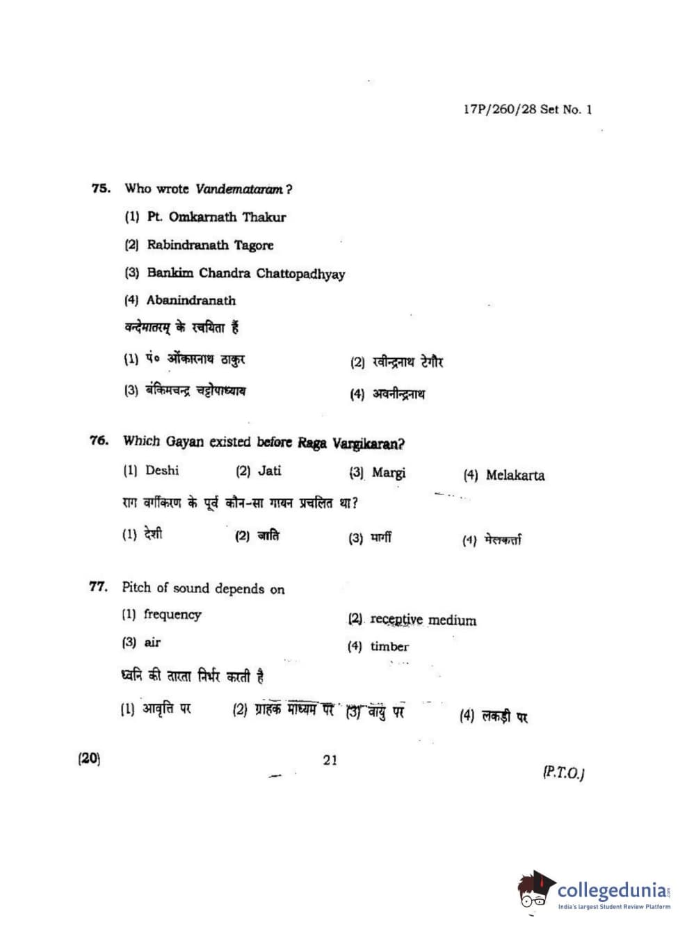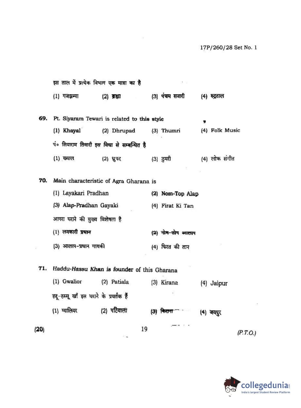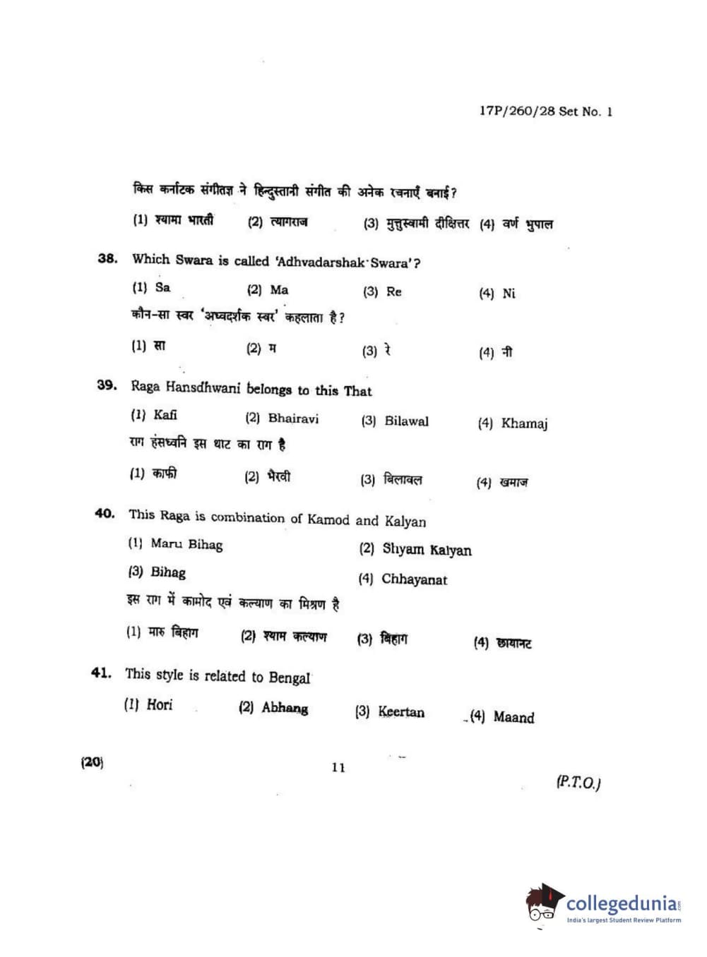 BHU PET 2017 M.P.A in Vocal Question paper with answer key pdf is available for download. The exam was successfully organized by Banaras Hindu University (BHU). The question paper comprised a total of 100 questions.