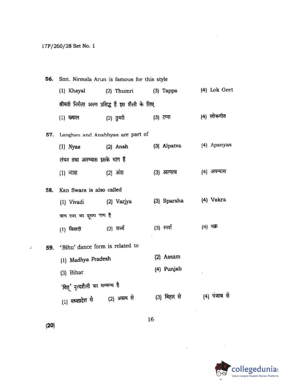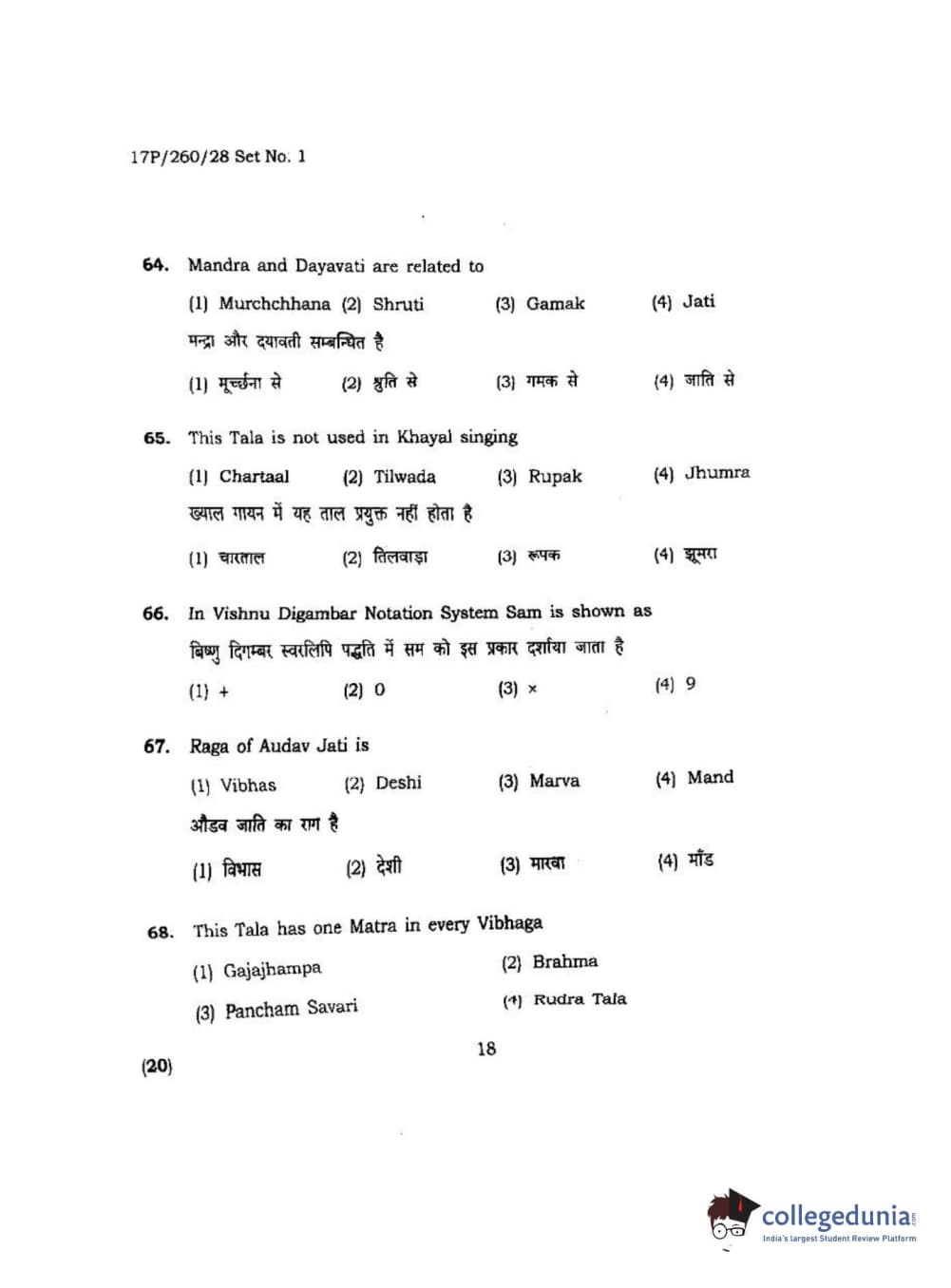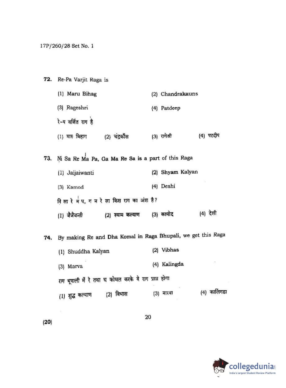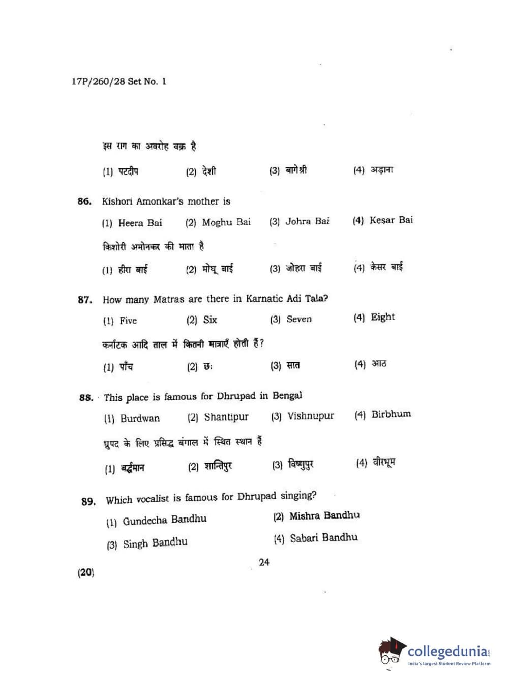 BHU PET 2017 M.P.A in Vocal Question paper with answer key pdf is available for download. The exam was successfully organized by Banaras Hindu University (BHU). The question paper comprised a total of 100 questions.
