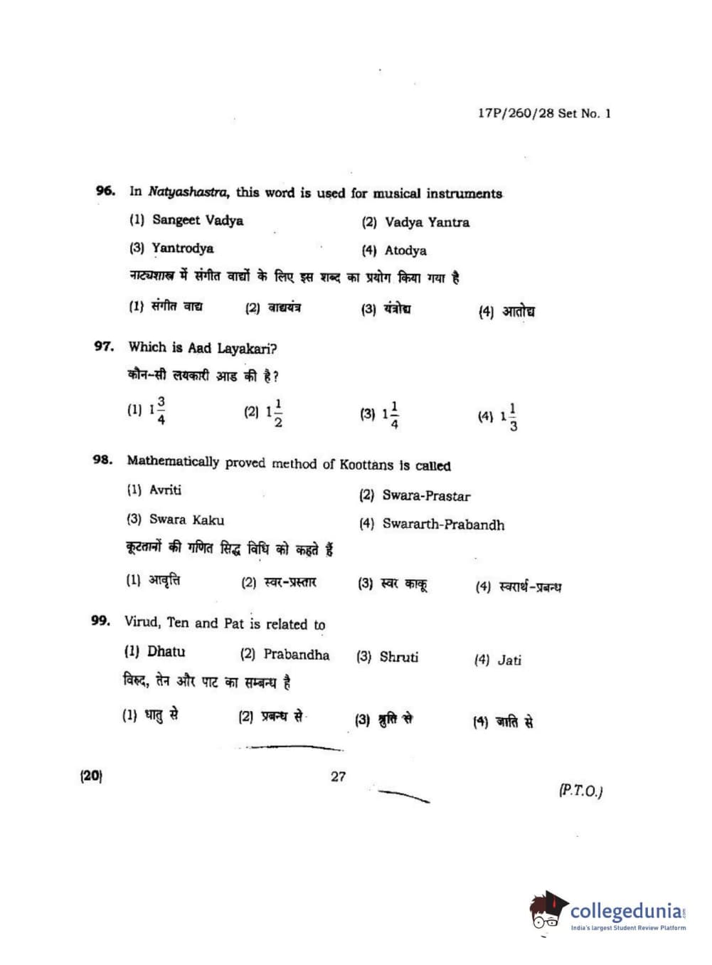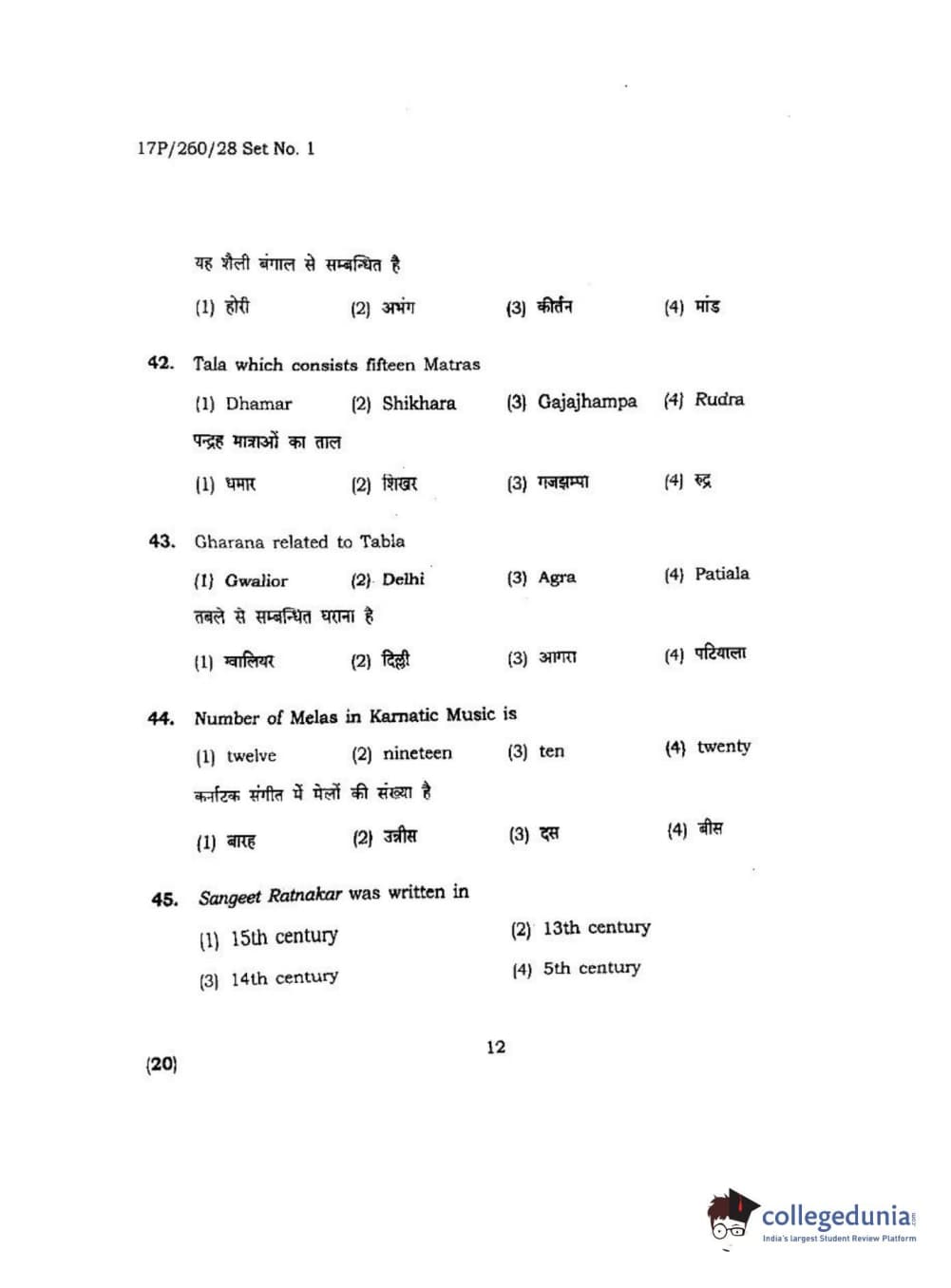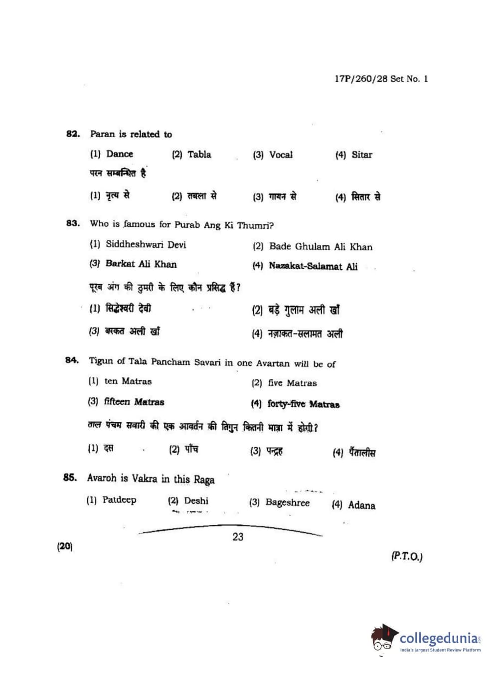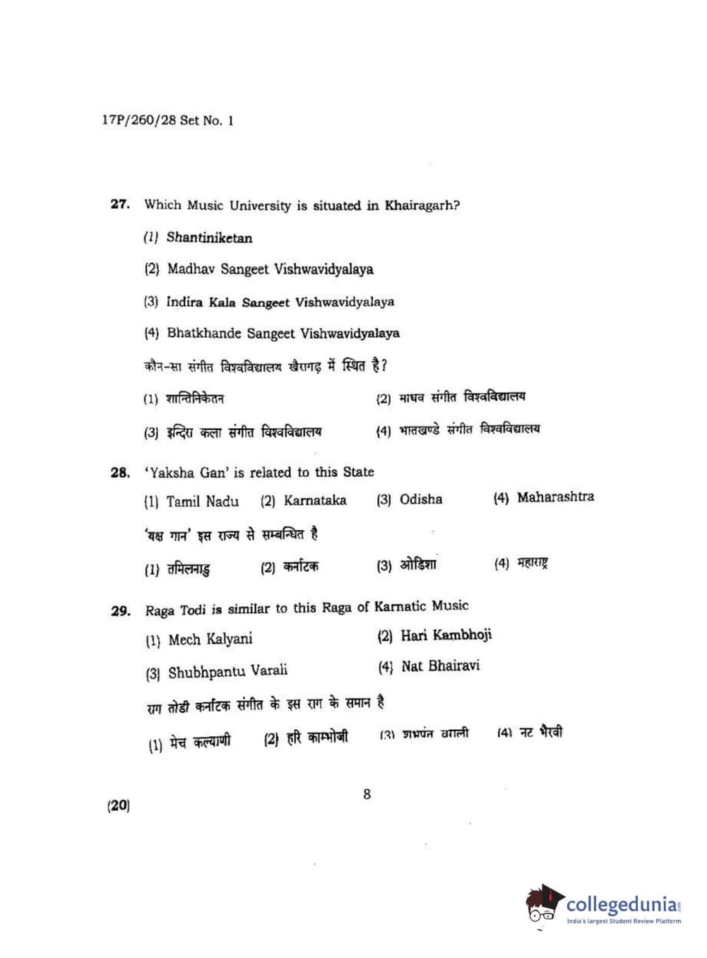 BHU PET 2017 M.P.A in Vocal Question paper with answer key pdf is available for download. The exam was successfully organized by Banaras Hindu University (BHU). The question paper comprised a total of 100 questions.