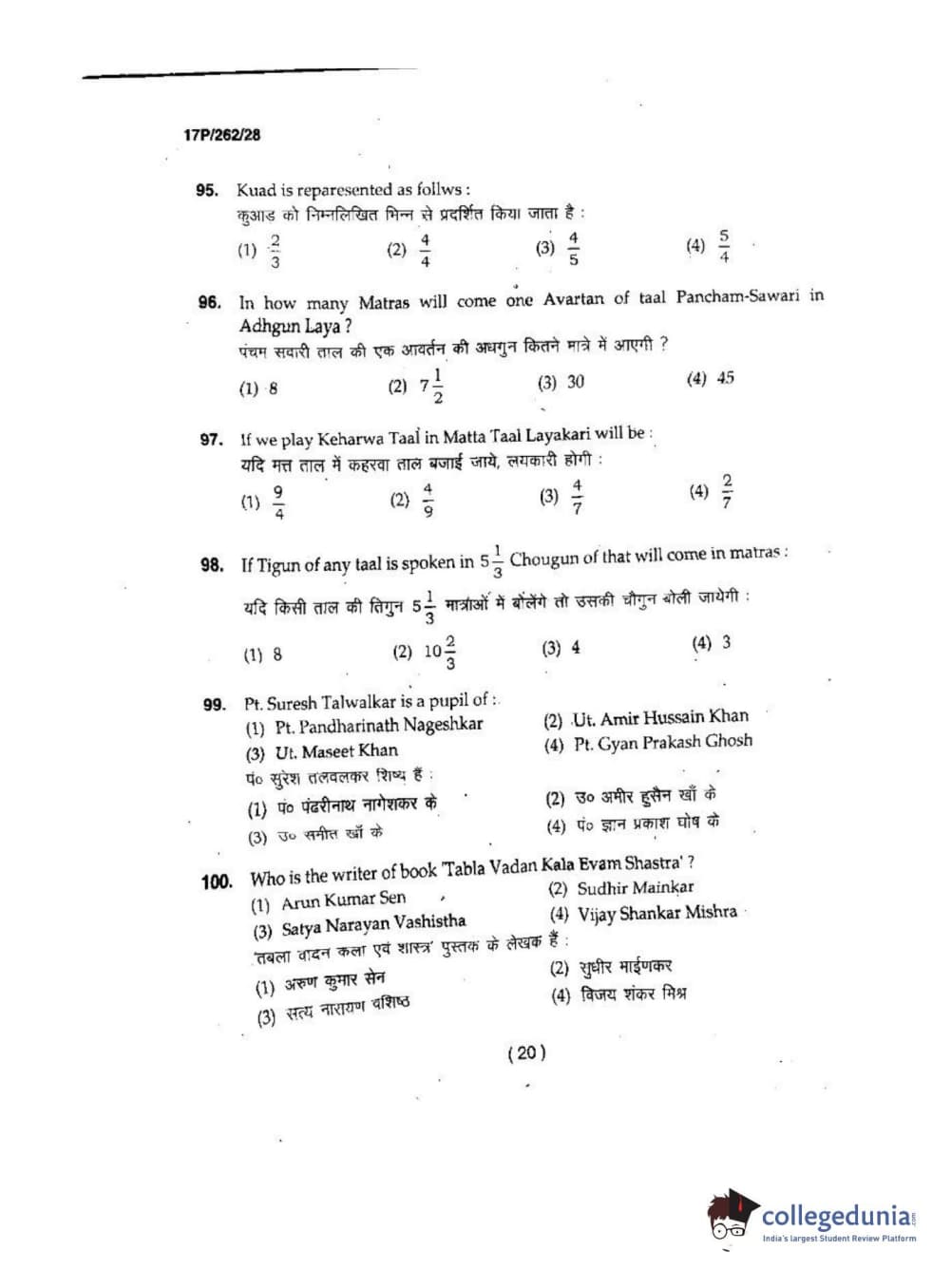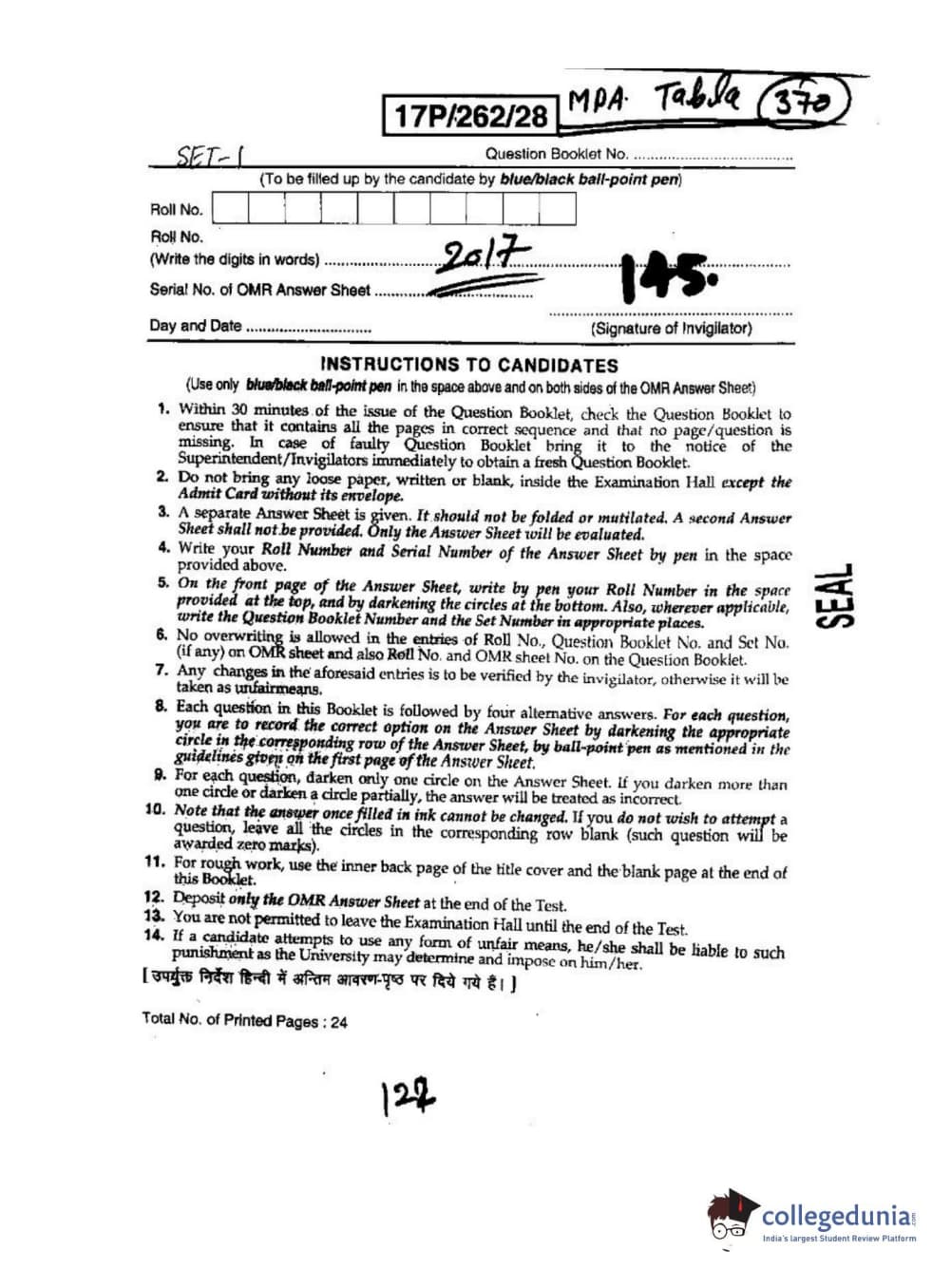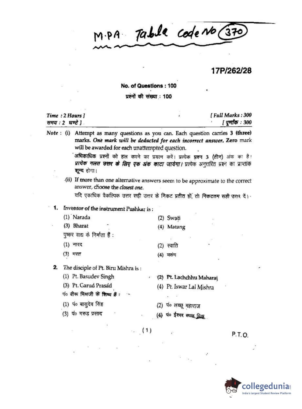 | BHU PET 2017 M.P.A. Tabla Question Paper PDF | BHU PET 2017 M.P.A. Tabla Answer Key PDF |