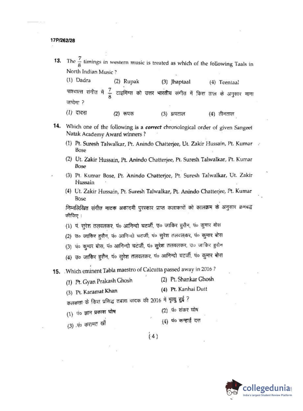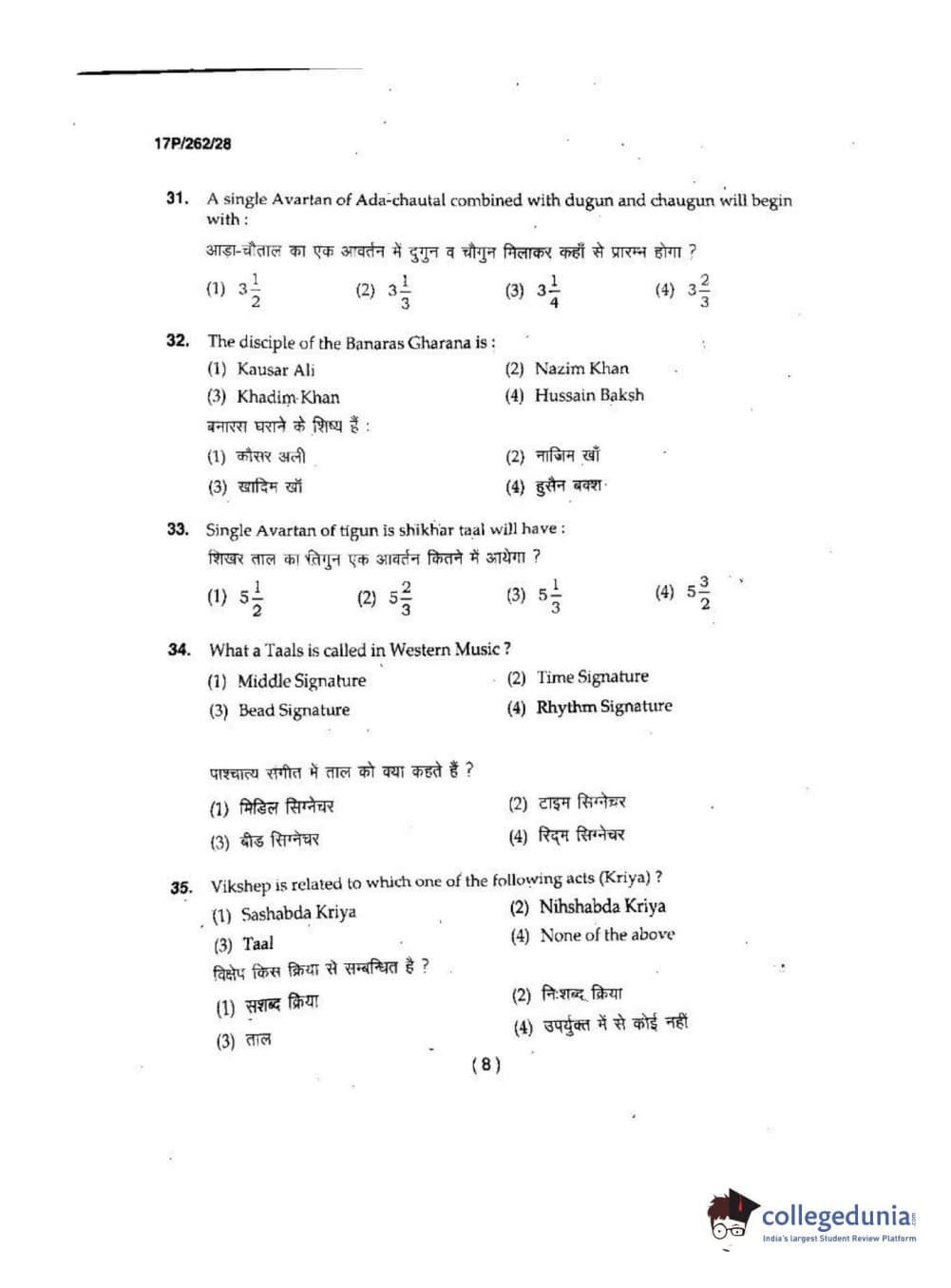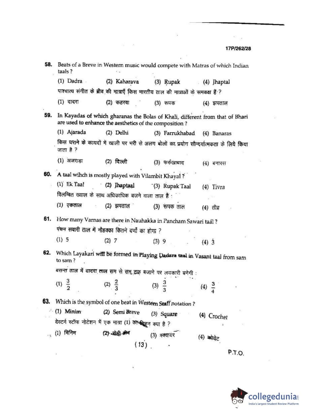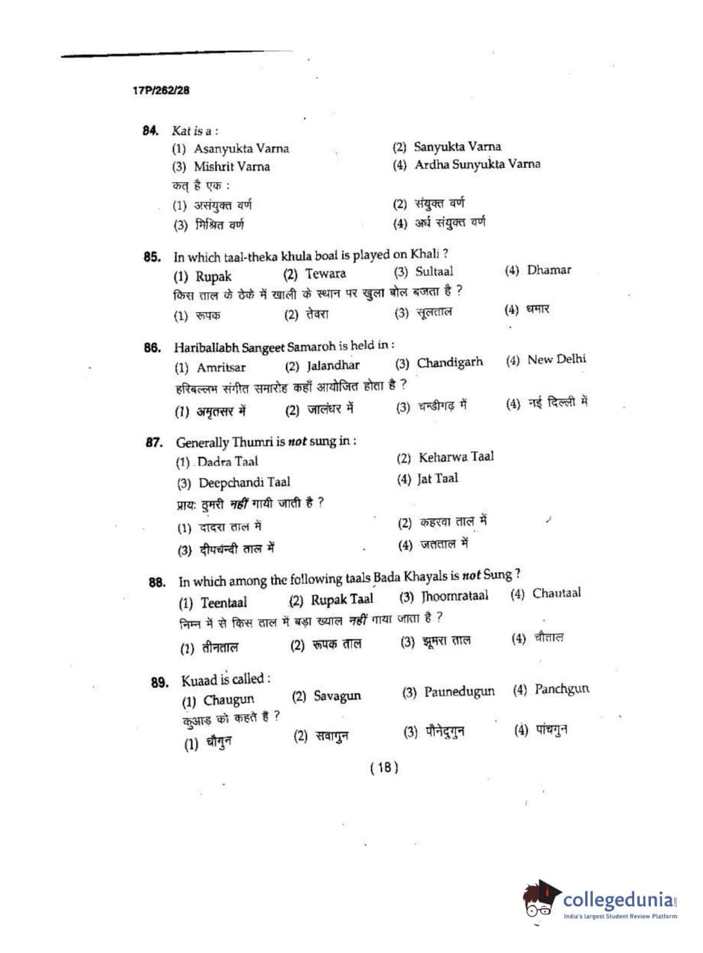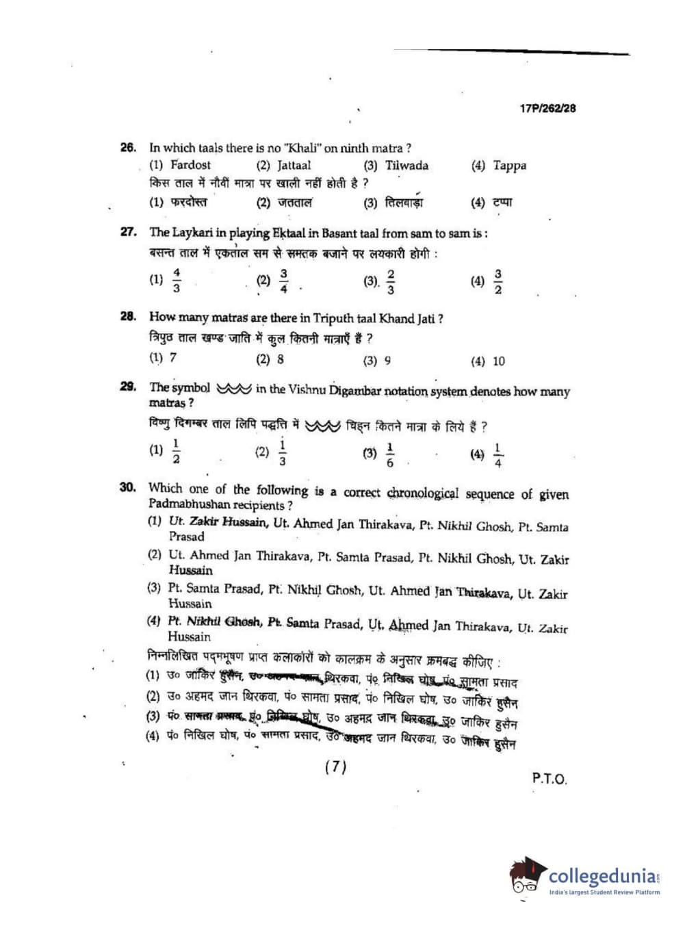 BHU PET 2017 M.P.A. Tabla Question Paper with Answer Key PDFs