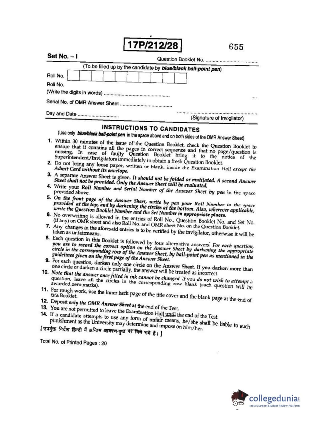 BHU PET 2017 M.Sc Bioinformatics Question paper with answer key pdf is available for download. The exam was successfully organized by Banaras Hindu University (BHU). The question paper comprised a total of 120 questions.