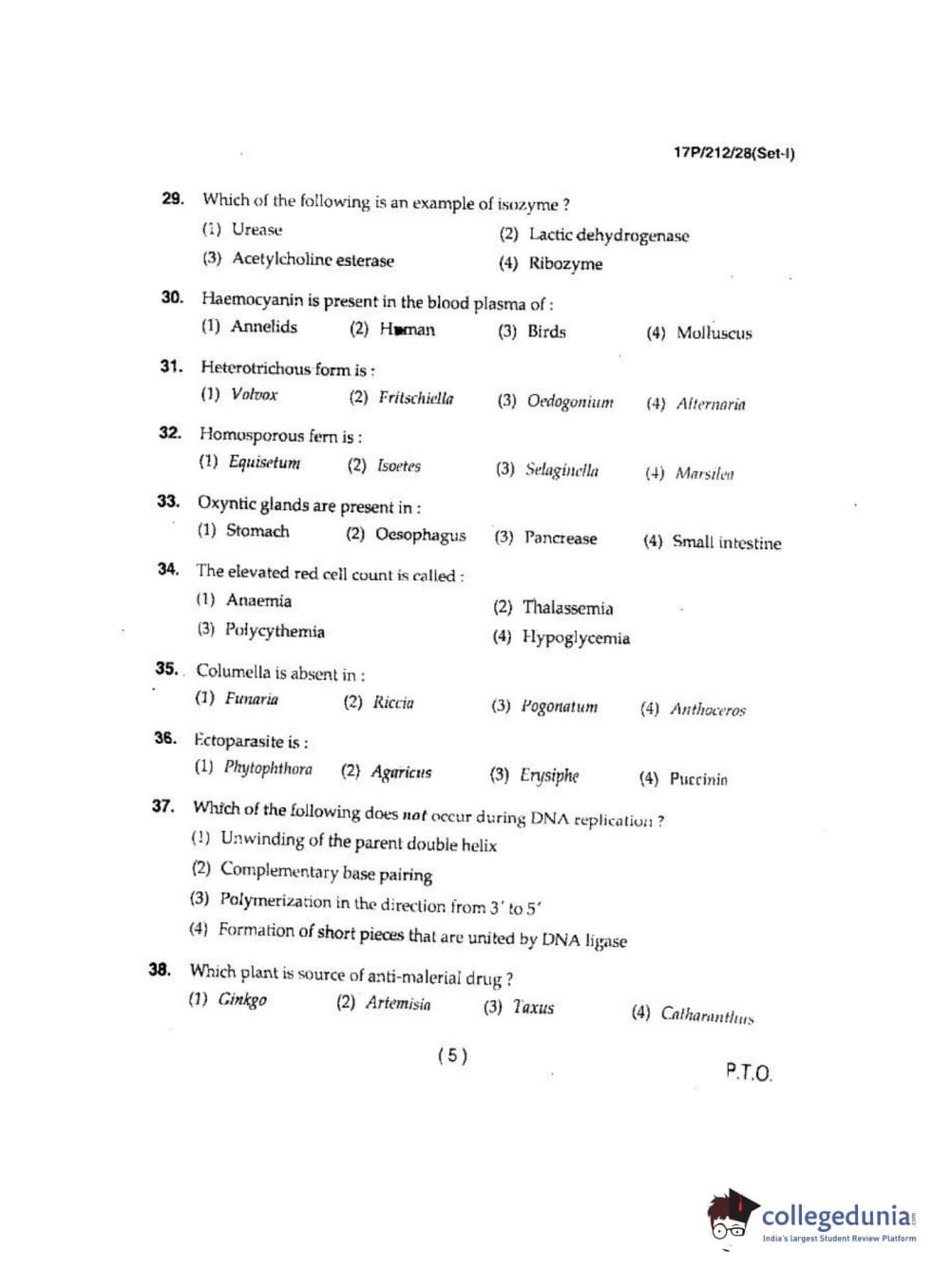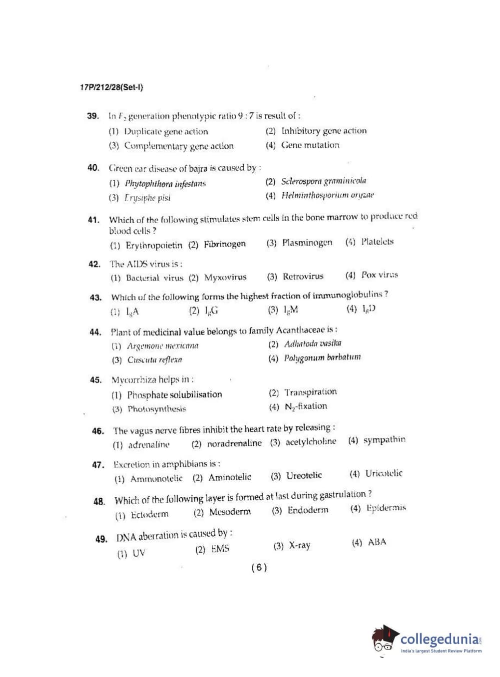 BHU PET 2017 M.Sc Bioinformatics Question Paper with Answer Key PDFs