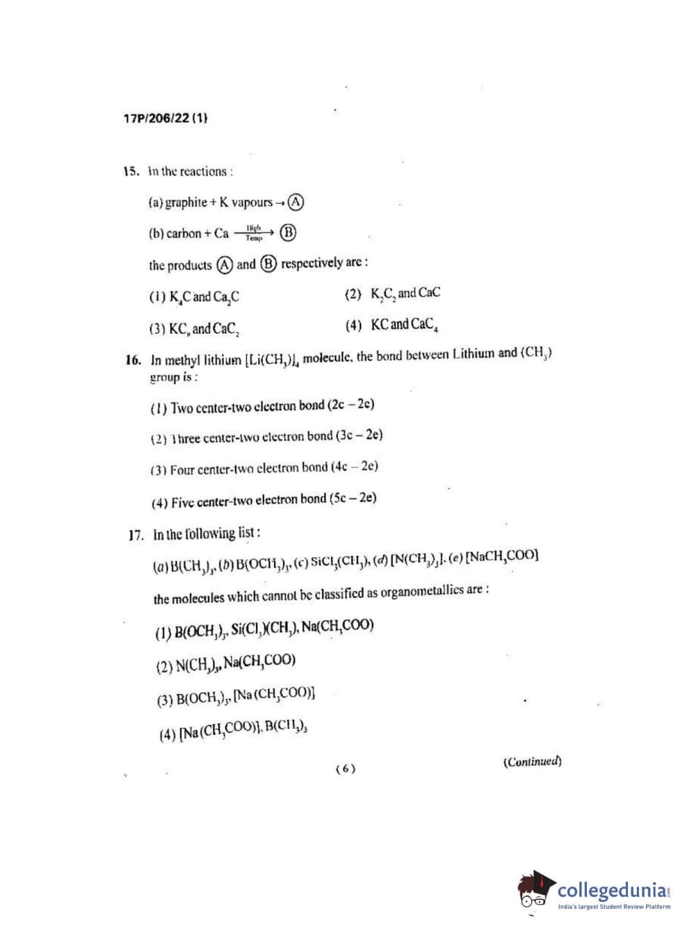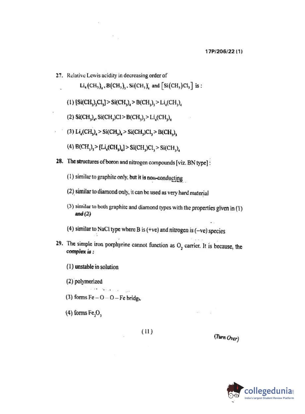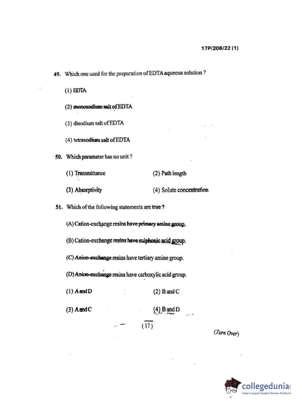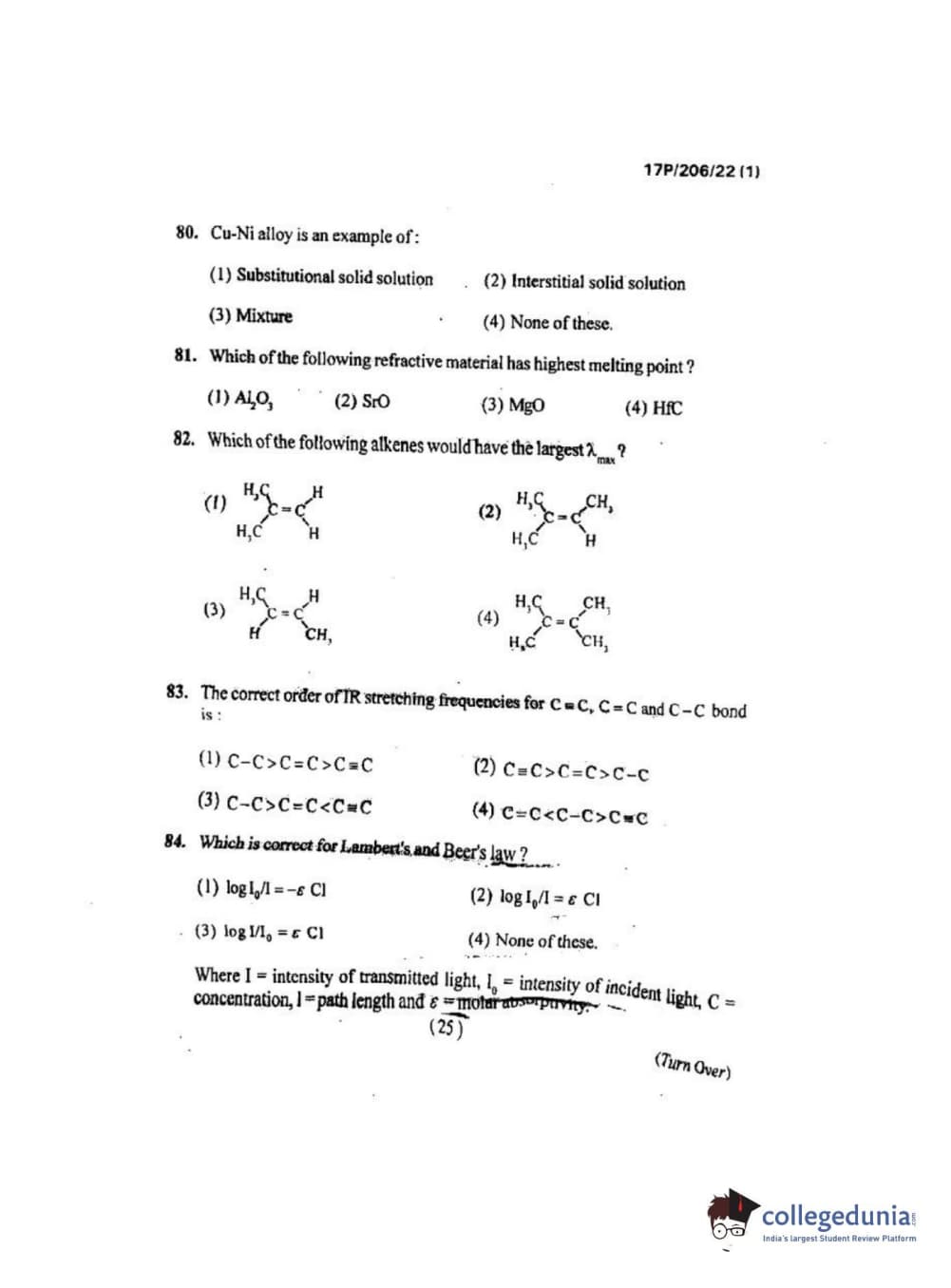 BHU PET 2017 M.Sc Chemistry Question Paper with Answer Key PDFs