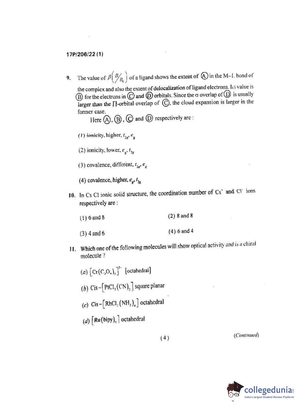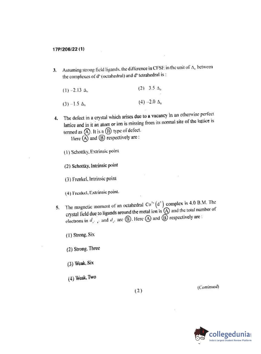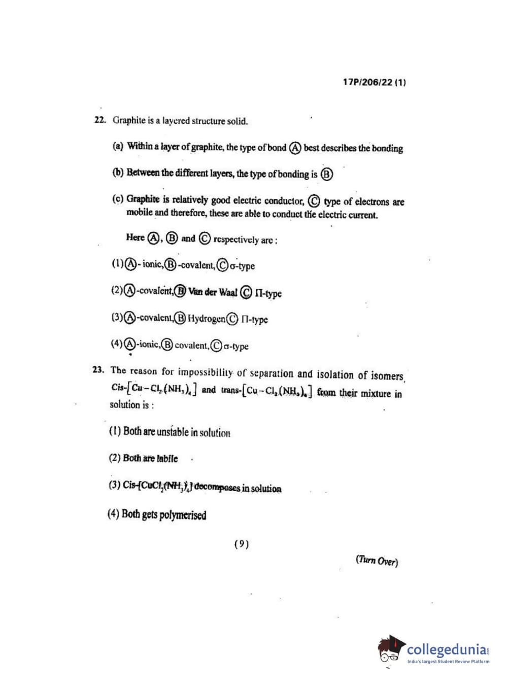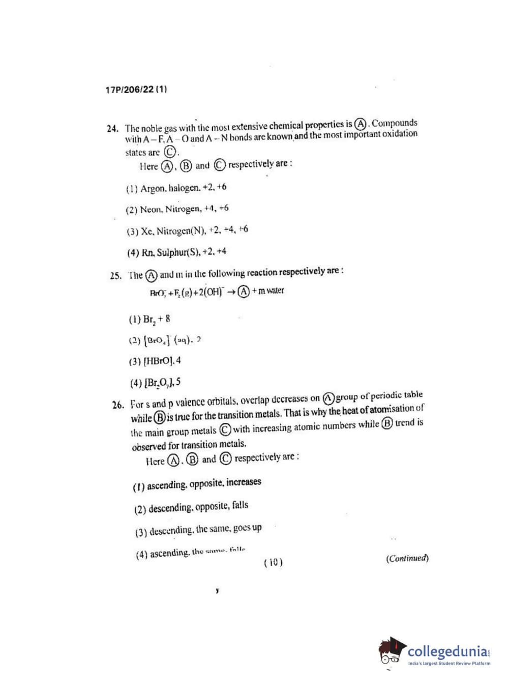 BHU PET 2017 M.Sc Chemistry Question Paper with Answer Key PDFs