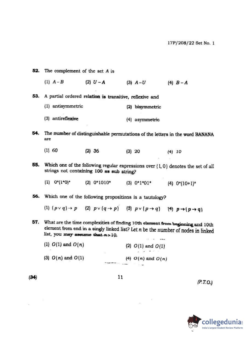 BHU PET 2017 M.Sc Computer Science Question paper with answer key pdf is available for download. The exam was successfully organized by Banaras Hindu University (BHU). The question paper comprised a total of 120 questions.