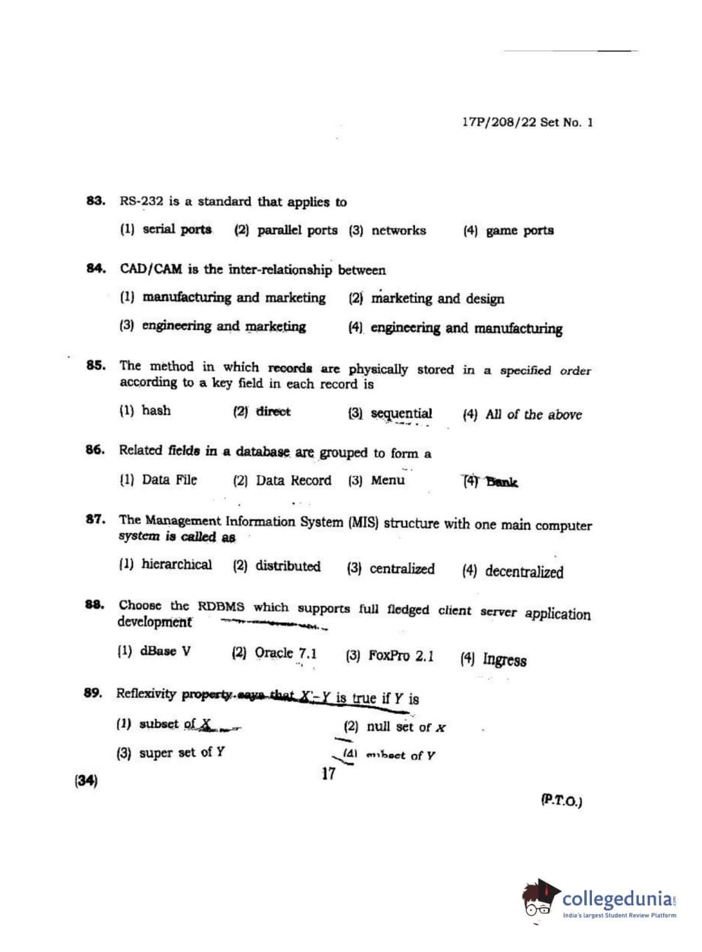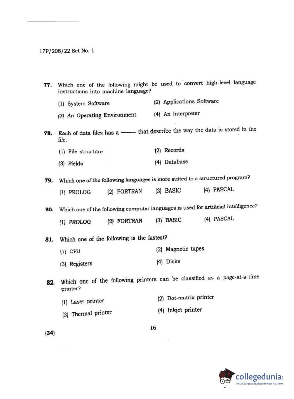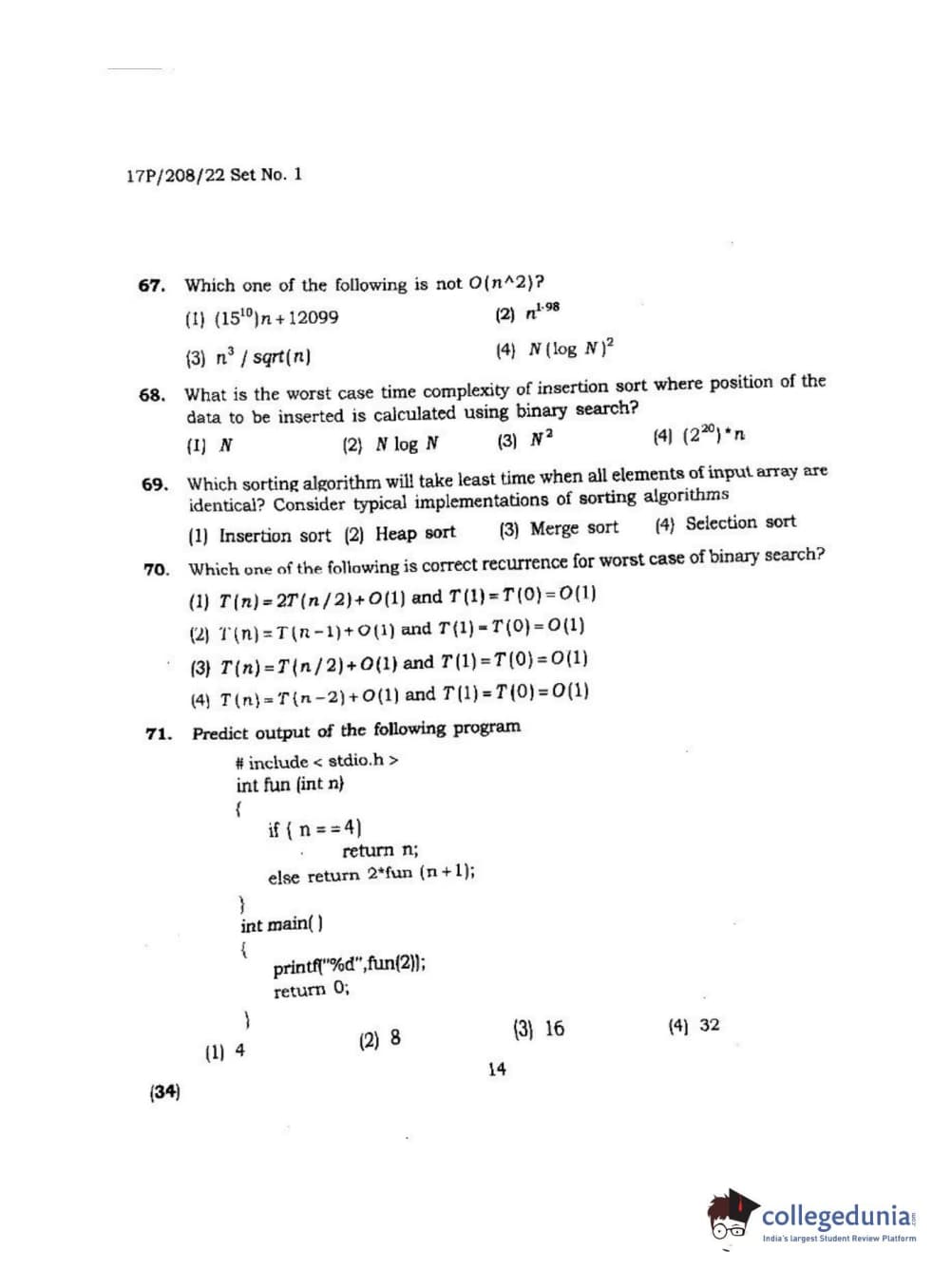 | BHU PET 2017 M.Sc Computer Science Question Paper PDF | BHU PET 2017 M.Sc Computer Science Answer Key PDF |