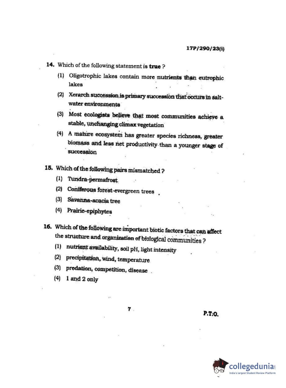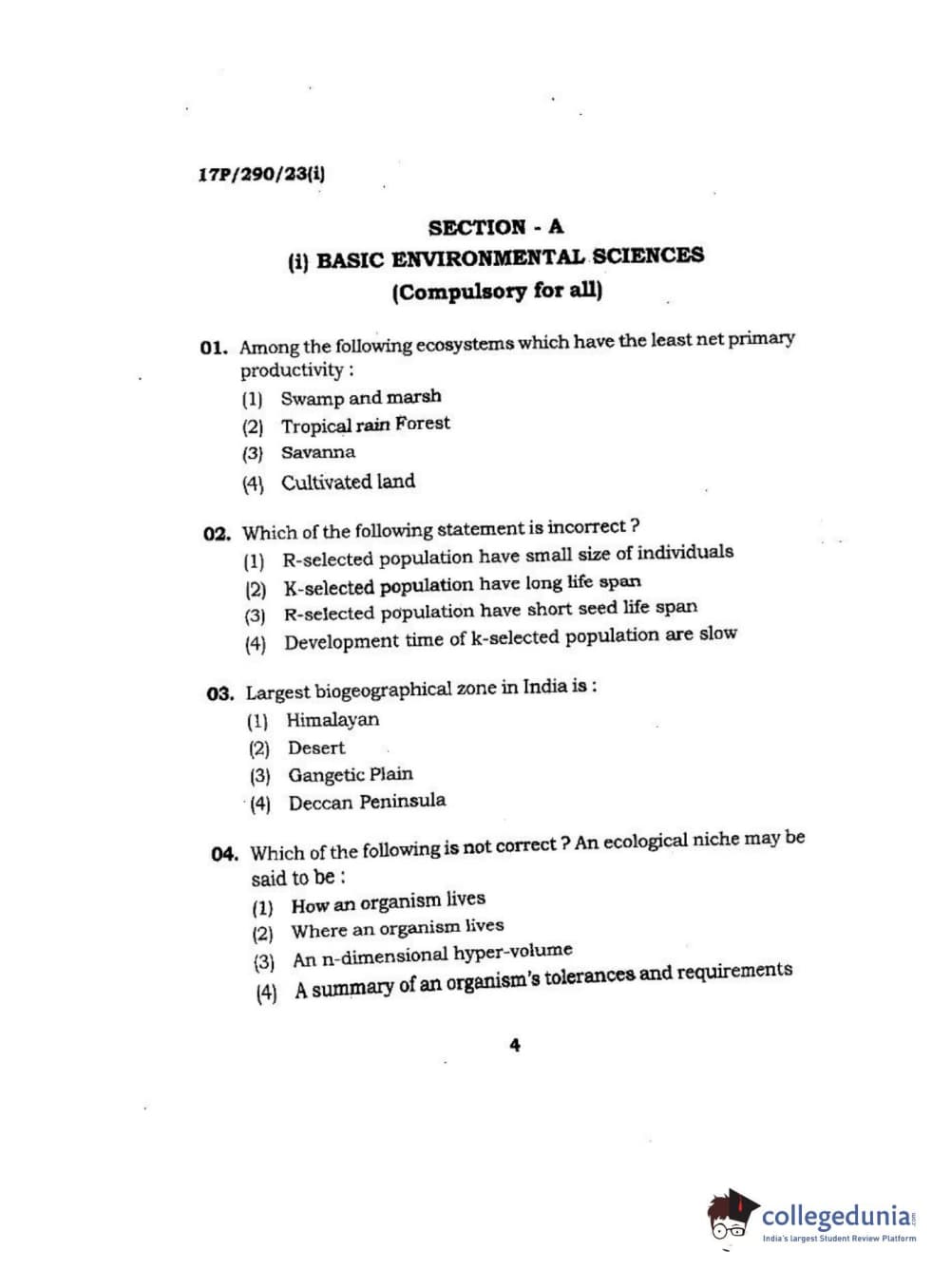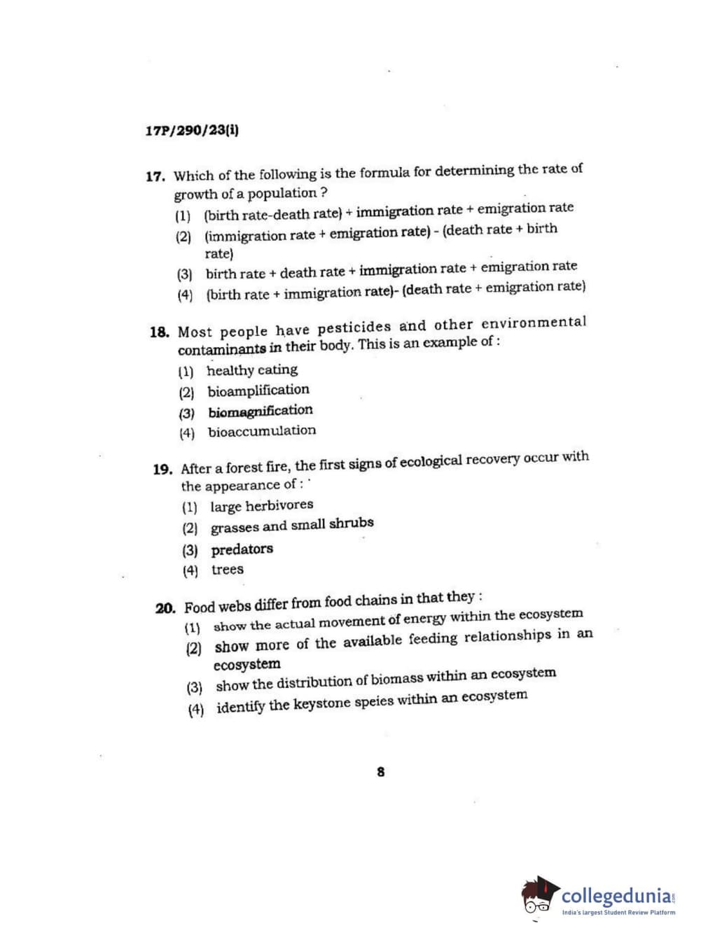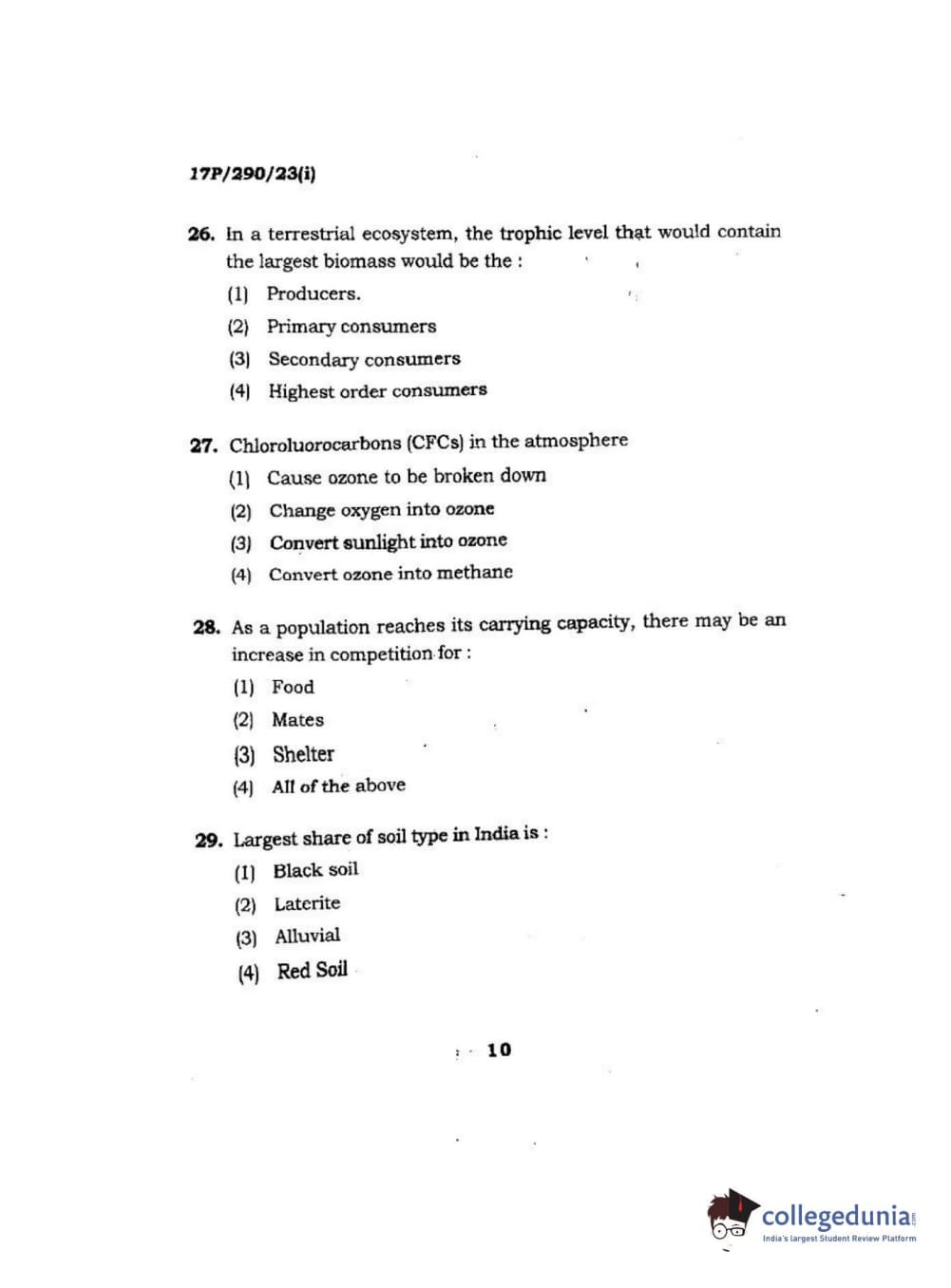 BHU PET 2017 M.Sc Envir science Question Paper with Answer Key PDFs