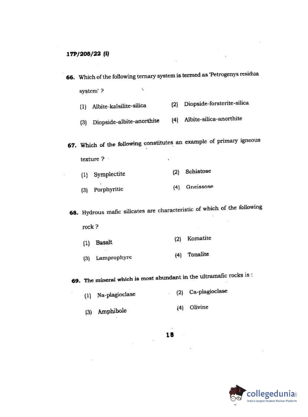 BHU PET 2017 M.Sc Geology Question Paper with Answer Key PDFs