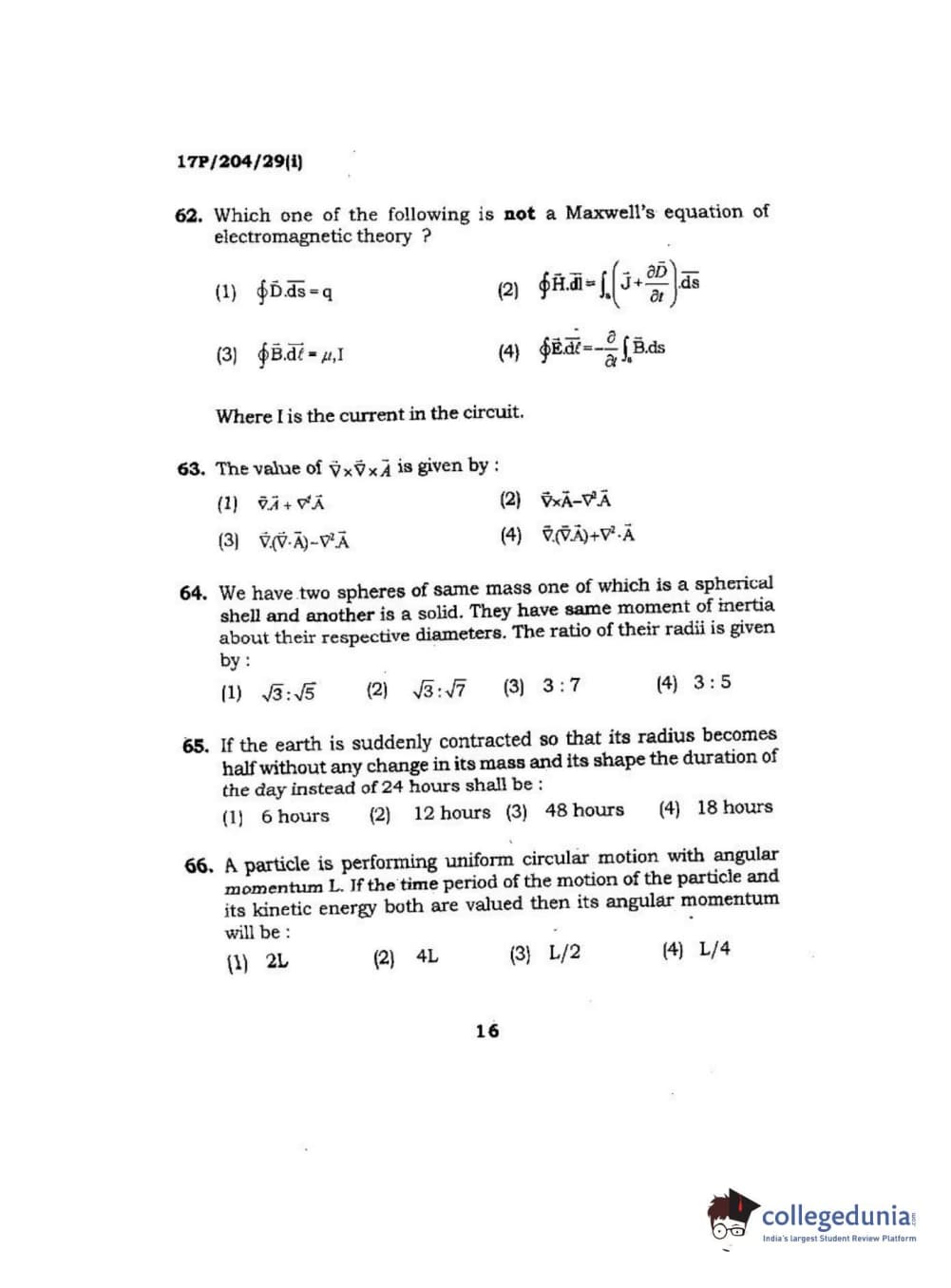 BHU PET 2017 M.Sc Geophysics Question Paper with Answer Key PDFs