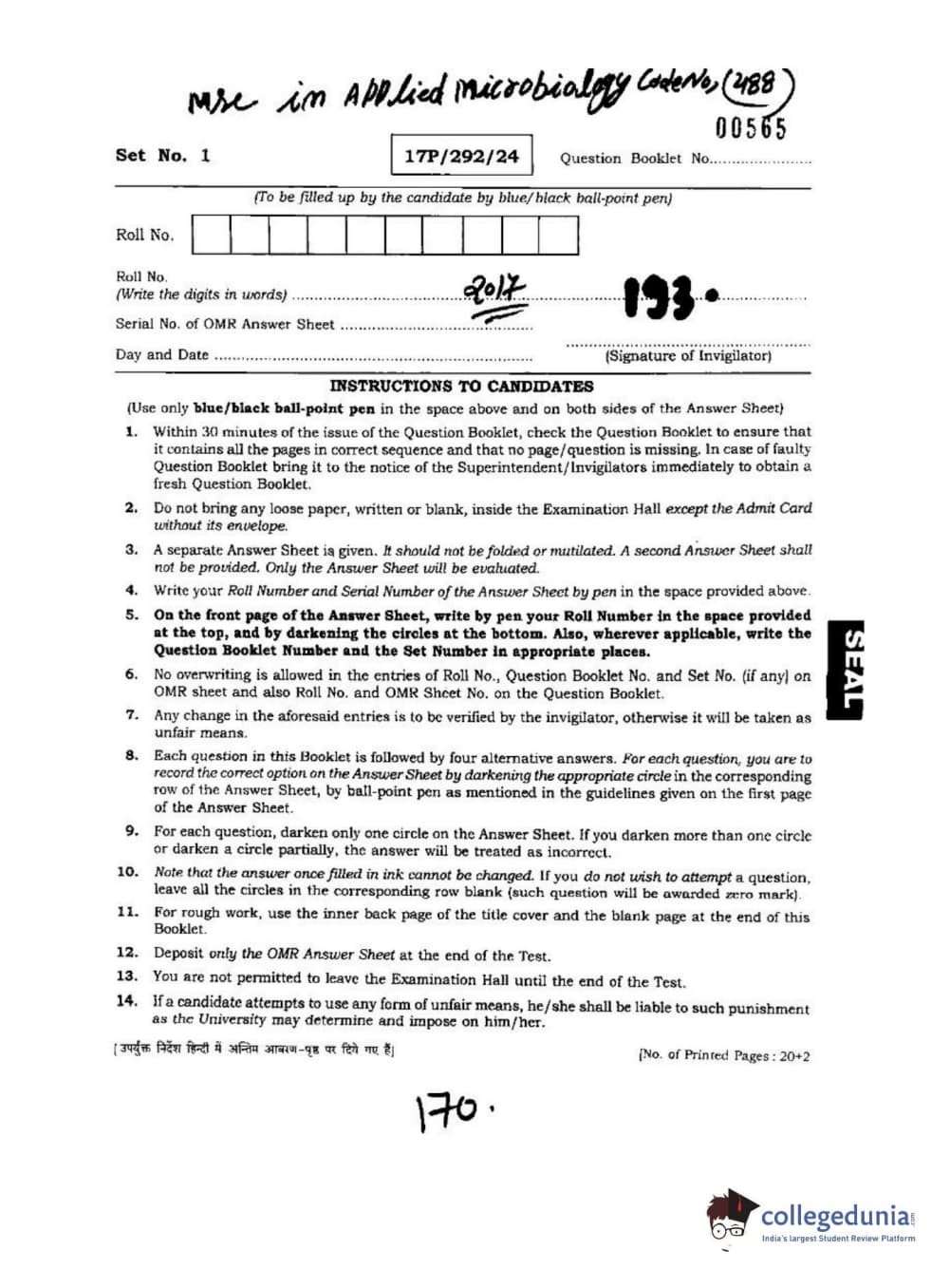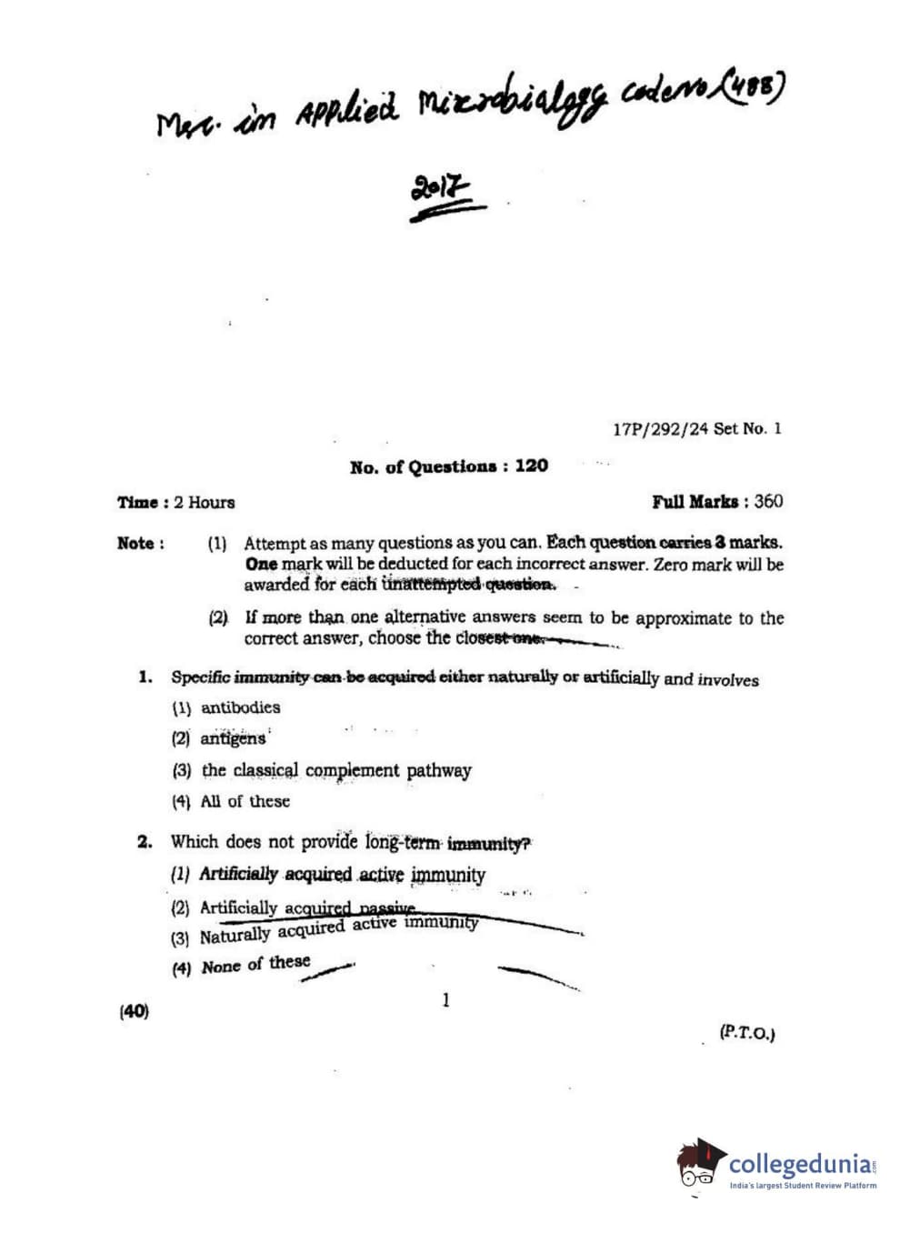 BHU PET 2017 M.Sc. in Applied Microbiology Question paper with answer key pdf is available for download. The exam was successfully organized by Banaras Hindu University (BHU). The question paper comprised a total of 120 questions.